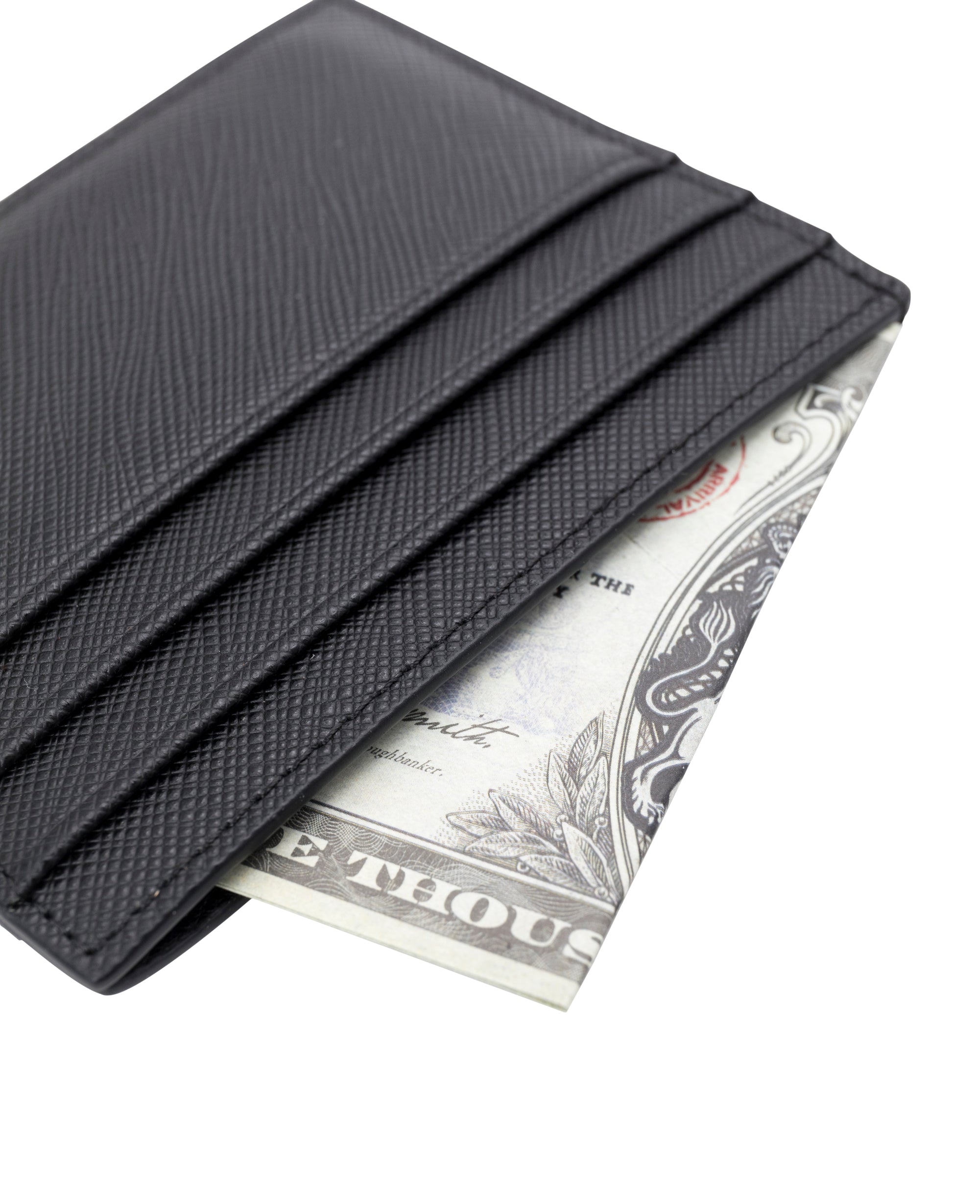 • Three slots on the front and back for credit cards and business cards • There is a small plug-in sleeve inside