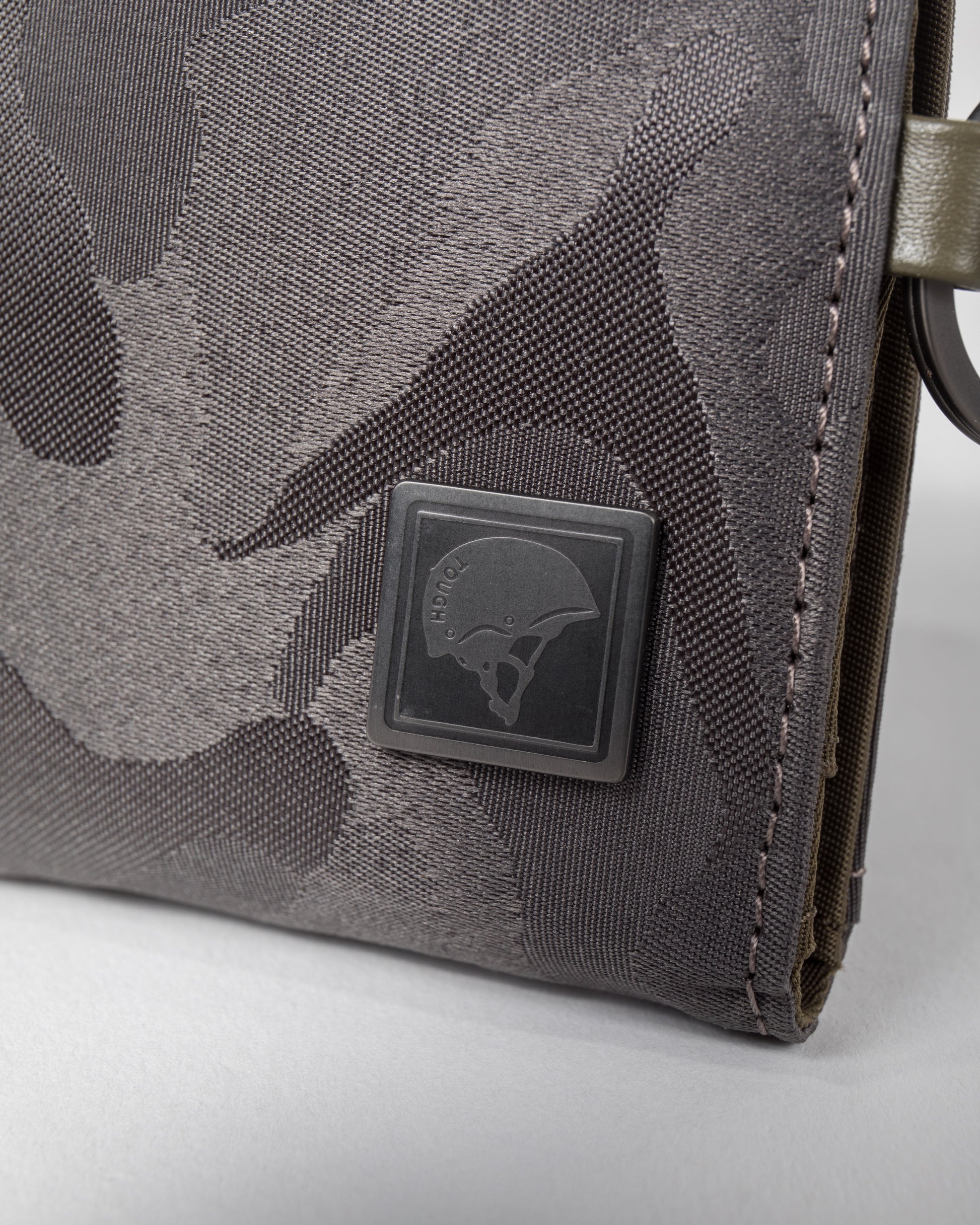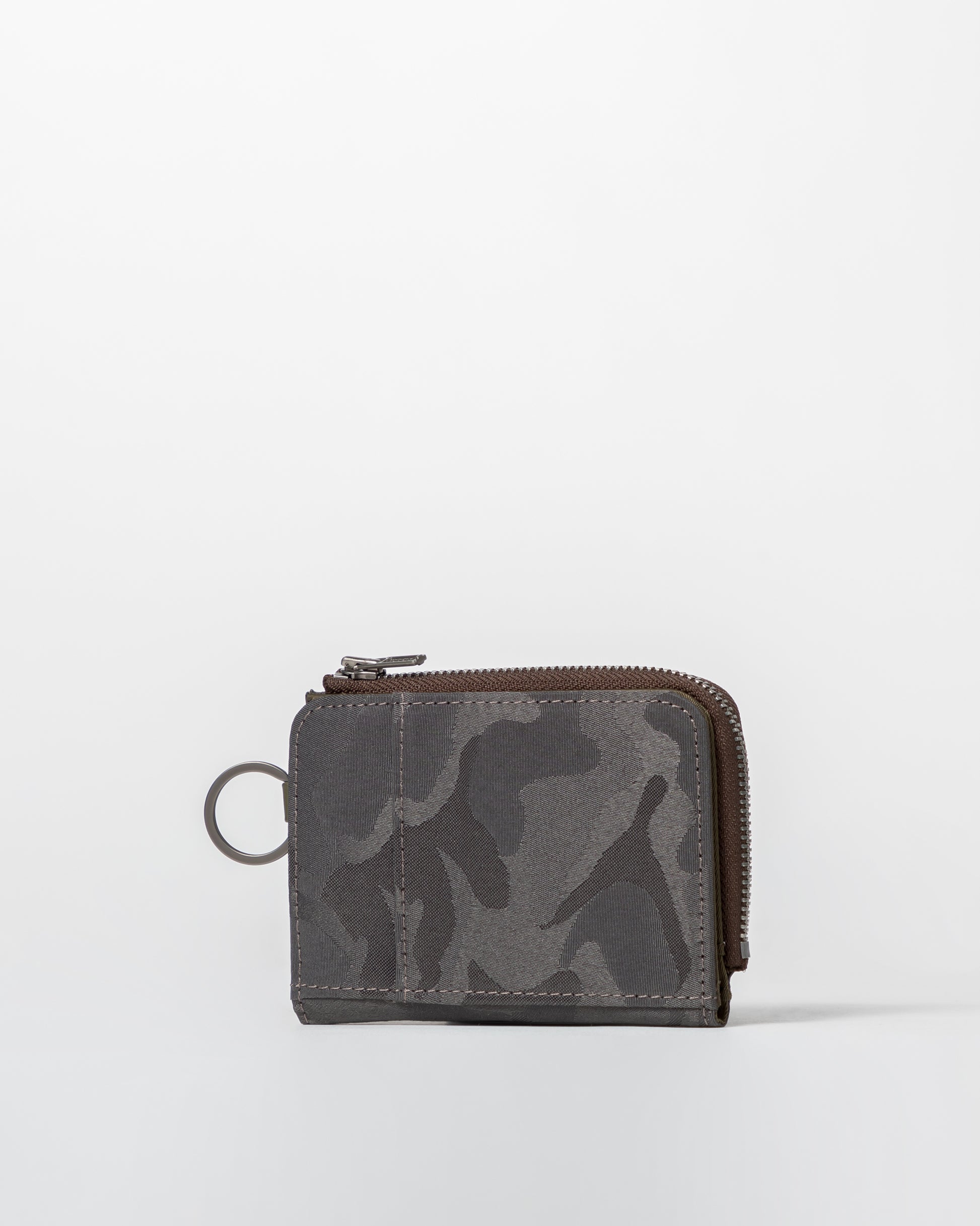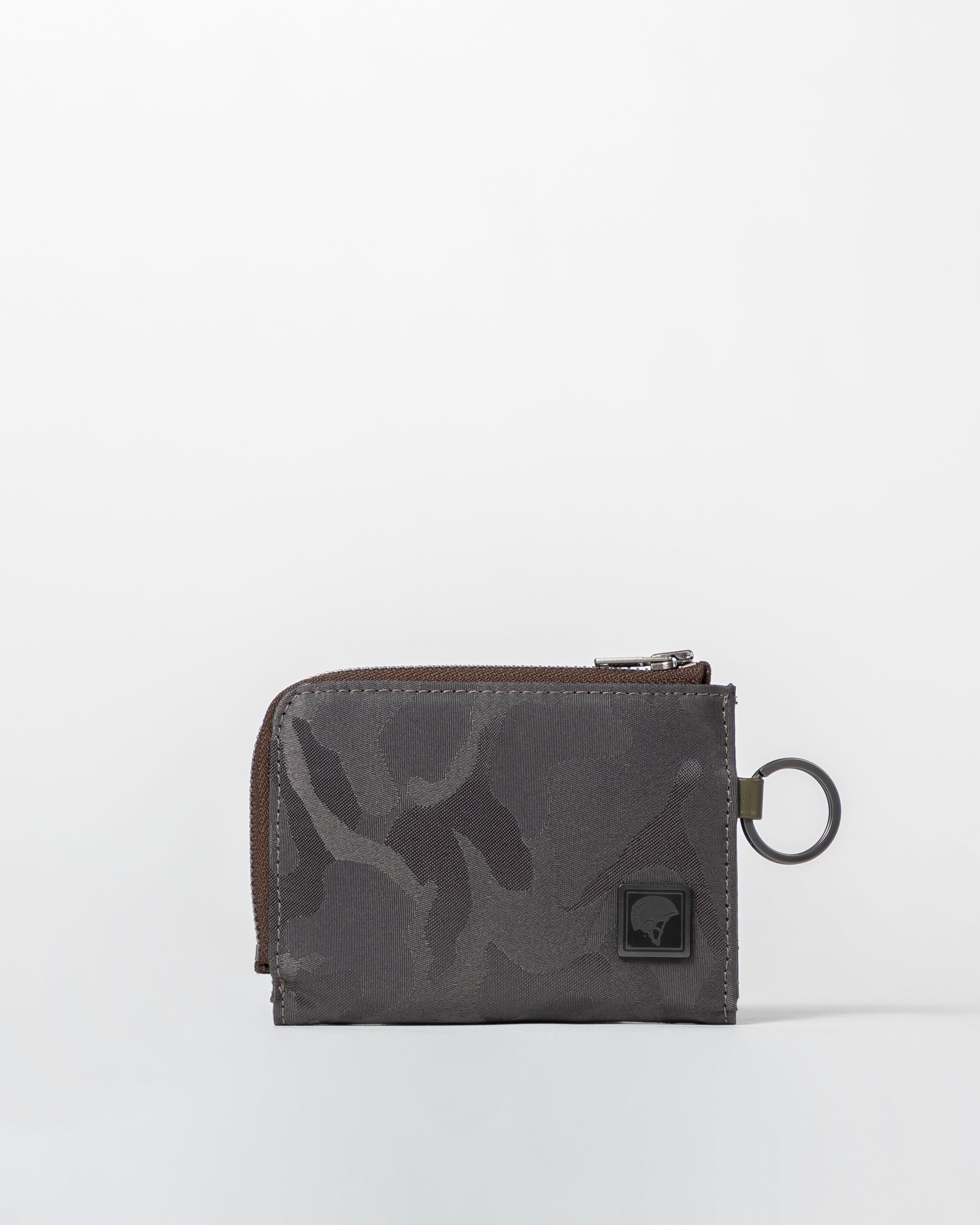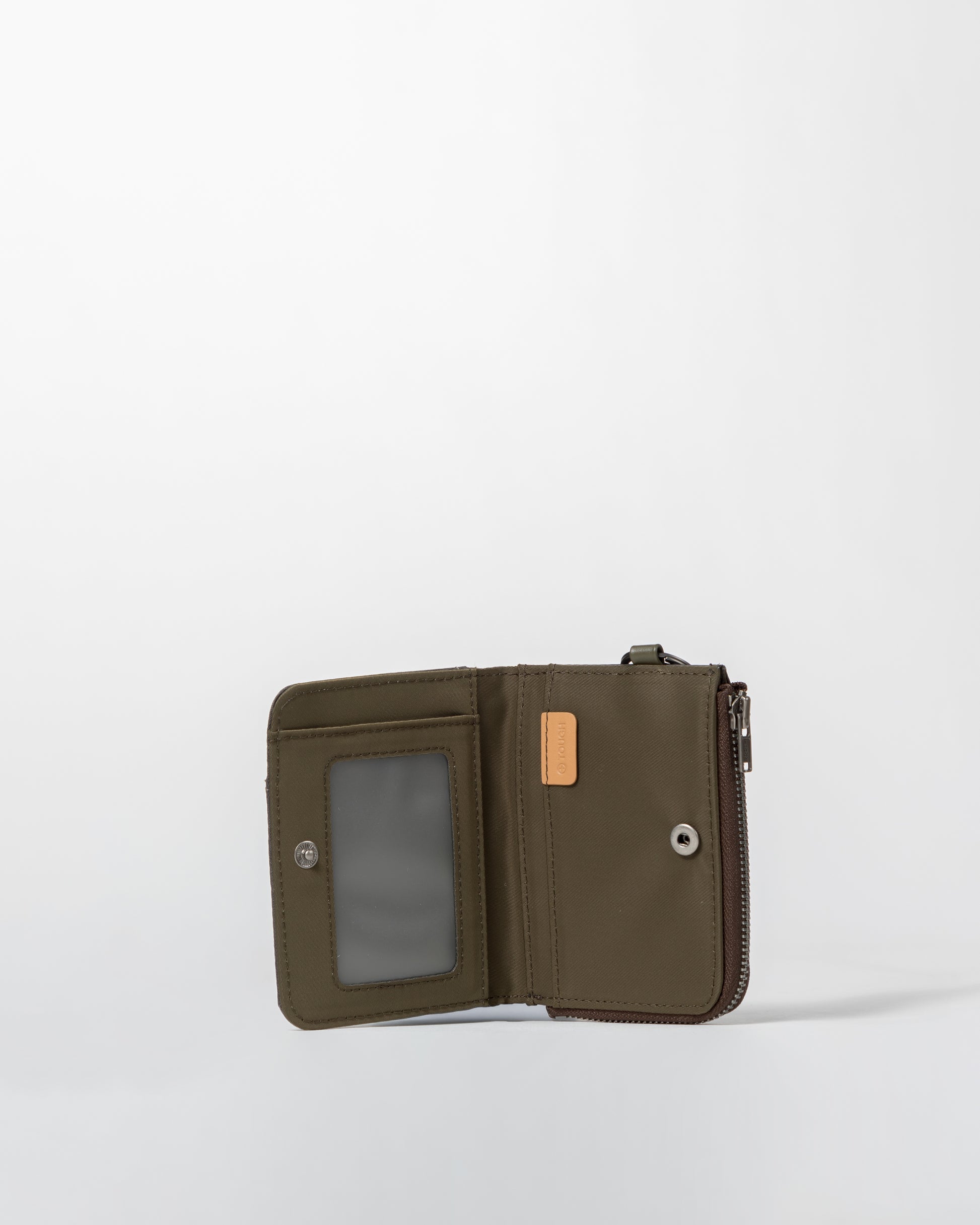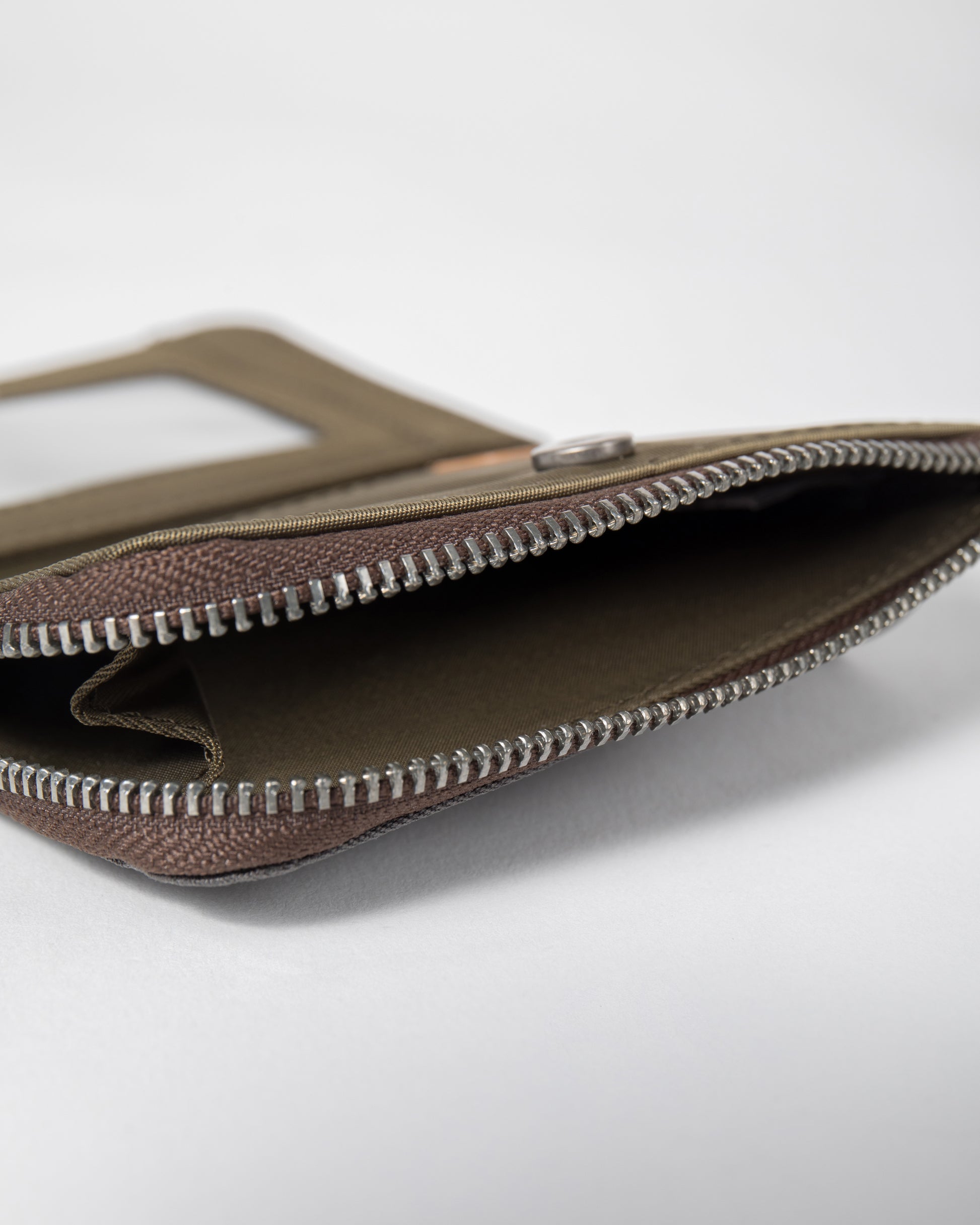 • Two-fold coin purse • There is a button in the middle for opening and closing, a zipper pocket on the top of the front compartment, and a key ring • The inner compartment has two credit card slots, one photo slot and one credit card slot