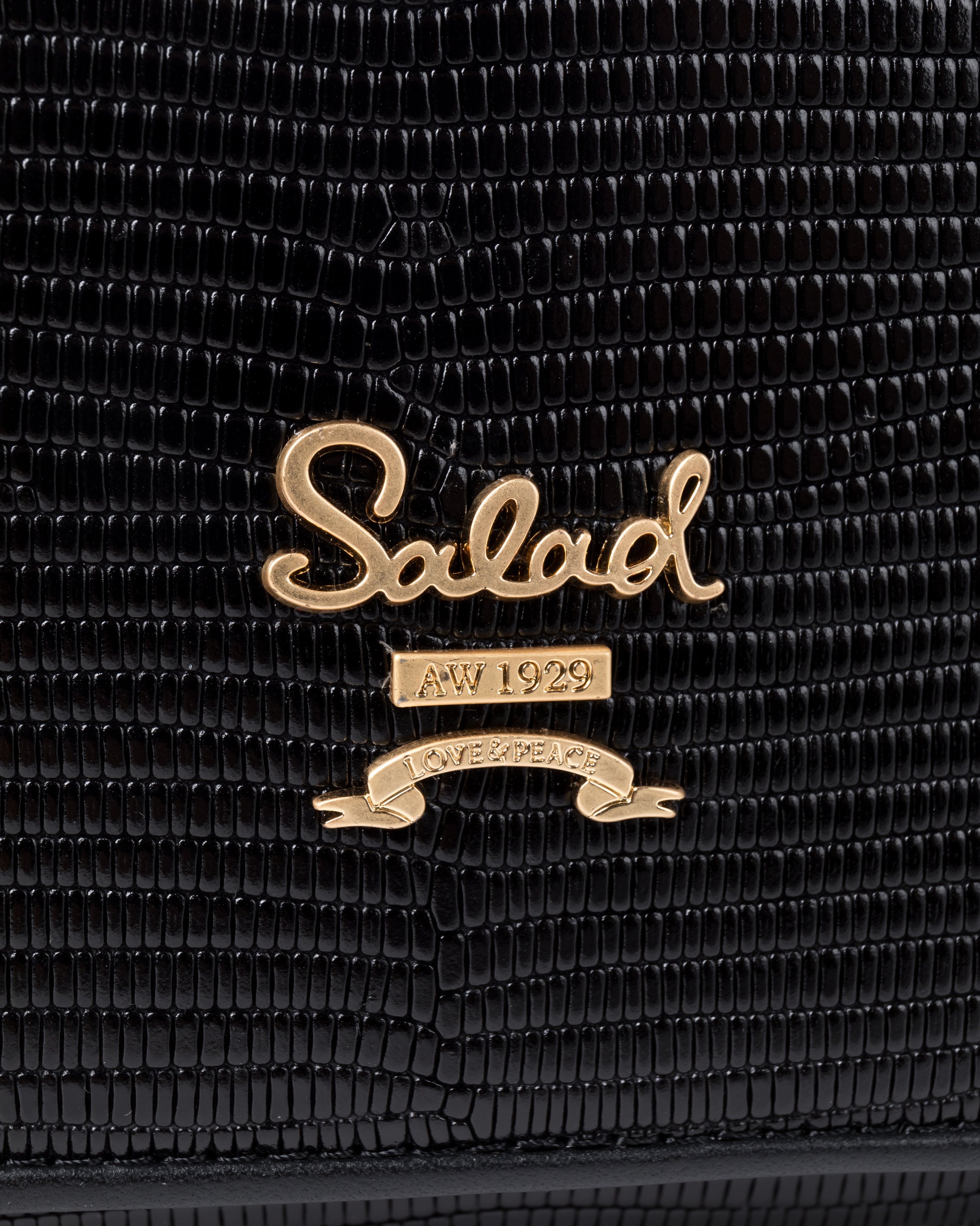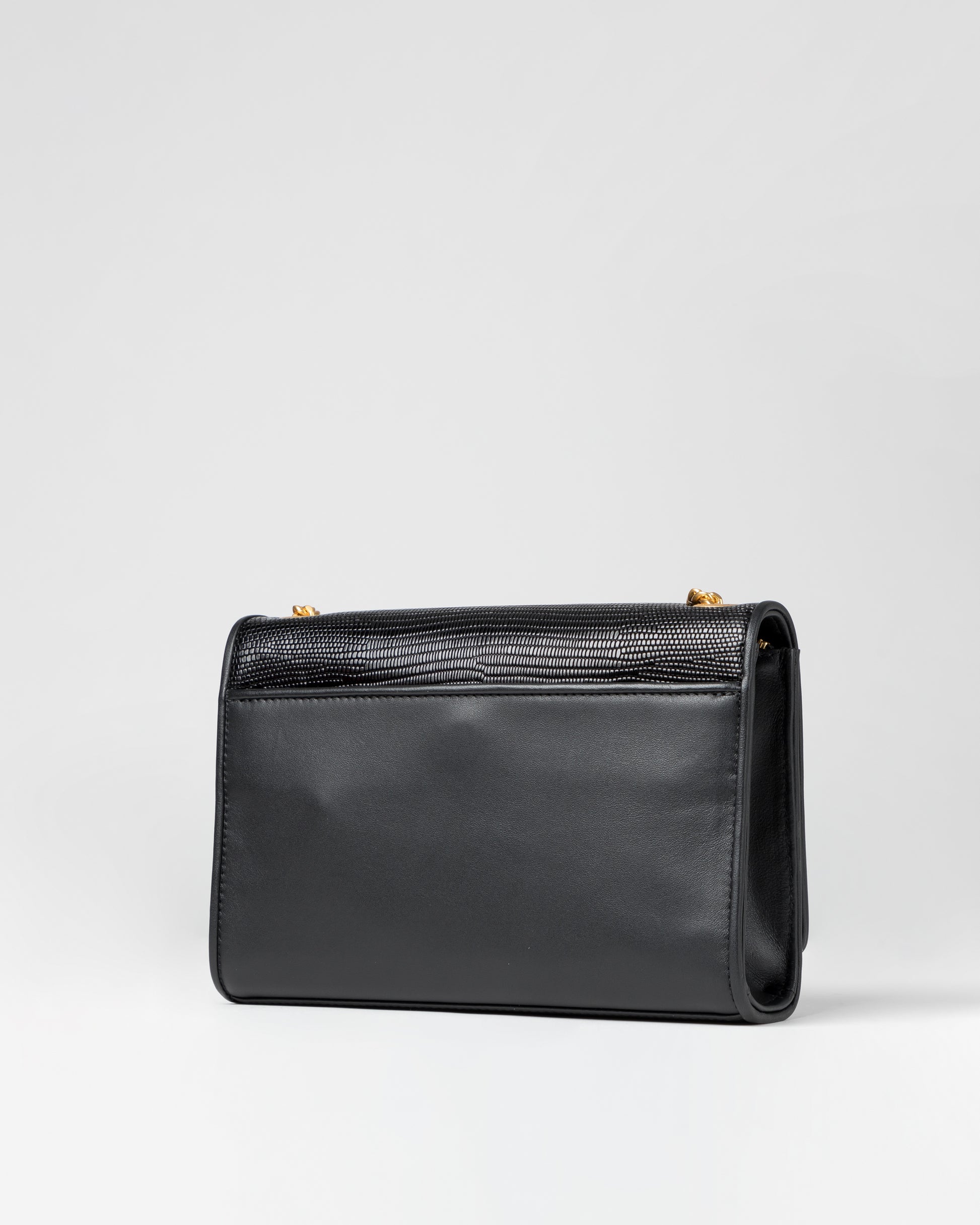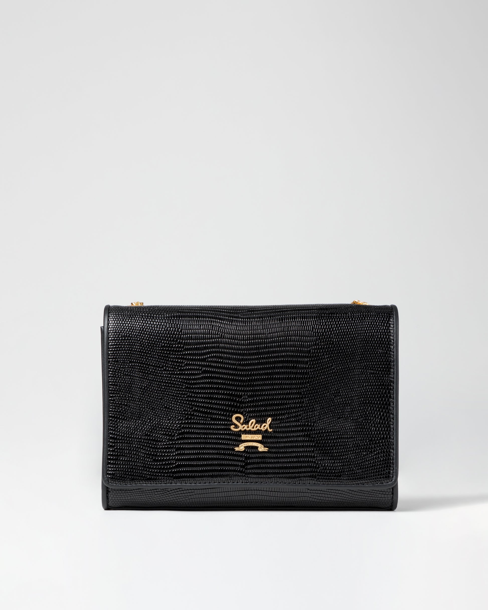 • Flap design with magnetic closure • Interior zip pocket, four credit card slots, side flat pockets, back slip pocket with magnetic closure • Adjustable chain and leather shoulder strap • Main material: Italian-made imitation lizard-embossed cowhide leather, hand-brushed with a yin-yang two-tone effect, making the leather more three-dimensional and transparent
