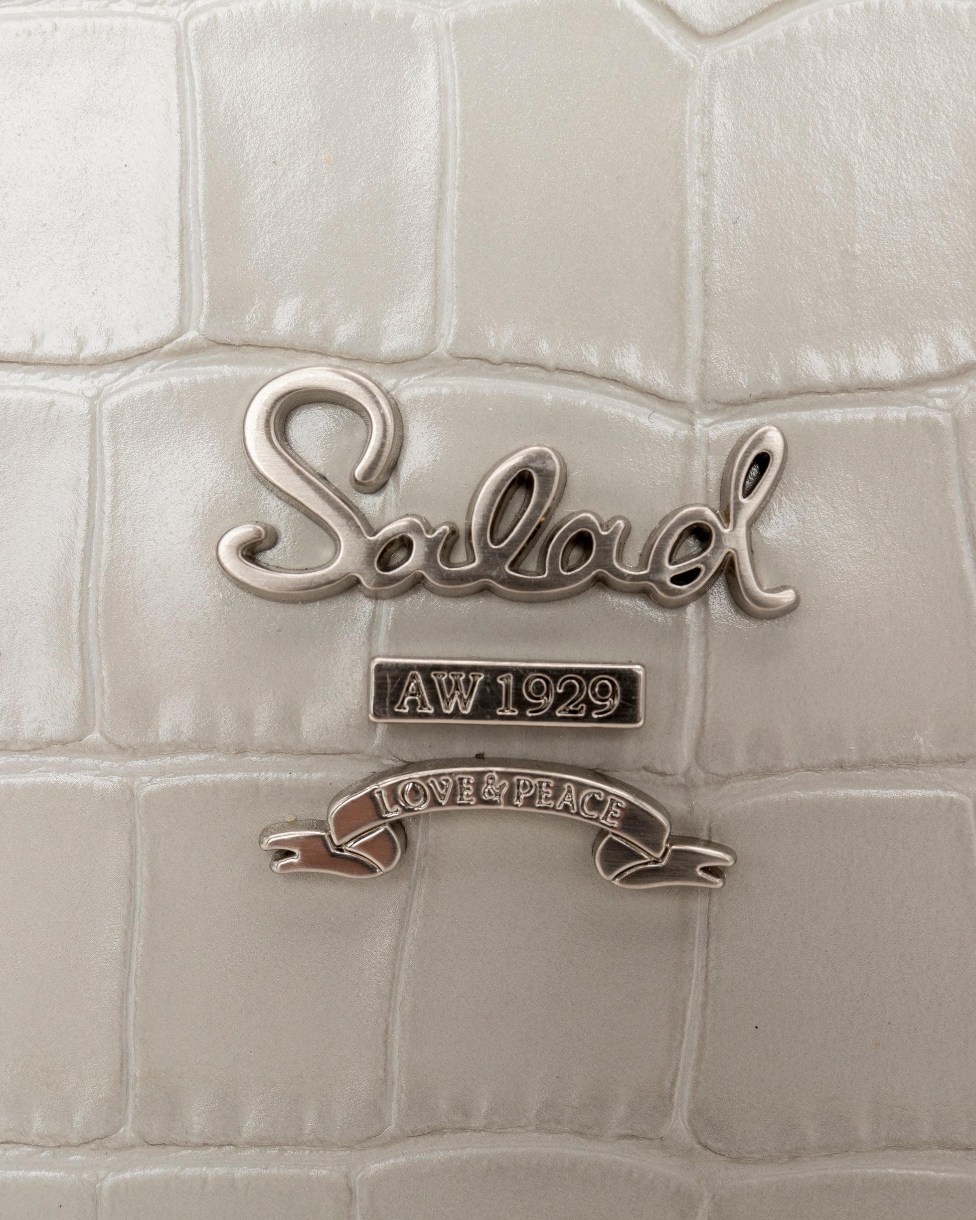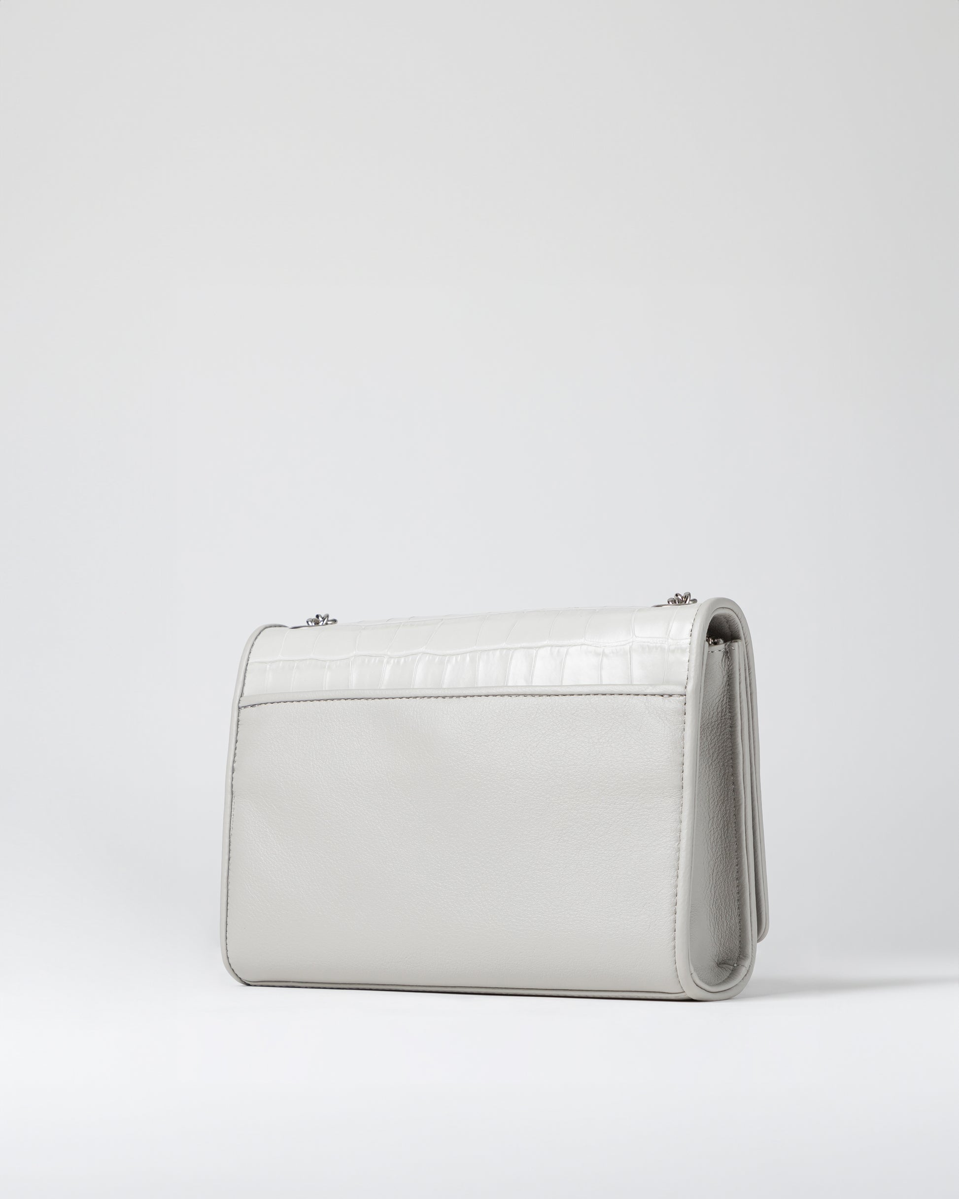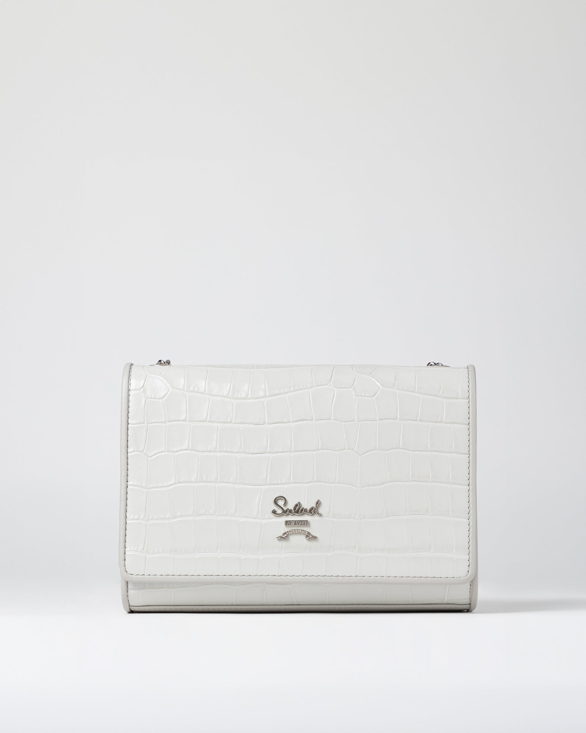 • Flap design with magnetic closure • Interior zip pocket, four credit card slots, side flat pockets, back slip pocket with magnetic closure • Adjustable chain and leather shoulder strap • Main material: Italian-made imitation lizard-embossed cowhide leather, hand-brushed with a yin-yang two-tone effect, making the leather more three-dimensional and transparent