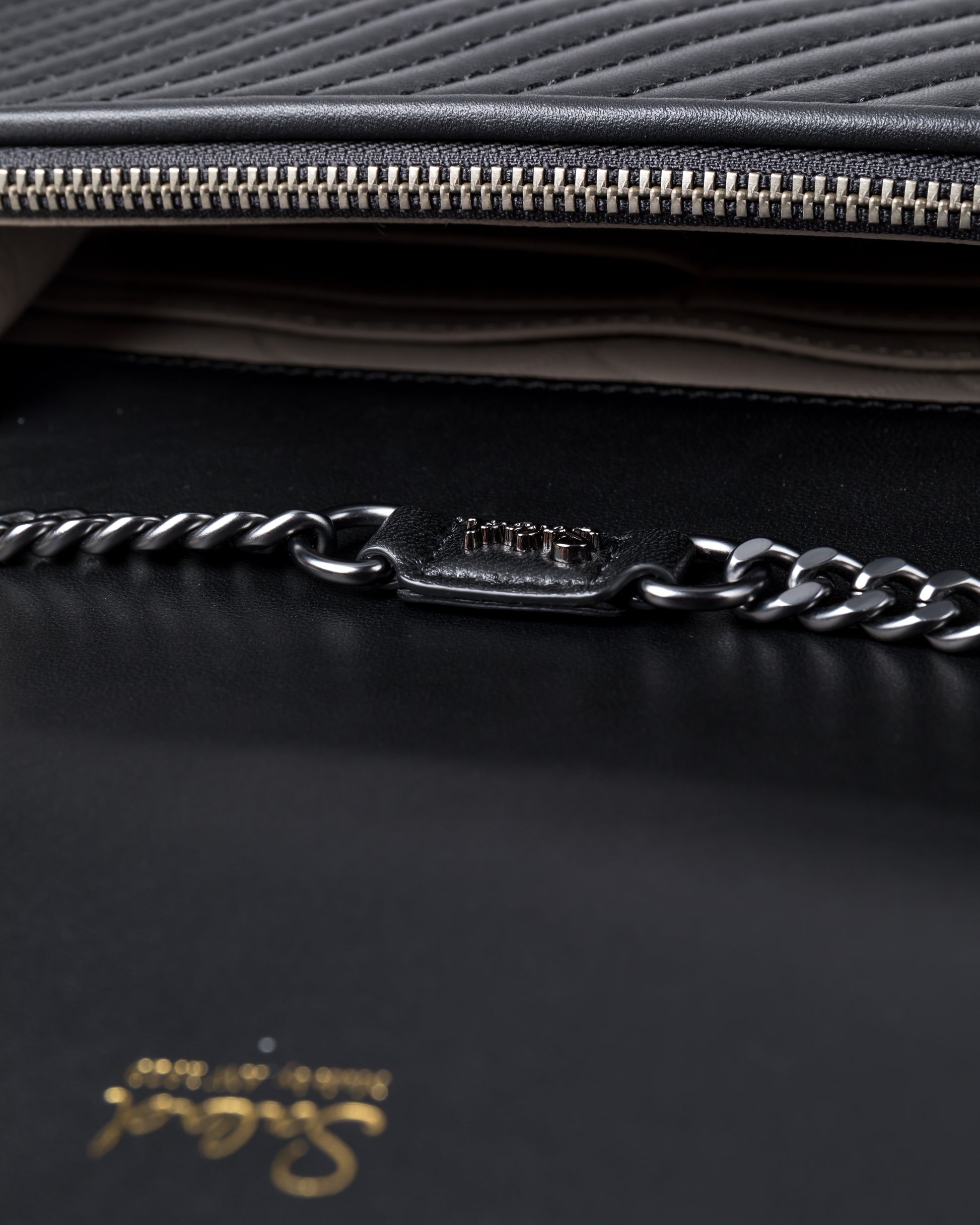 • Flap design with magnetic closure • Interior zip pocket, four credit card slots, side flat pockets, back slip pocket with magnetic closure • Adjustable chain and leather shoulder strap • Main material: Italian-made imitation lizard-embossed cowhide leather, hand-brushed with a yin-yang two-tone effect, making the leather more three-dimensional and transparent