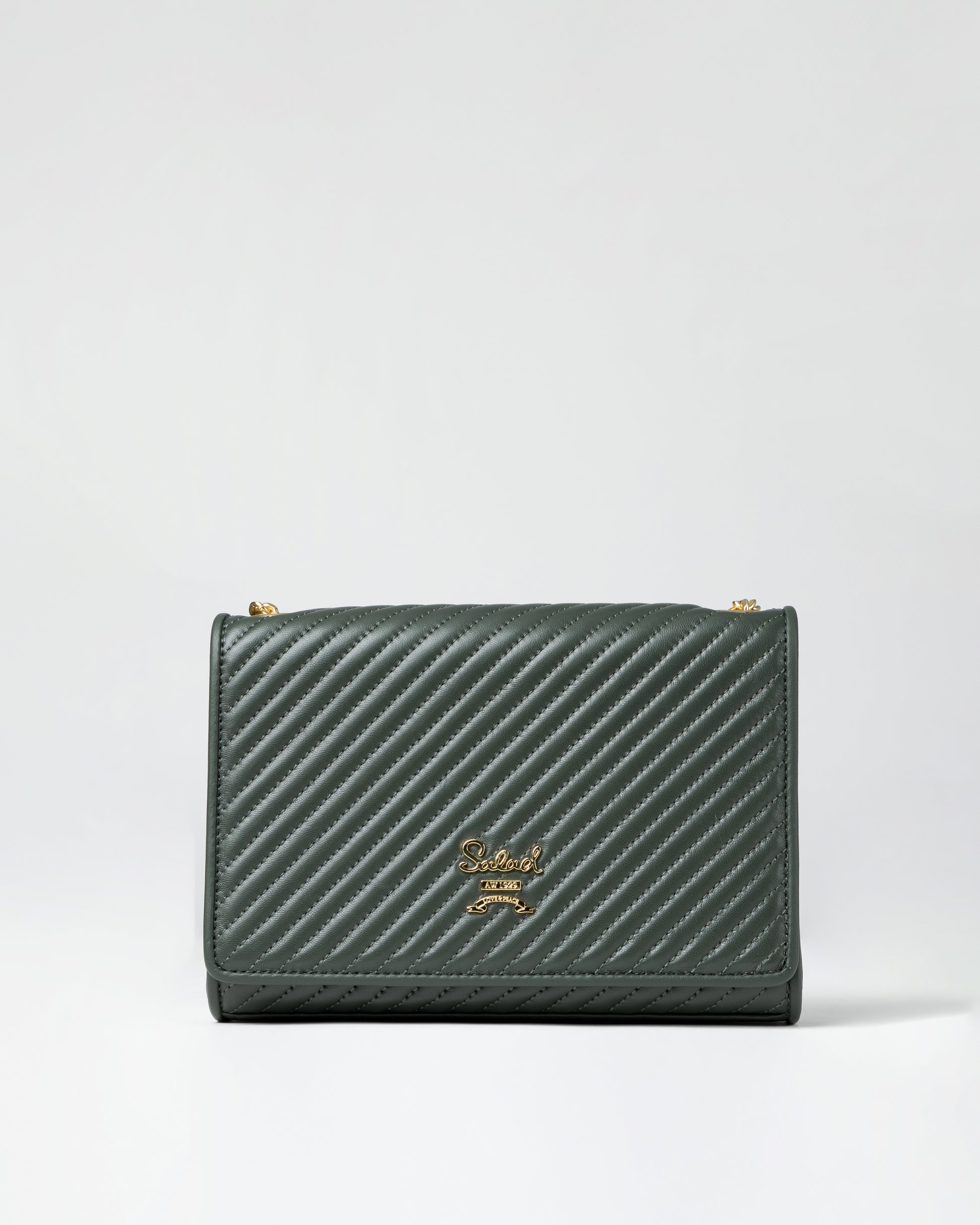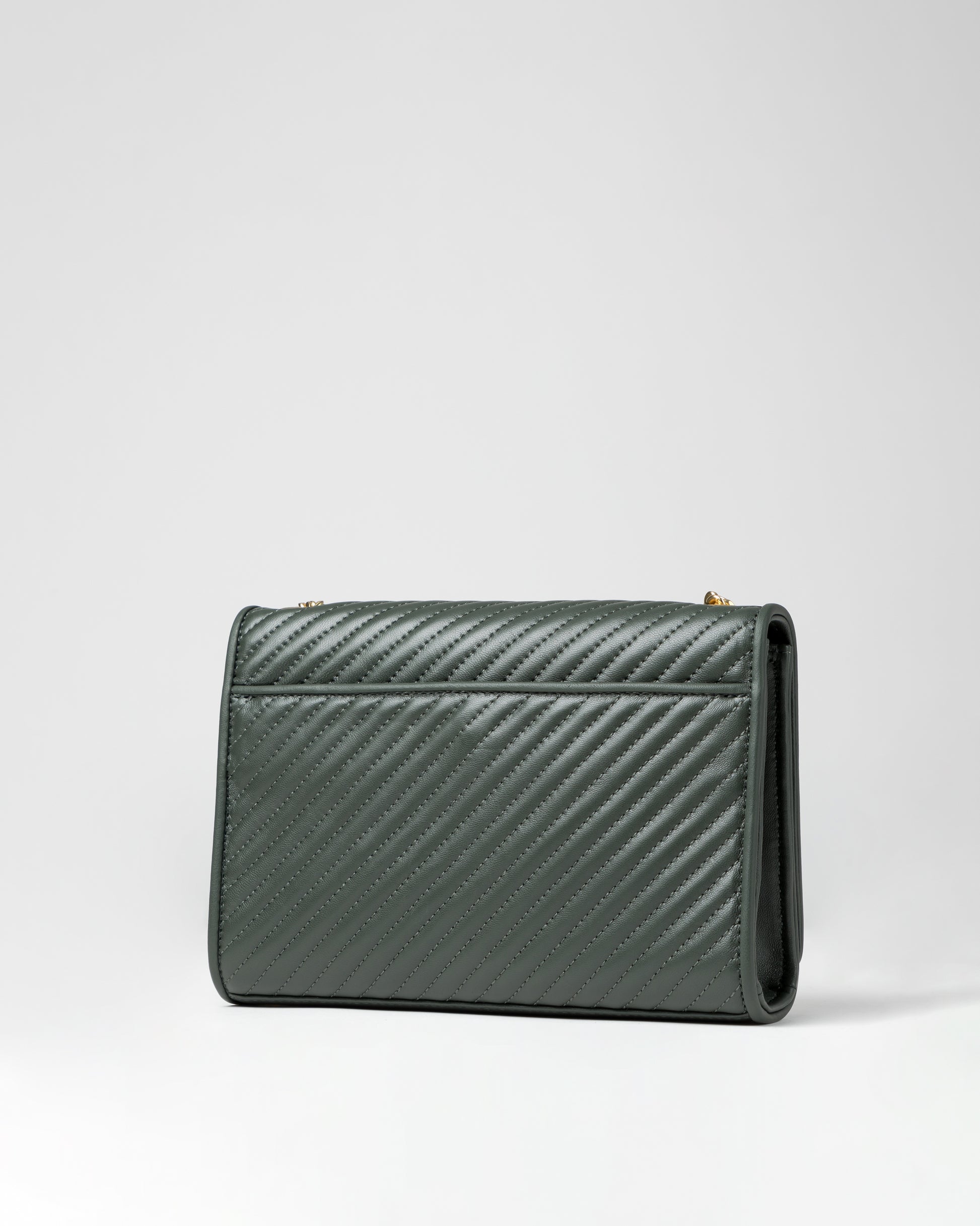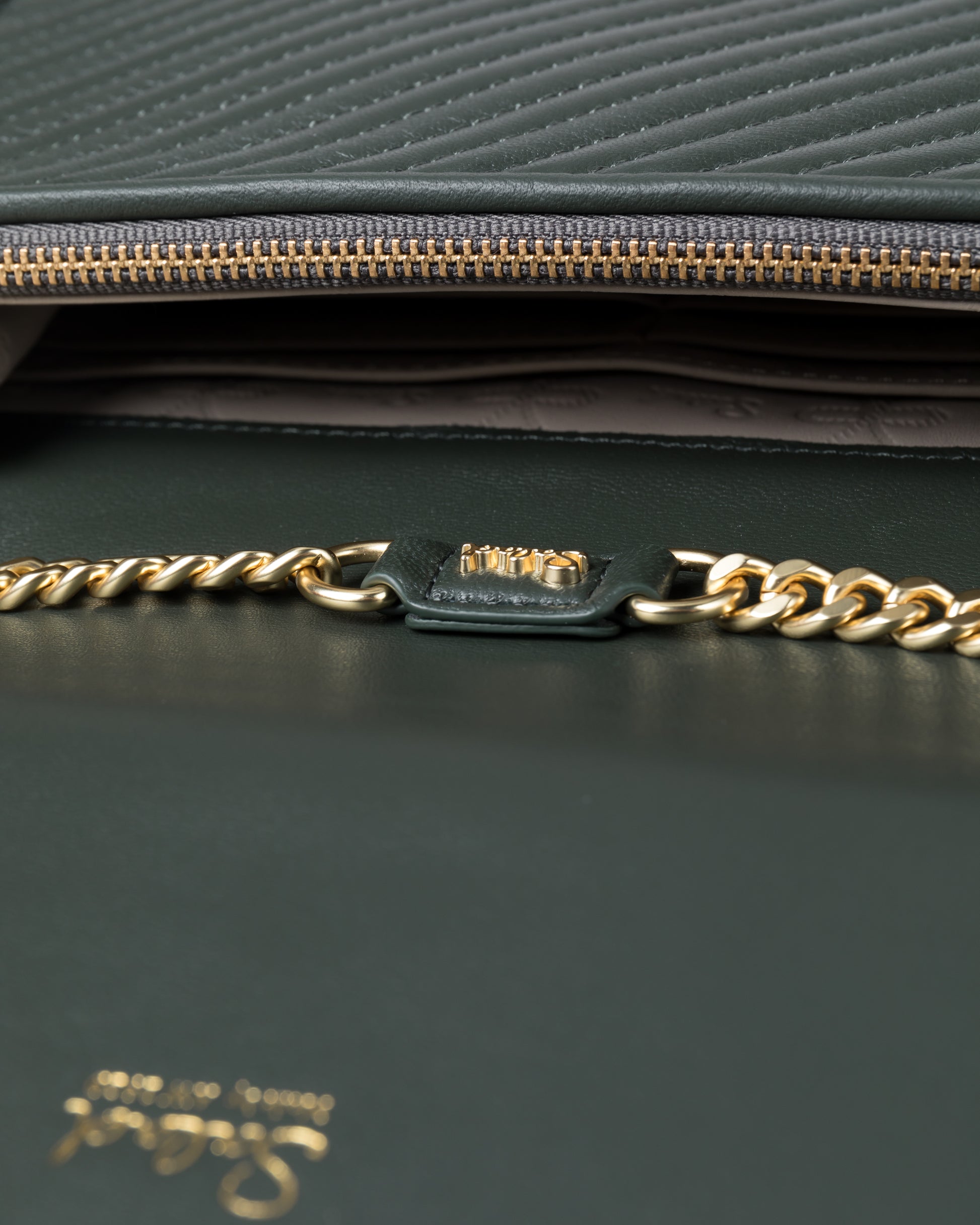 • Flap design with magnetic closure • Interior zip pocket, four credit card slots, side flat pockets, back slip pocket with magnetic closure • Adjustable chain and leather shoulder strap • Main material: Italian-made imitation lizard-embossed cowhide leather, hand-brushed with a yin-yang two-tone effect, making the leather more three-dimensional and transparent