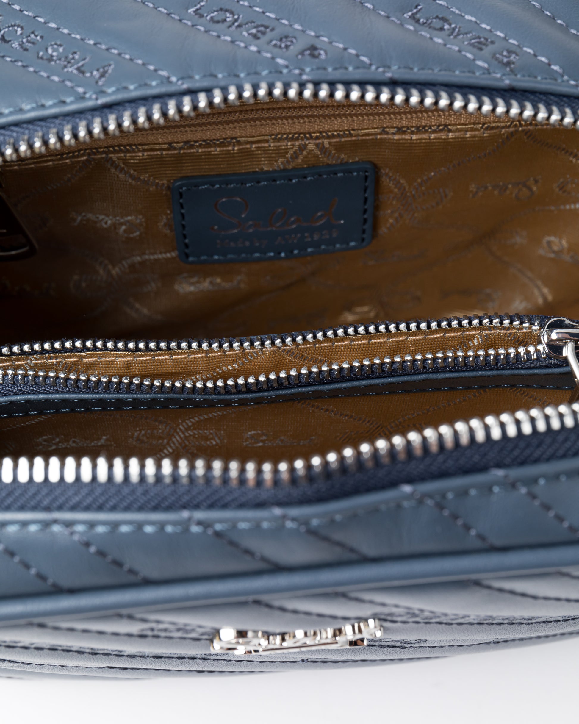 The body of the bag is decorated with twill and Salad quilted leather effect; the main compartment has a two-way zipper closure, and the inner center has a zipper compartment; the grained leather belt has a natural texture and a soft feel 19.7(L) x 7.6(D) x 15.2( Height) cm Shoulder Strap Length: 111.1 - 128.3 cm Shoulder Strap Middle Height: 64.15 cm