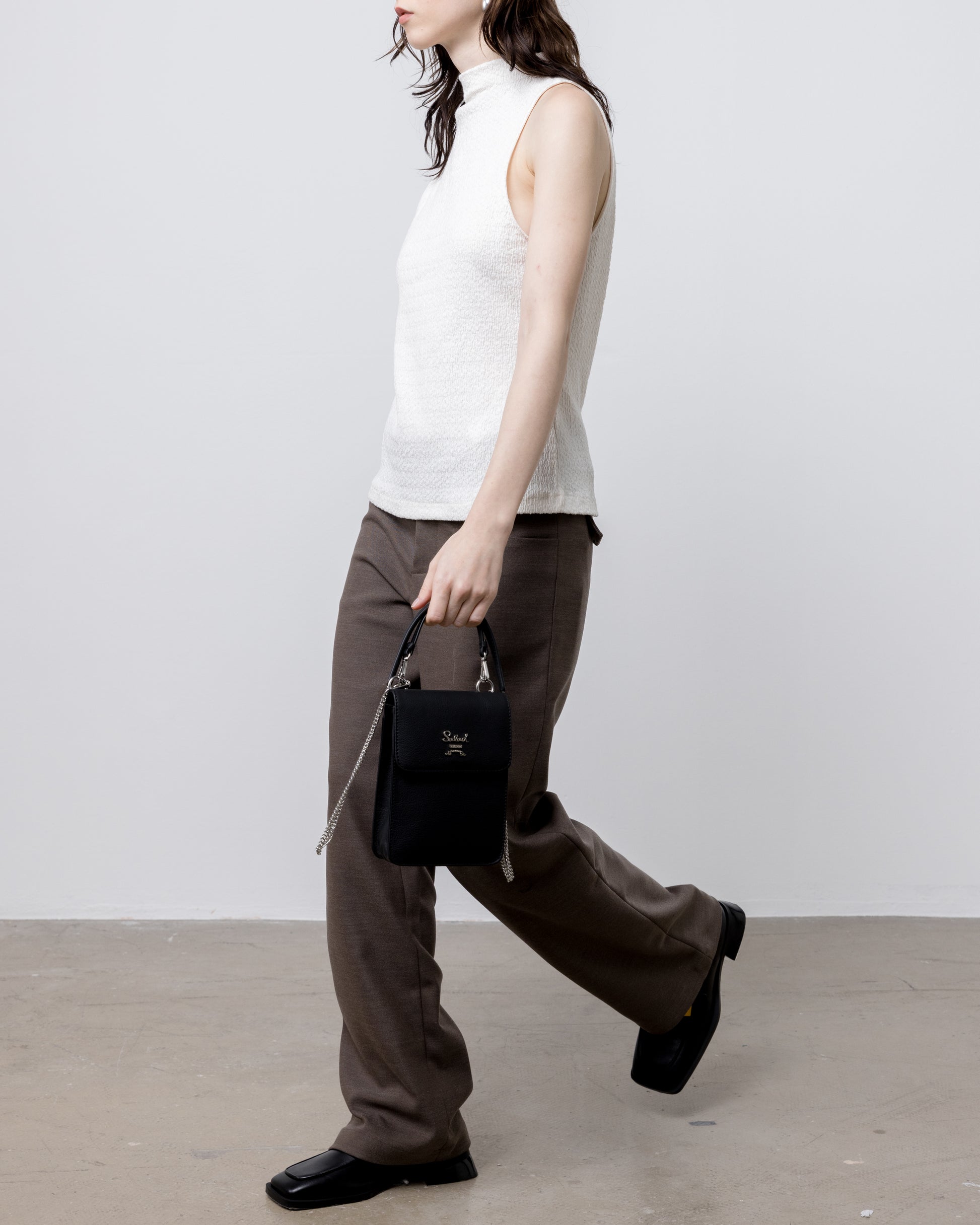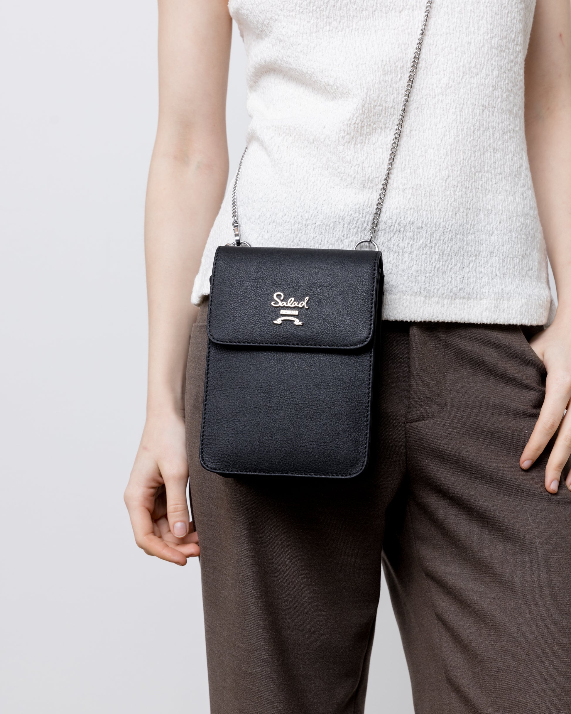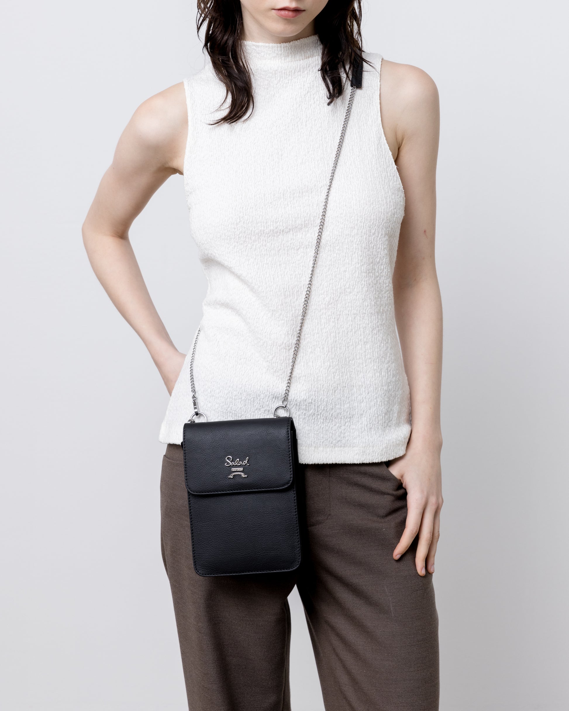 Flap with magnetic buttons, back slip pocket; detachable handle, metal chain shoulder strap, with a detachable leather case approximately 25 cm long Grained cowhide leather with natural texture, soft to the touch x 18.4(H) cm Shoulder Strap Length: 0 - 116.8 cm Shoulder Strap Middle Height: 58.4 cm Handle Height: 10.2 cm