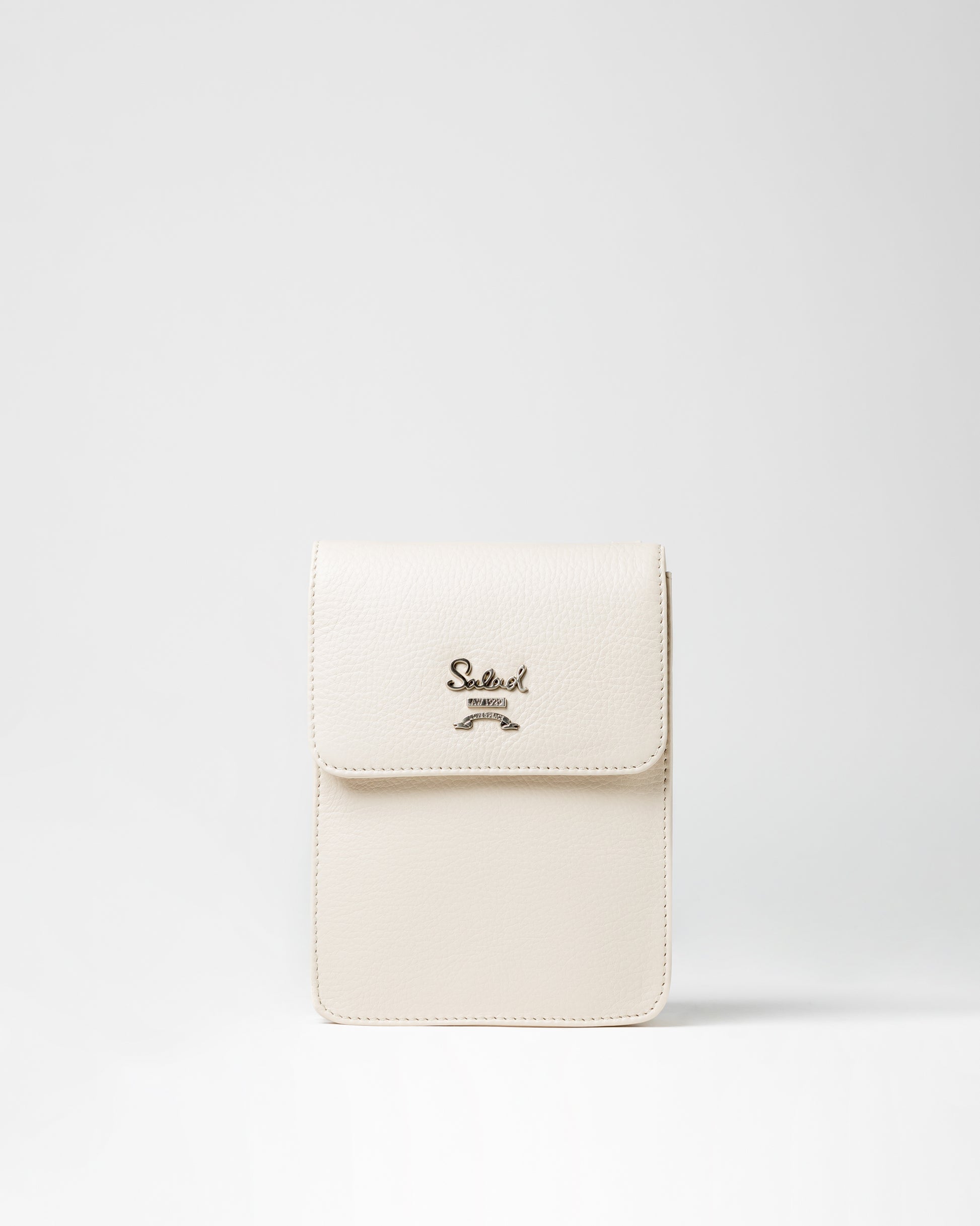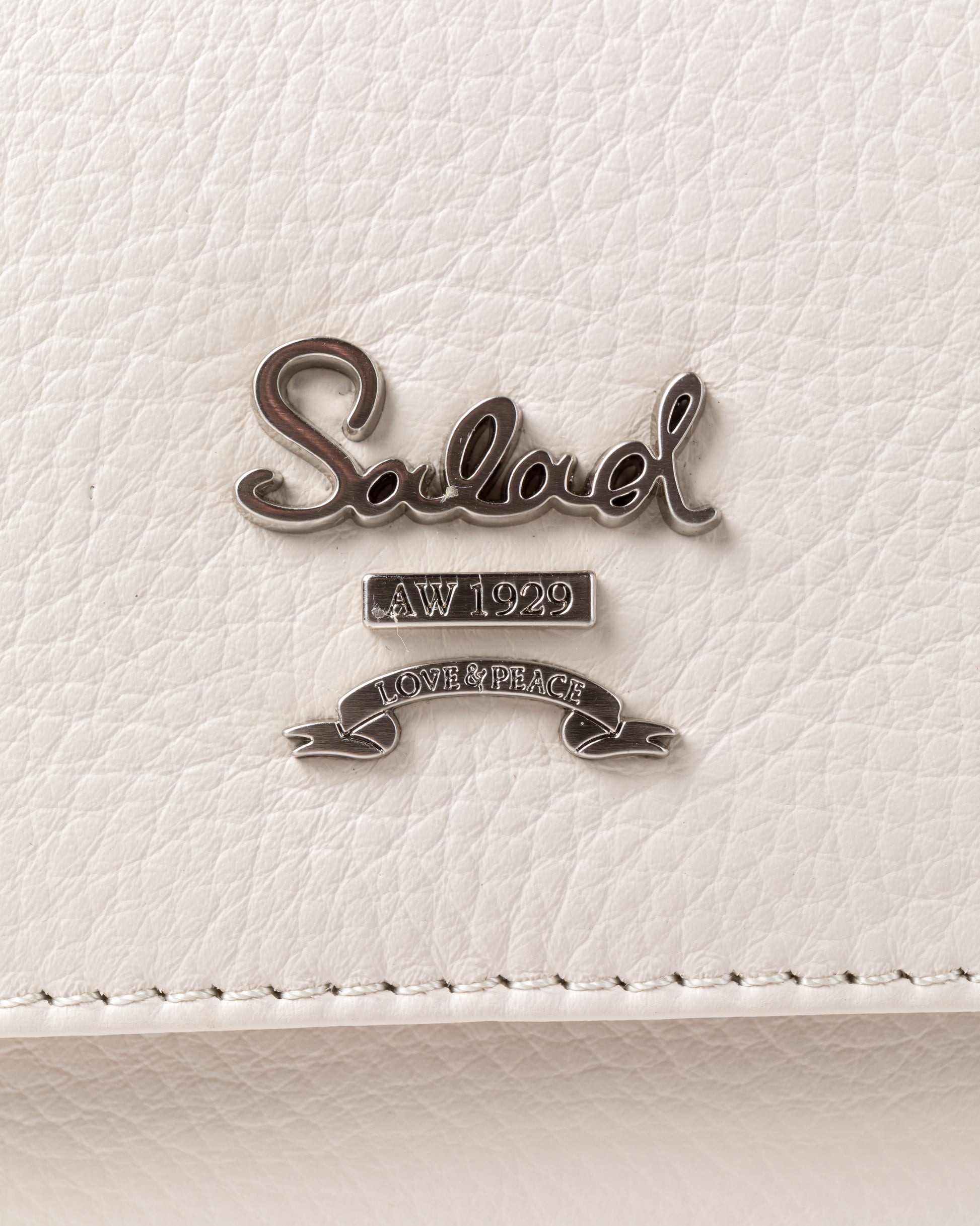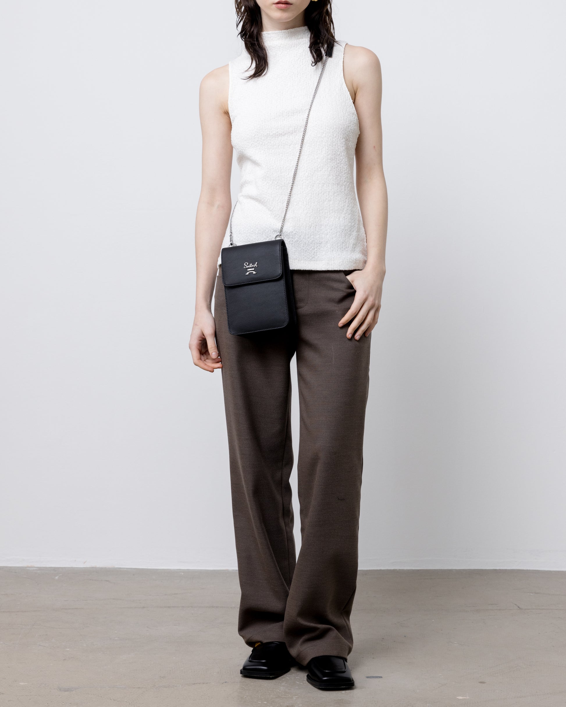 Flap with magnetic buttons, back slip pocket; detachable handle, metal chain shoulder strap, with a detachable leather case approximately 25 cm long Grained cowhide leather with natural texture, soft to the touch x 18.4(H) cm Shoulder Strap Length: 0 - 116.8 cm Shoulder Strap Middle Height: 58.4 cm Handle Height: 10.2 cm