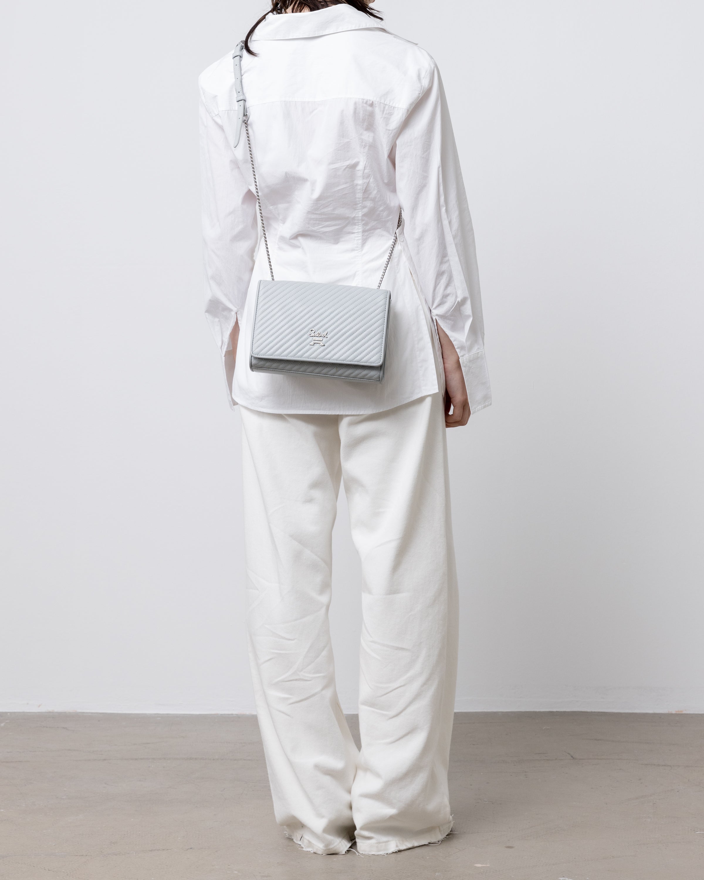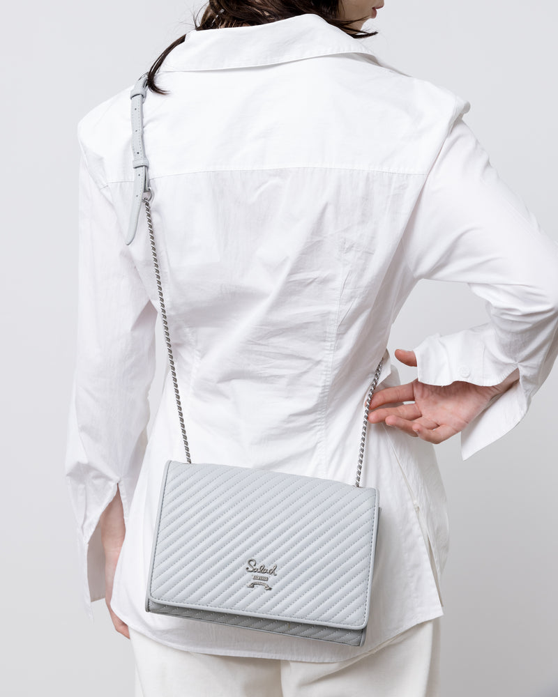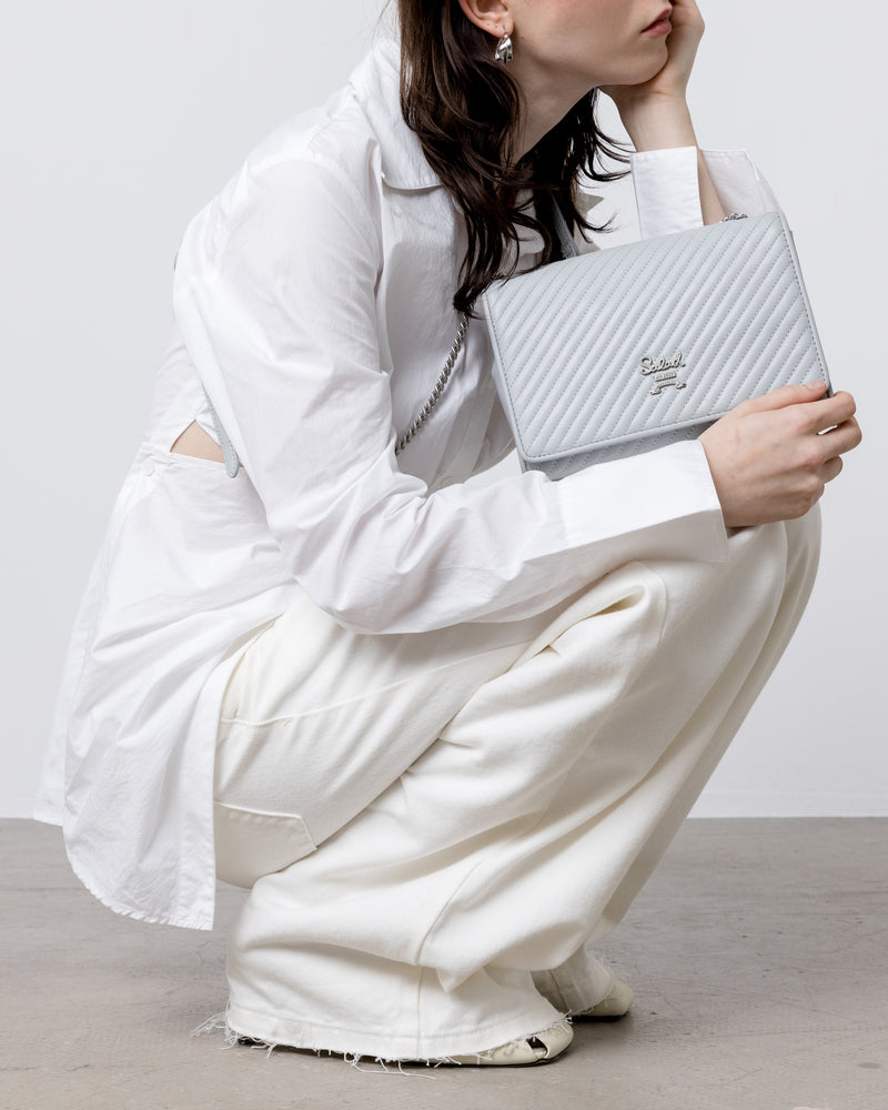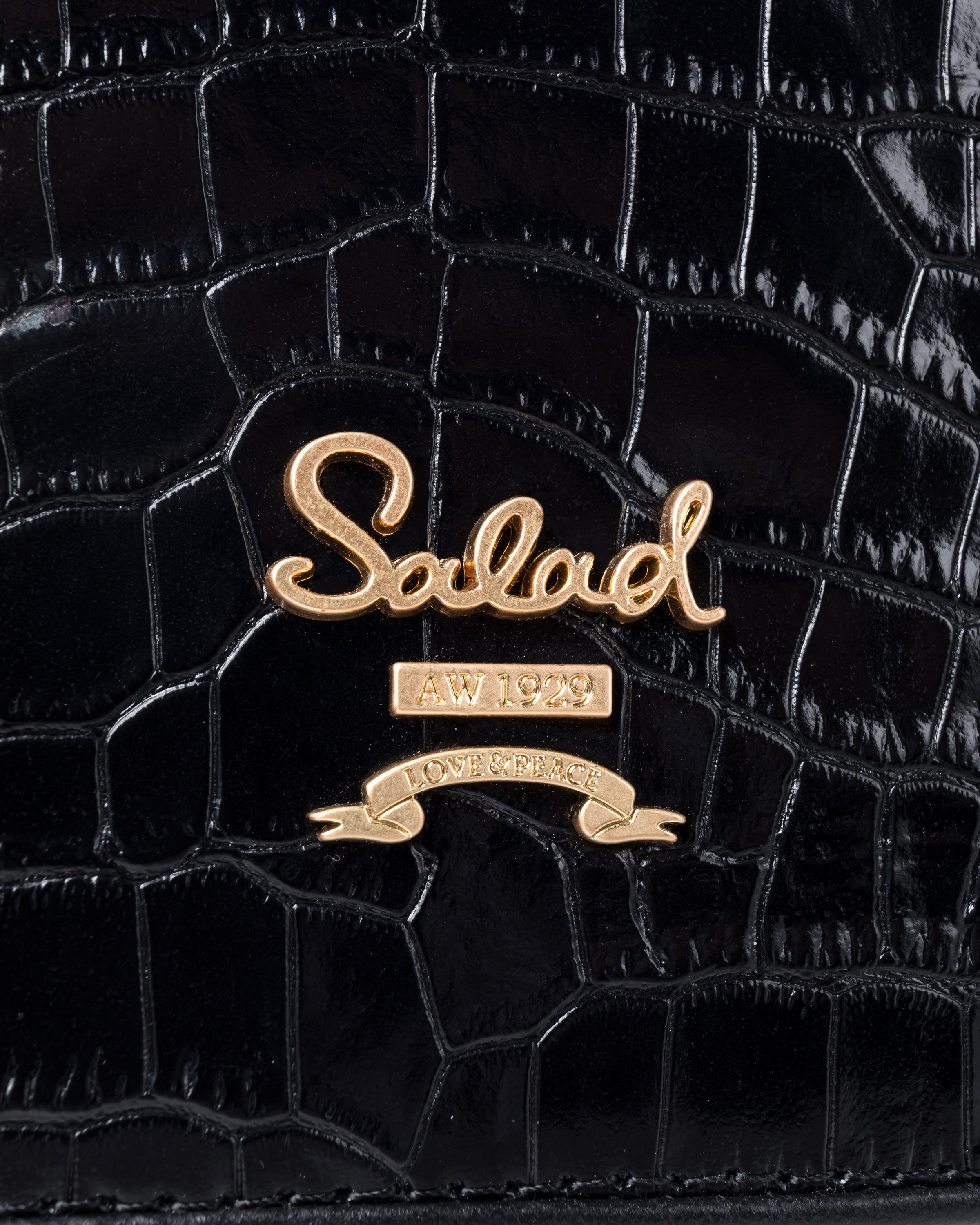 • Flap design with magnetic closure • Full lambskin lining with embossed Salad pattern • Interior zip pocket, four credit card slots, side flat pockets, back magnetic closure • Adjustable leather shoulder strap with chain • Main material: Italian cowhide with crocodile pattern, noble and elegant • Material: Cowhide with less texture on the surface and straight feel