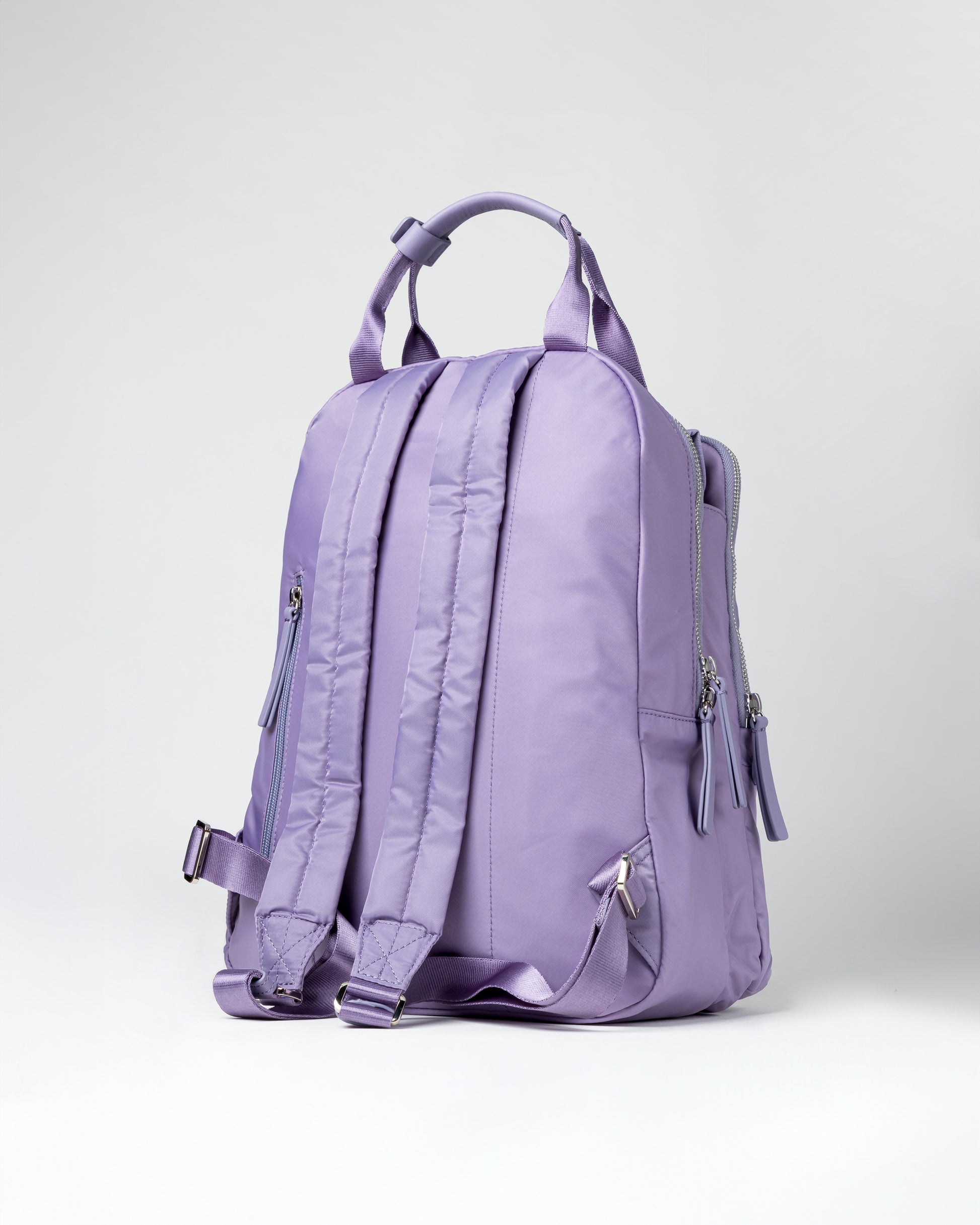 There are 6 zipper compartments on the outside of the bag, two main zipper compartments are equipped with two-way metal zippers; the rear small zipper compartment can put valuables for added security; the middle compartment slip pocket has buttons for quick opening and closing, It is specially designed for storing non-valuable and commonly used items such as water bottles and umbrellas, so as to avoid the inconvenience caused by frequent zipper opening and closing; you can also put a slightly wet umbrella in this compartment to avoid getting wet with important items; the double handle design can make Pull up the backpack horizontally when holding it without tilting Main material: high-density nylon, water-resistant Material: Grained leather leather Natural texture, soft to the touch 28.575(L) x 13.335(D) x 35.8775(H) cm Shoulder strap length: 67