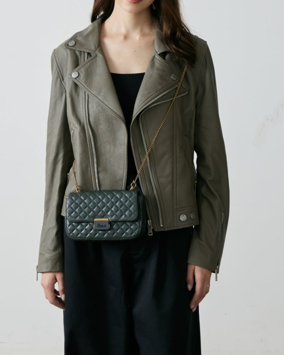 • Slip pocket at the back, non-adjustable chain leather shoulder strap
