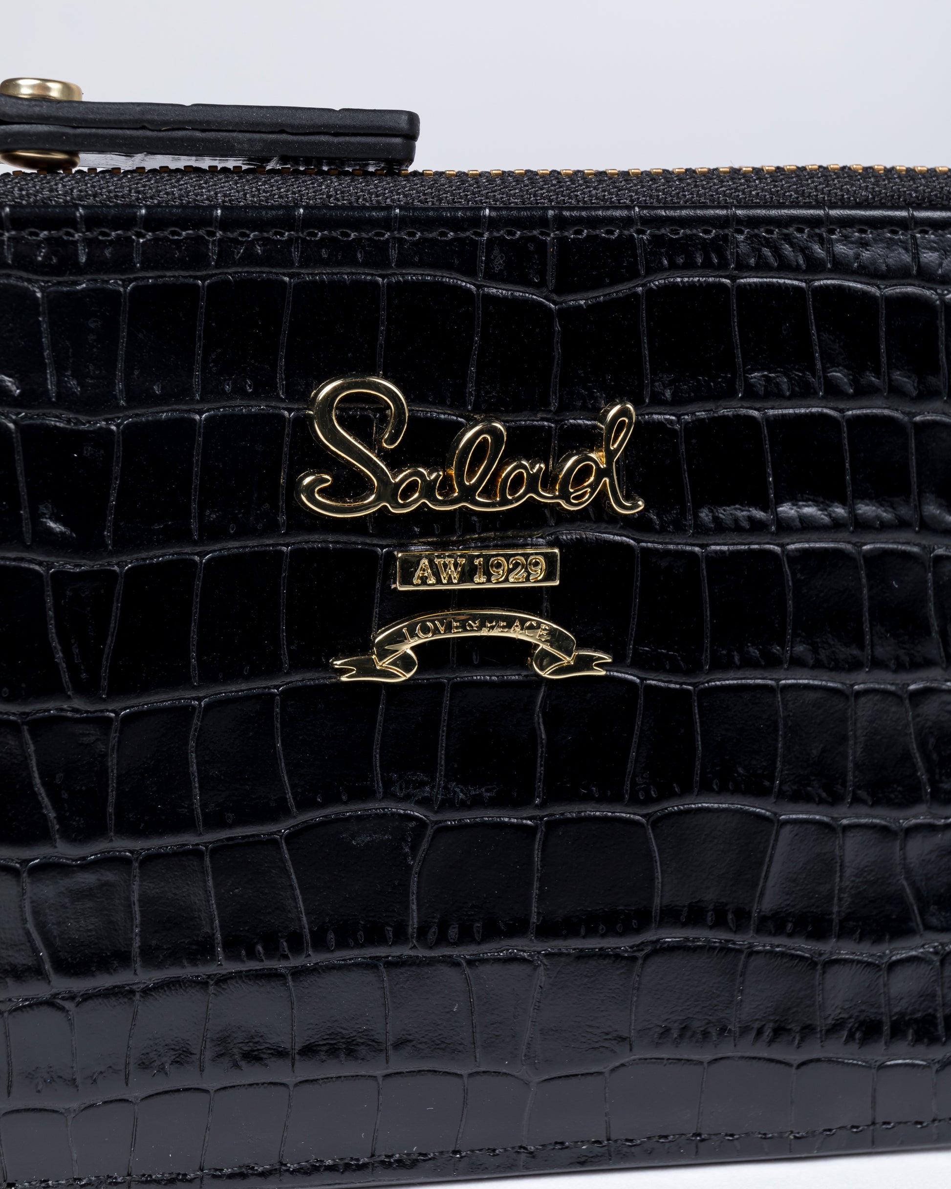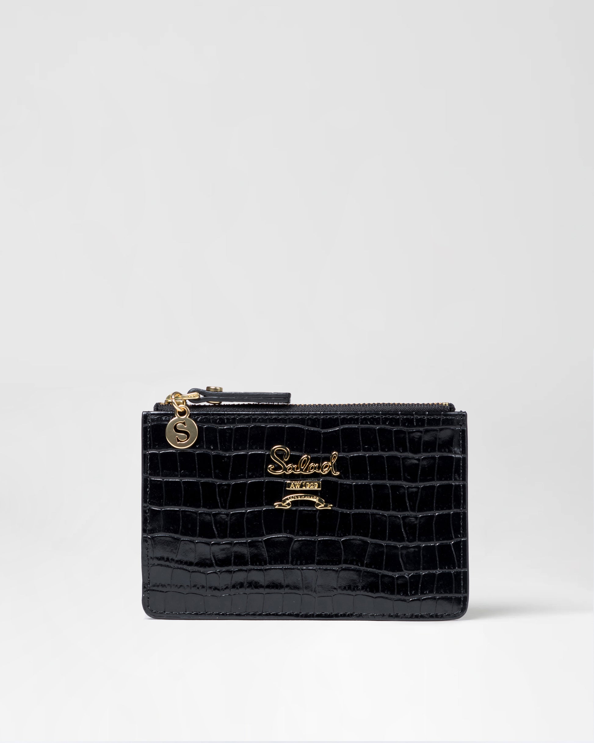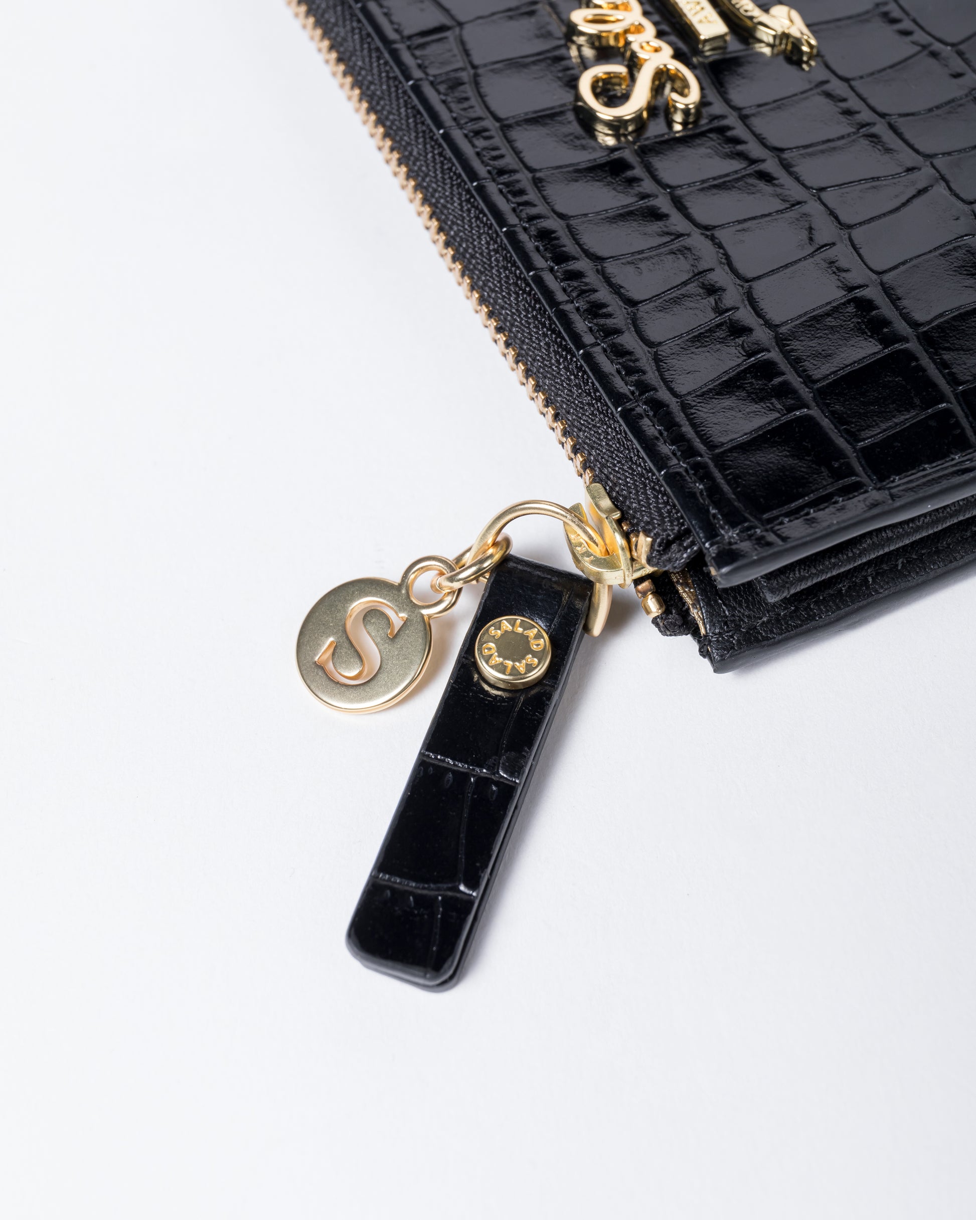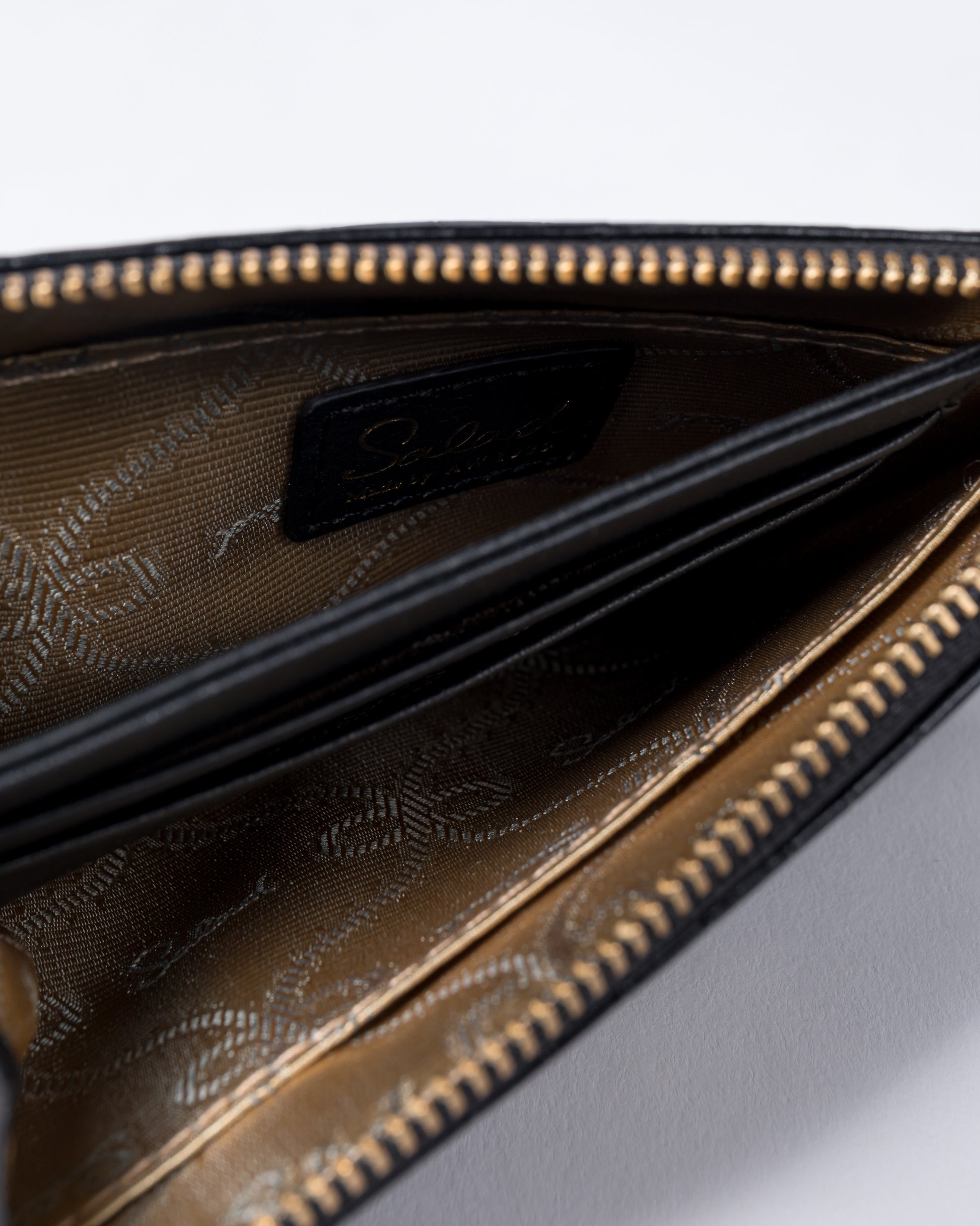 • Zipper closure, with four credit card slots and two flat compartments inside