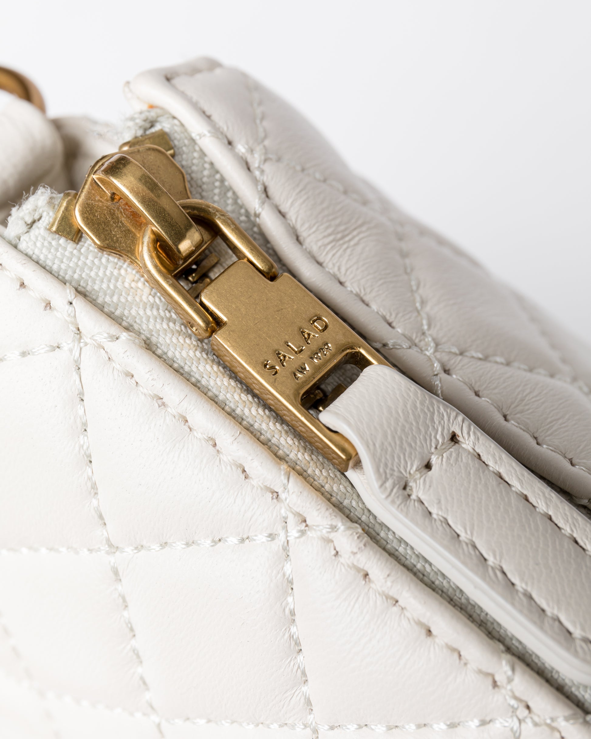 The body of the bag is decorated with diamond quilted leather effect, and the main compartment has a zipper closure; the extra-wide guitar strap with unique personality can be removed at will to match different clothing styles; there are hidden zipper pockets on both sides of the bag, and a slip pocket on the back panel ; There are 3 compartments in the inner compartment to classify objects, and the middle compartment has slip pockets and zipper pockets; Antique gold-effect hardware accessories present a nostalgic feeling; Adjustable chain leather shoulder strap, no strap tail design, more convenient to use Smooth; selected natural smooth sheepskin, which has a soft touch and smooth and delicate texture, and is extra light 24.13(L)x 5.08(D)x 18.0975(H) cm