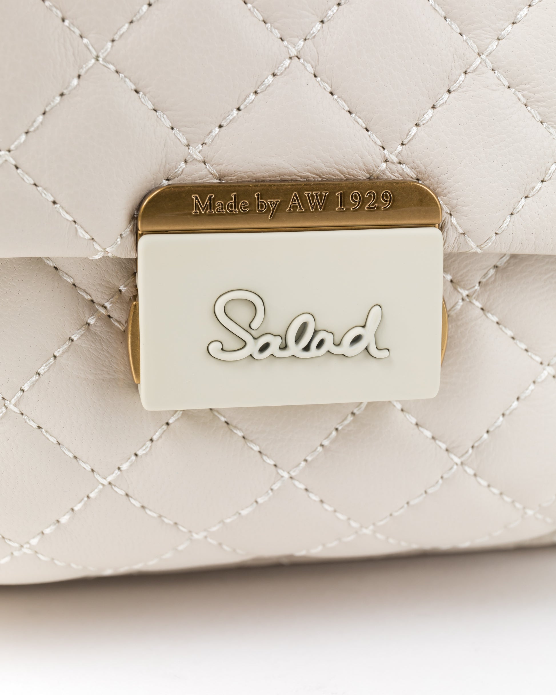 Diamond quilted leather surface effect, main compartment adopts two-way zipper closure, front pocket adopts push-lock front flap; slip pocket on the back; detachable and adjustable long shoulder strap, tailless design, more convenient and smooth when using; There are dog buckles attached to the ends of the straps, hide one shoulder strap in the back pocket, and buckle the dog buckle at the end of the other shoulder strap to the round buckle on the top of the bag, which can be used as a shoulder bag. Sheepskin, with soft touch, smooth and delicate texture, and extra light 19(L) x 7.6(D) x 22.8(H) cm Shoulder Strap Length: 69.8 - 105.4 cm Shoulder Strap Middle Height: 52.7 cm Handle