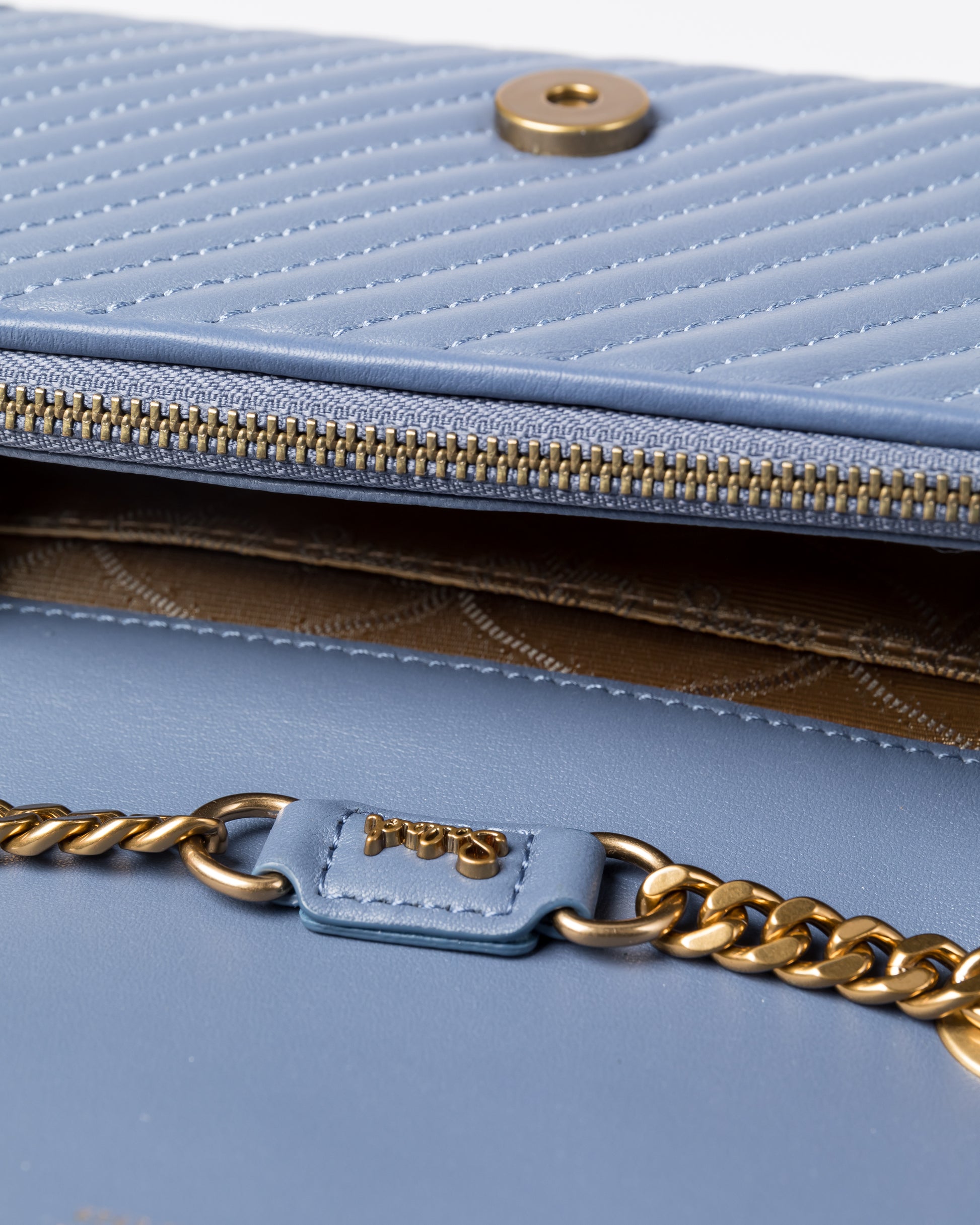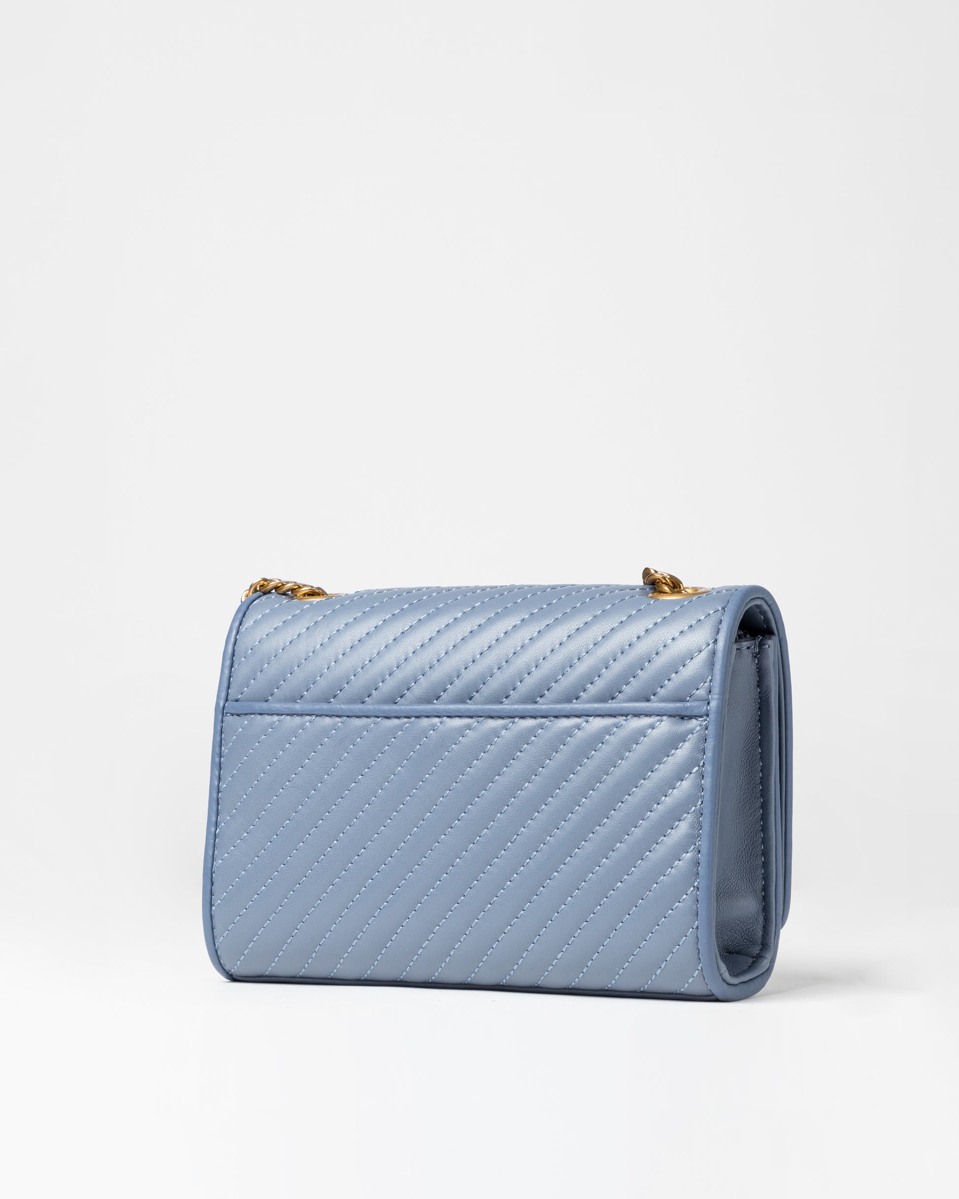 Diagonal quilted effect sheepskin, soft to the touch, flap design with magnetic closure; 1 zip pocket and 1 flat slip pocket inside, magnetic closure sliding pocket on the back Adjustable chain-applied leather shoulder strap , Tailless design, more convenient and smooth to use