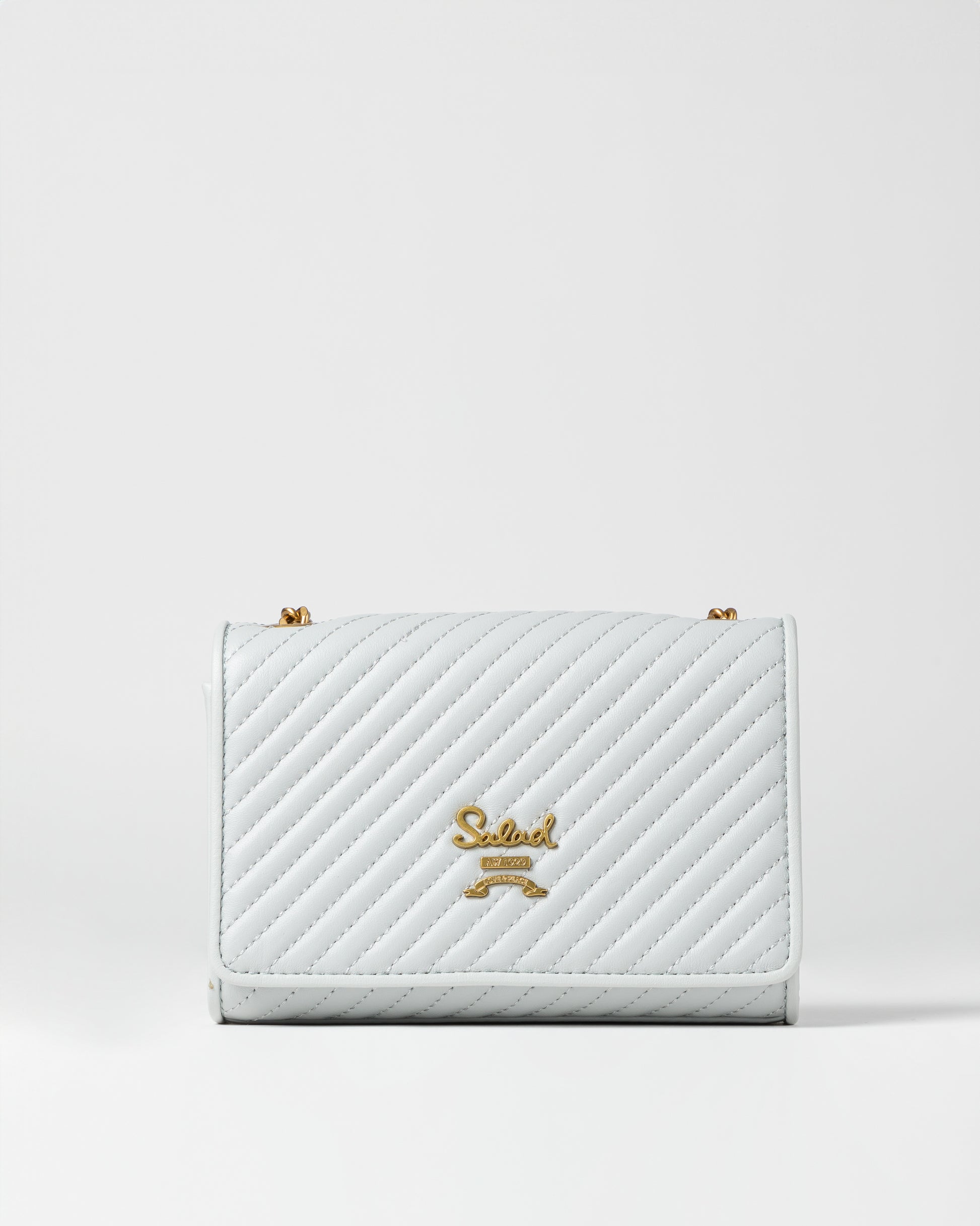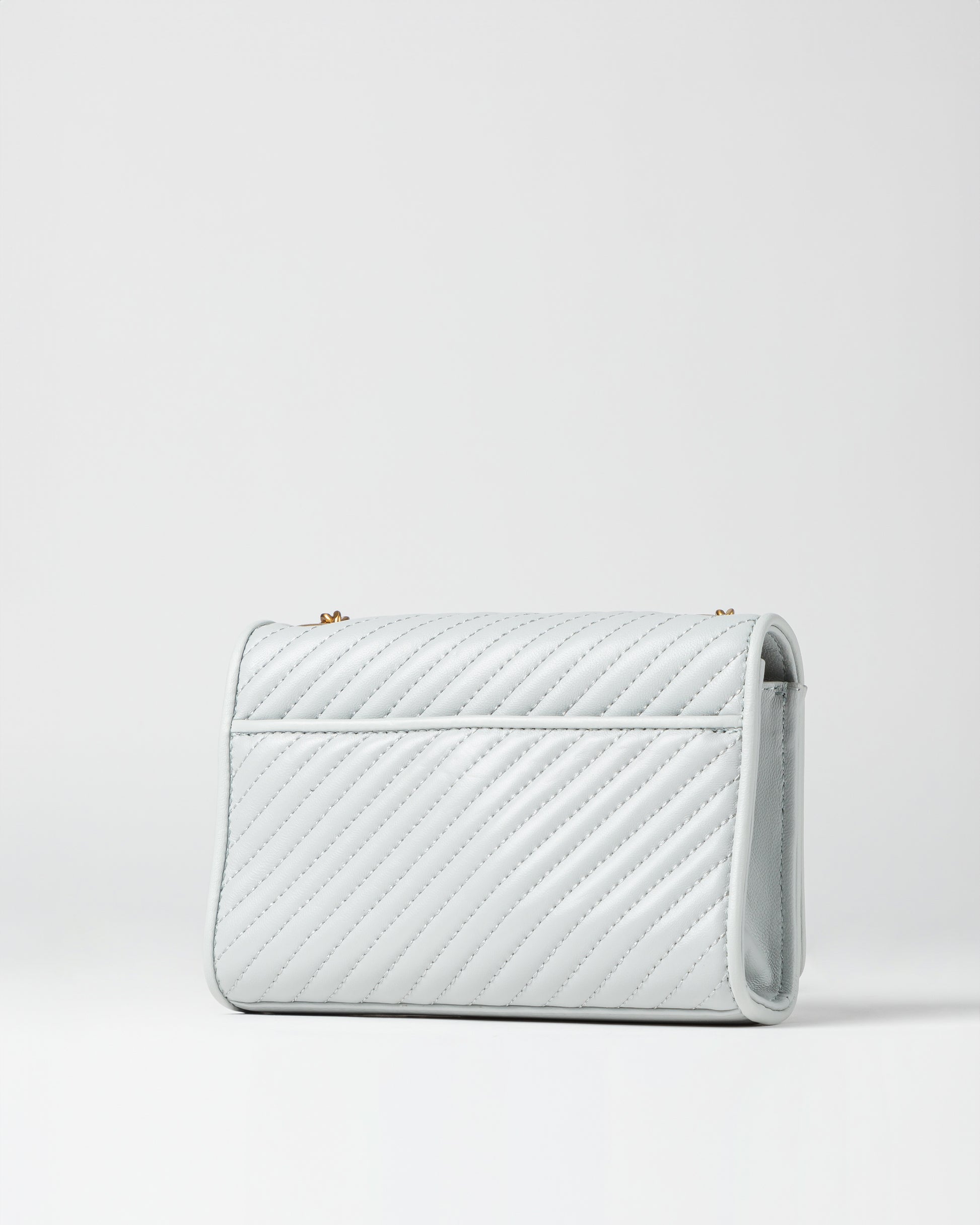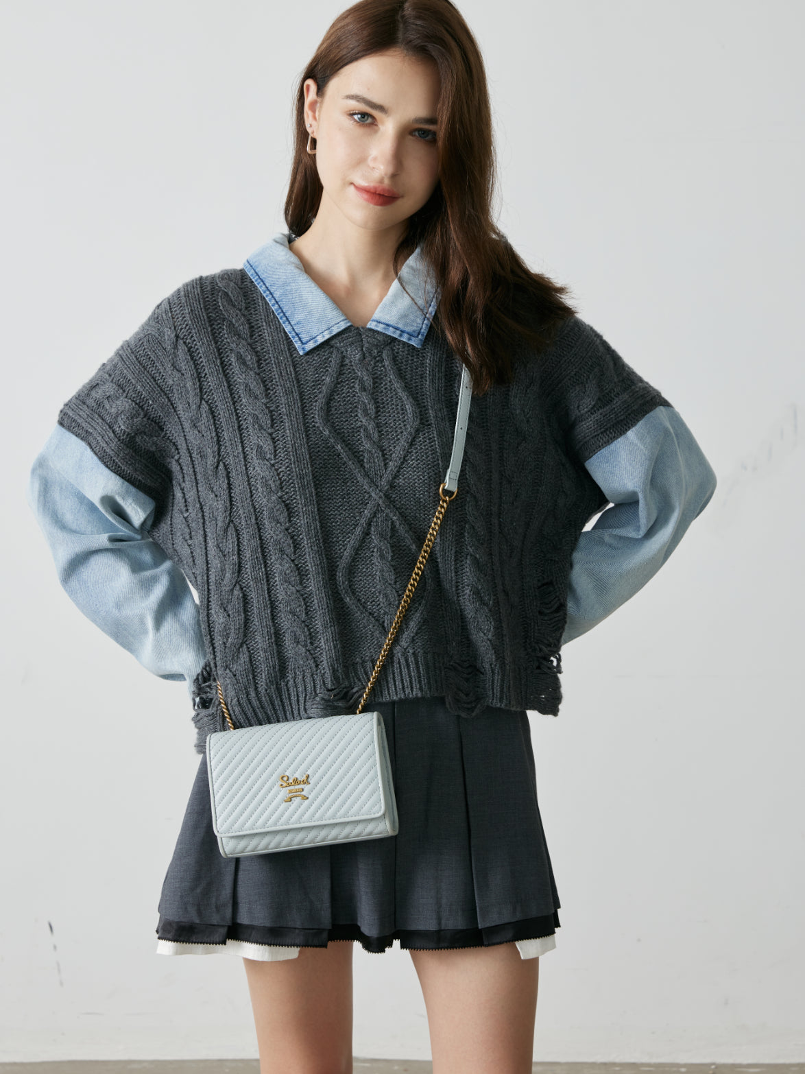 Diagonal quilted effect sheepskin, soft to the touch, flap design with magnetic closure; 1 zip pocket and 1 flat slip pocket inside, magnetic closure sliding pocket on the back Adjustable chain-applied leather shoulder strap , Tailless design, more convenient and smooth to use