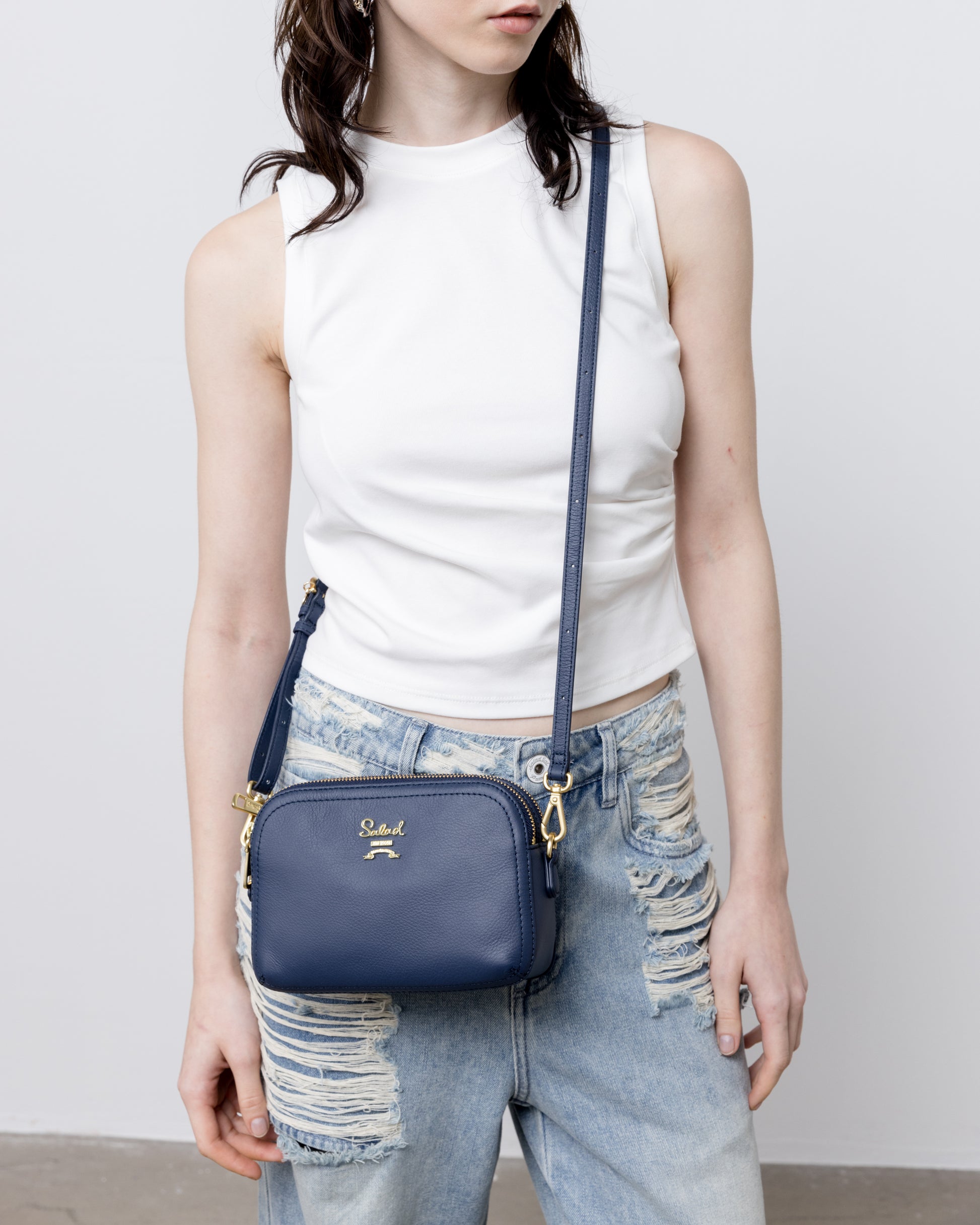 A reduced size version of the best-selling style, practical two zippered compartments and a central pocket to keep things organized; adjustable chain leather shoulder strap, tailless design, more convenient and smooth when using