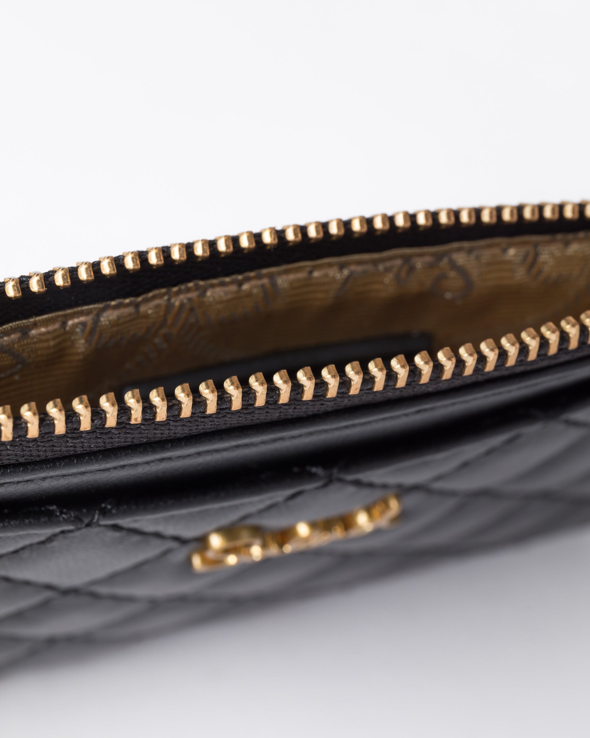 Zipper closure, one flat card slot on the front and four credit card compartments on the back. Main material: Selected natural smooth lambskin, which has a soft touch and smooth and delicate texture, and is extra light; Internal material: Grain Leather belt with natural texture, soft to the touch. 13(L)x 0.5(D)x 8.5(H) cm