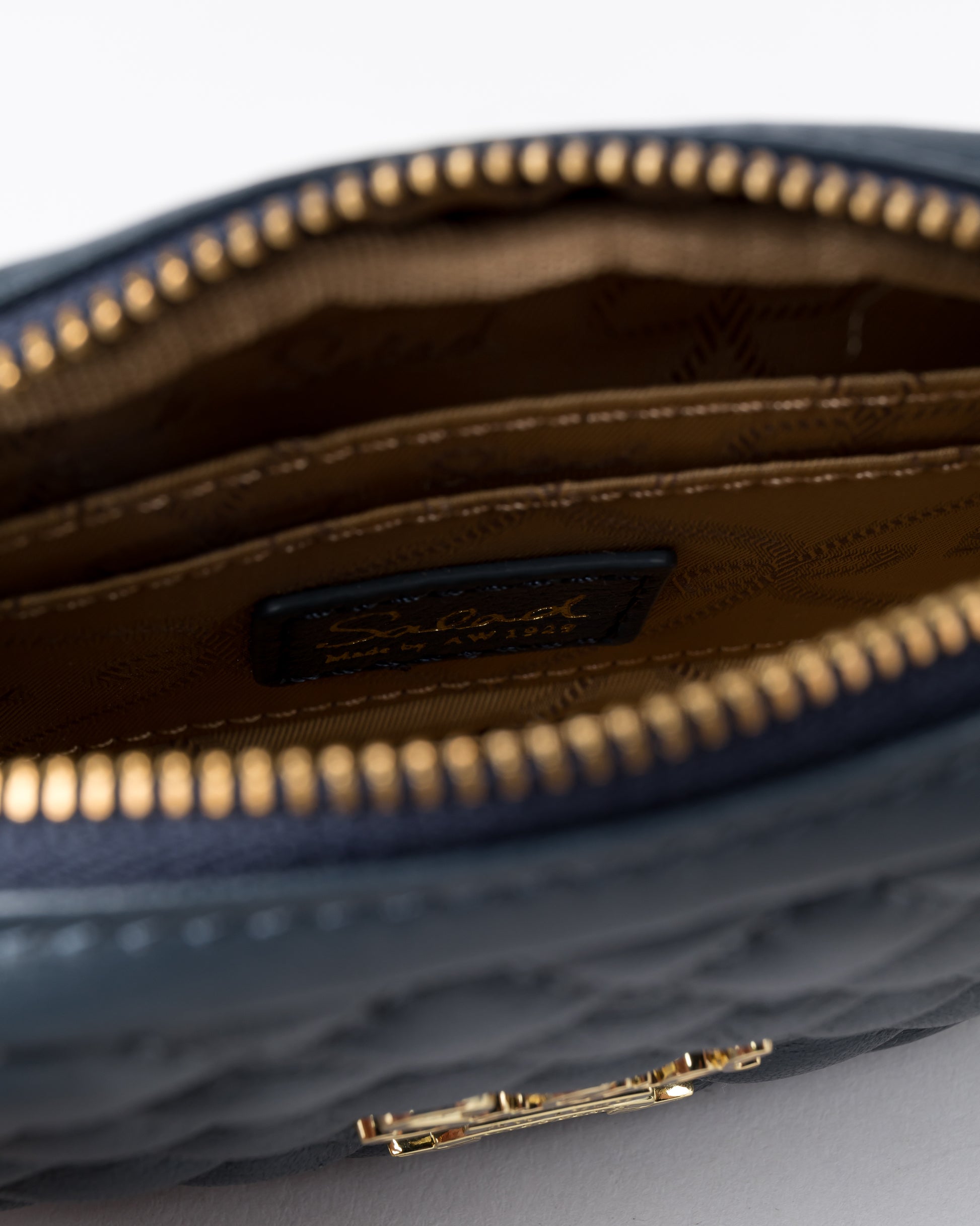 Main compartment with zip closure; detachable metal chain strap; rear leather patch allows metal chain or belt to pass through, can be used as a fanny pack, adjustable in three lengths.