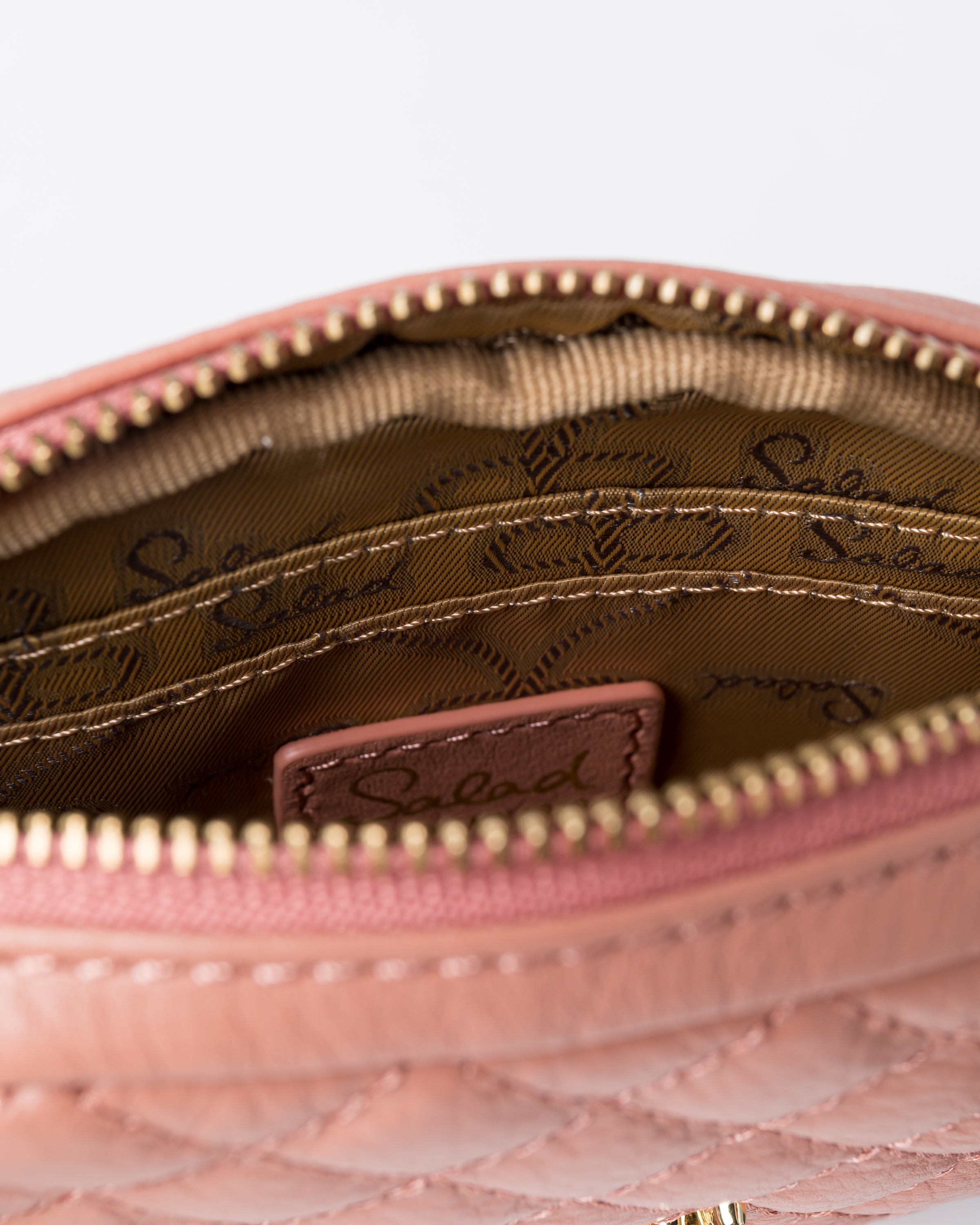 Main compartment with zip closure; detachable metal chain strap; rear leather patch allows metal chain or belt to pass through, can be used as a fanny pack, adjustable in three lengths.