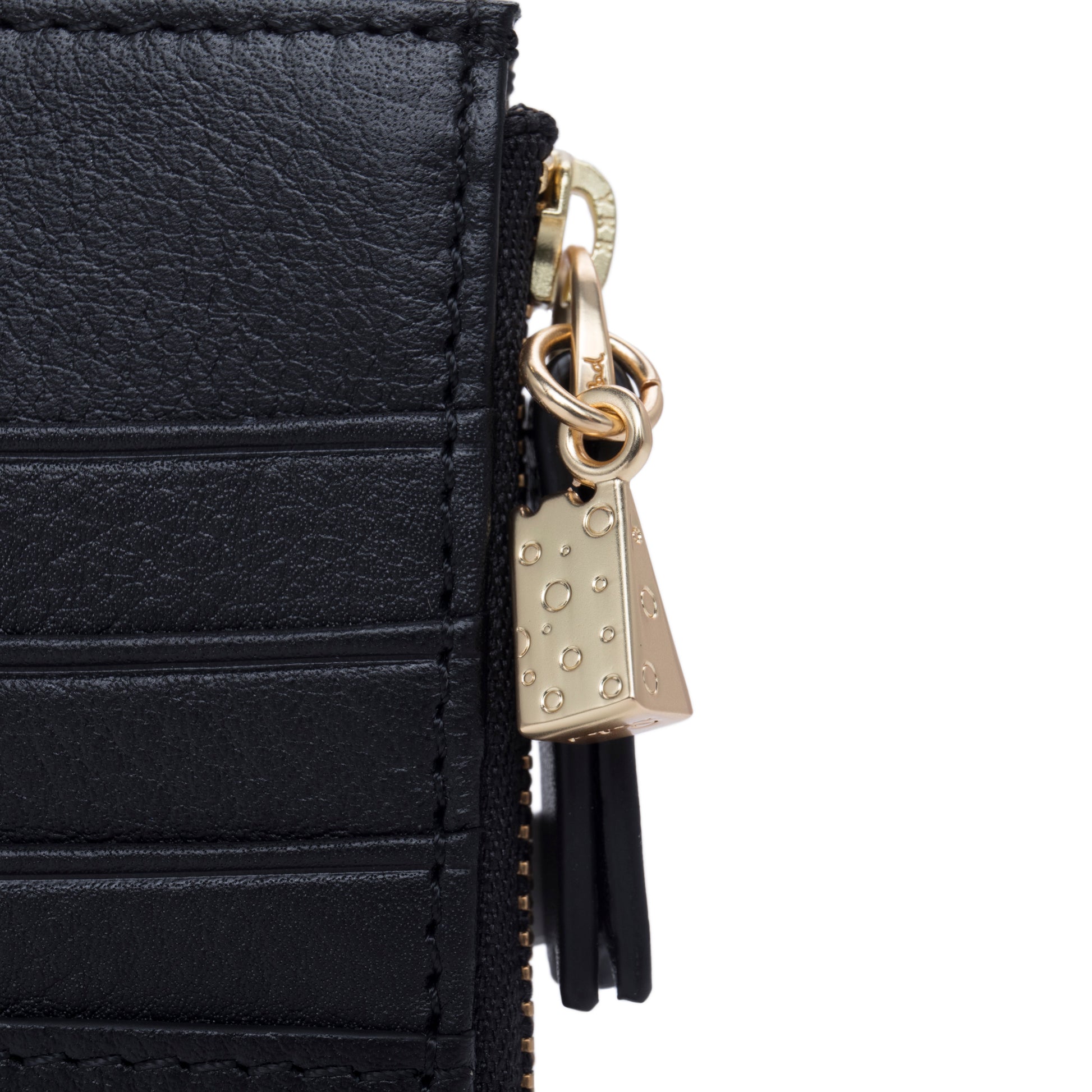 Top zipper closure; Four credit card slots/Grained cowhide leather strap with natural texture and soft feel