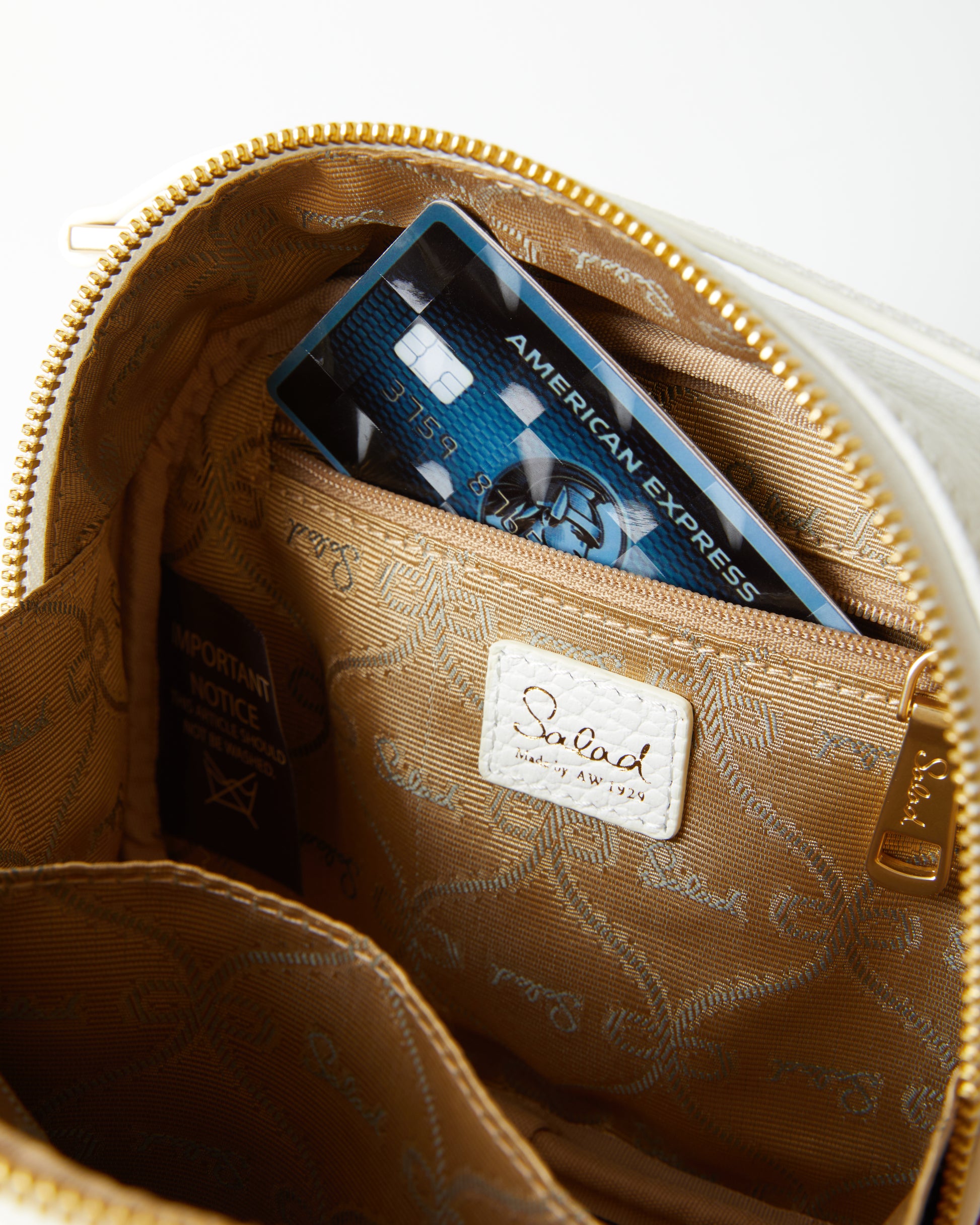 • Bag has zippered inner pocket and inner slip pocket