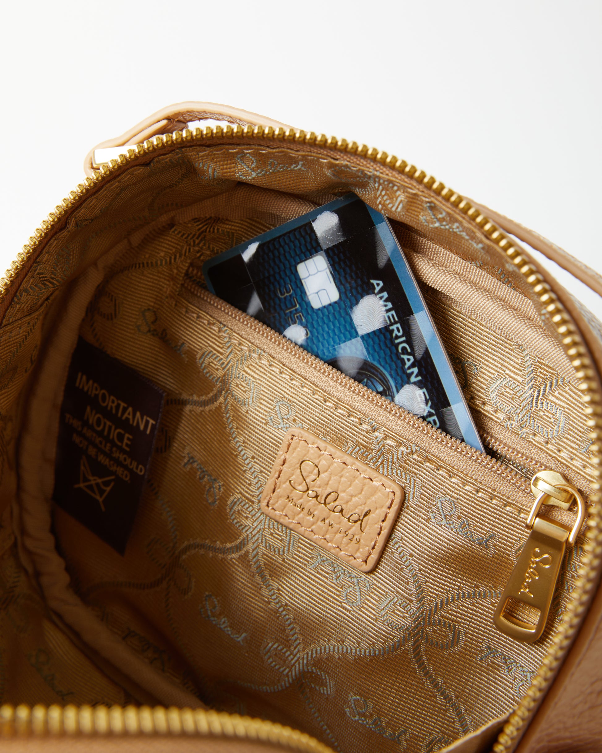 • Bag has zippered inner pocket and inner slip pocket