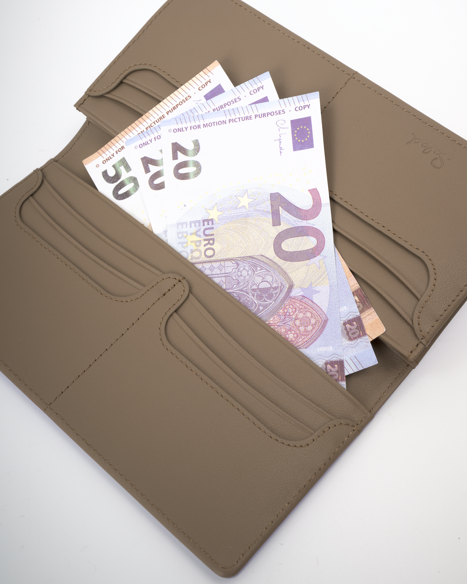 • The accordion pocket has two banknote compartments.