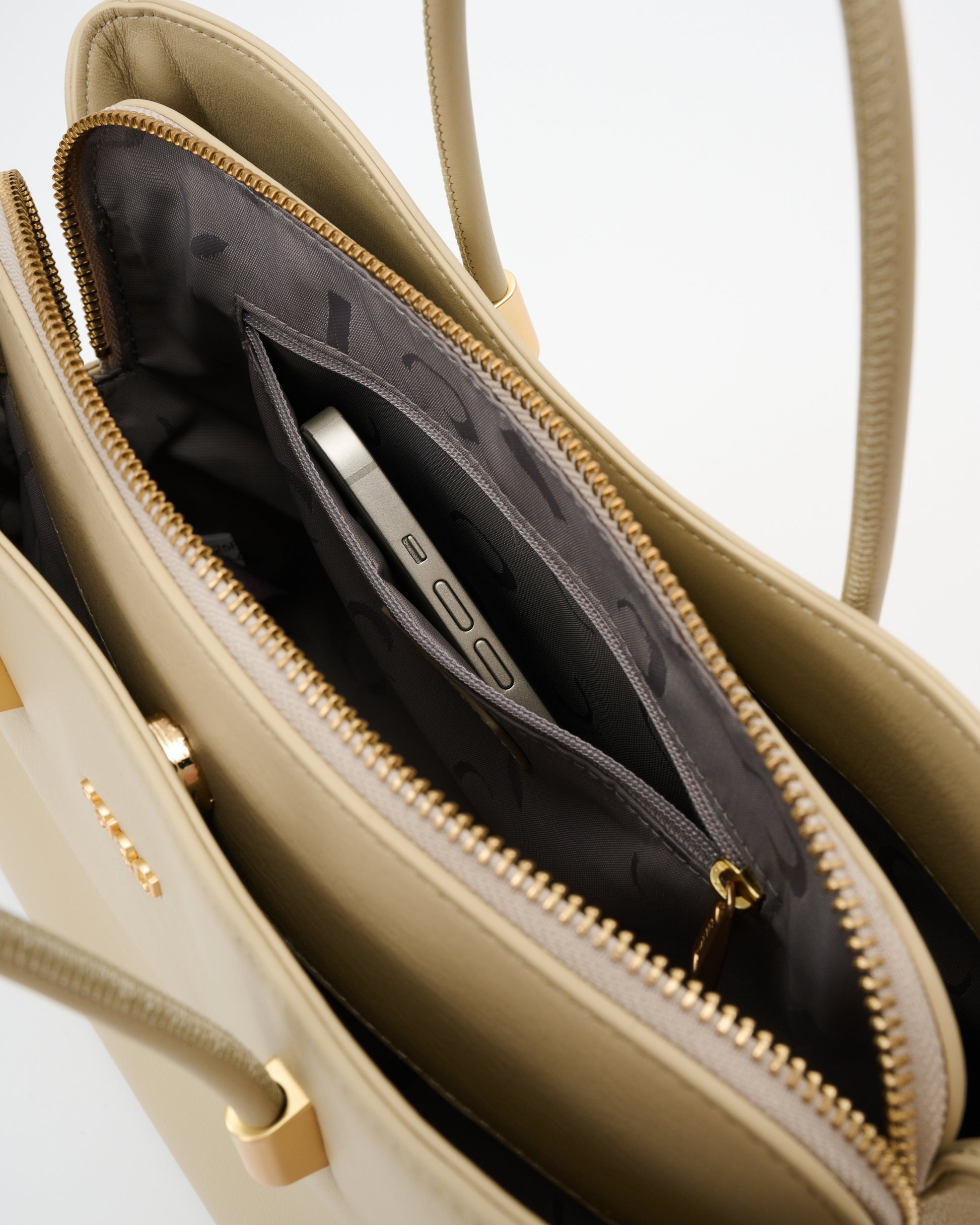 • Adjustable leather shoulder strap, also detachable for flexible use