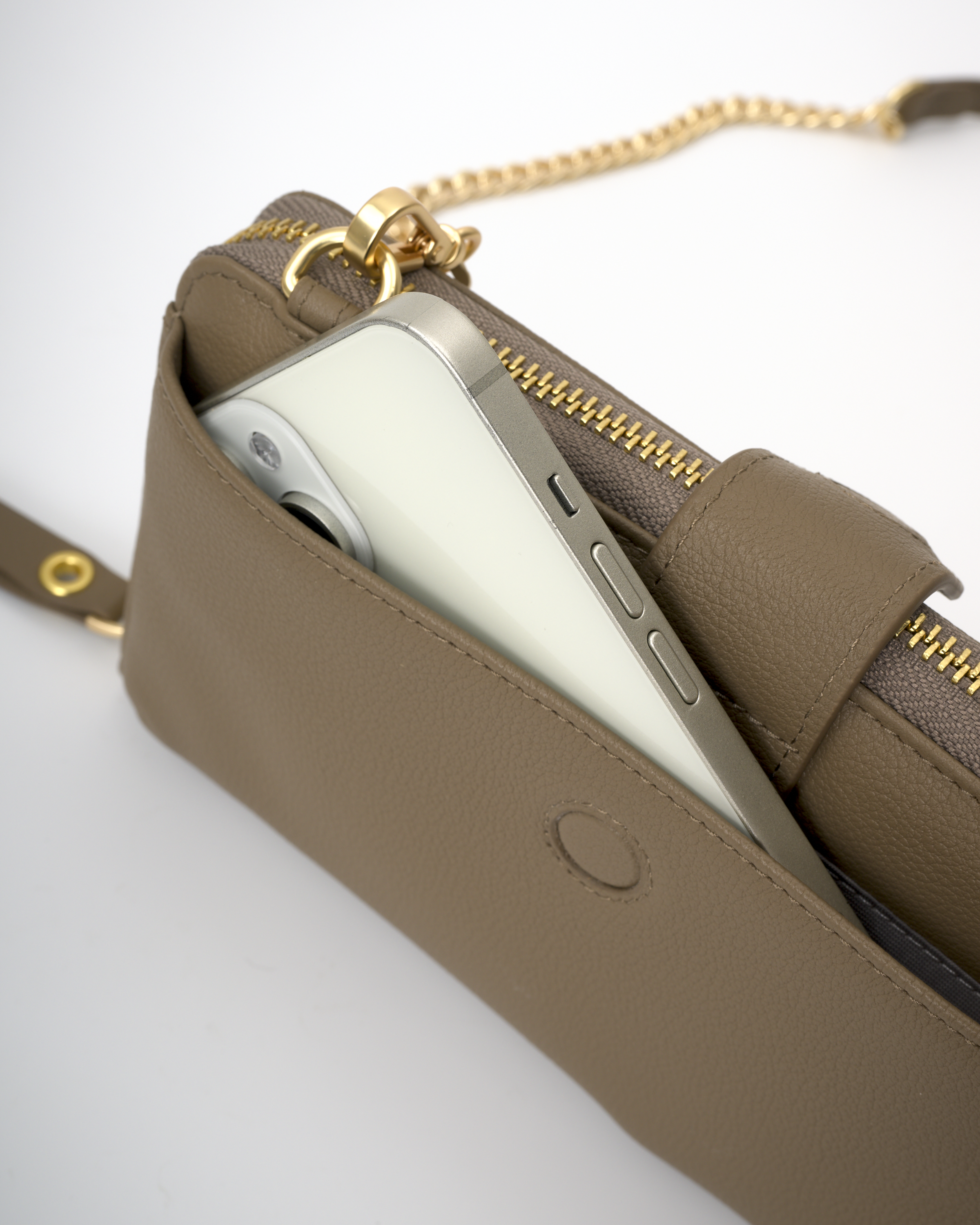 • Comes with a chain-embellished leather shoulder strap, which can also be removed and reused.