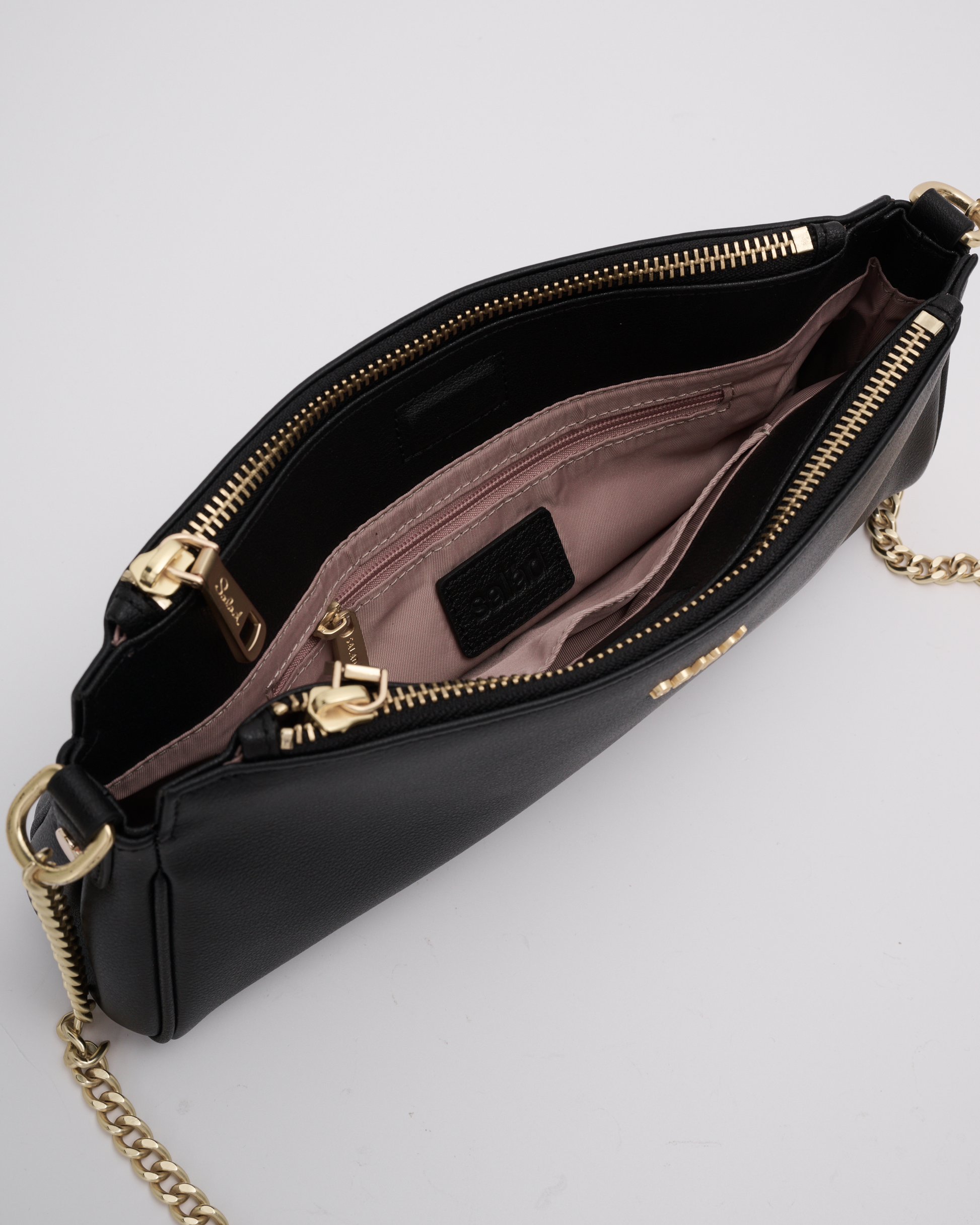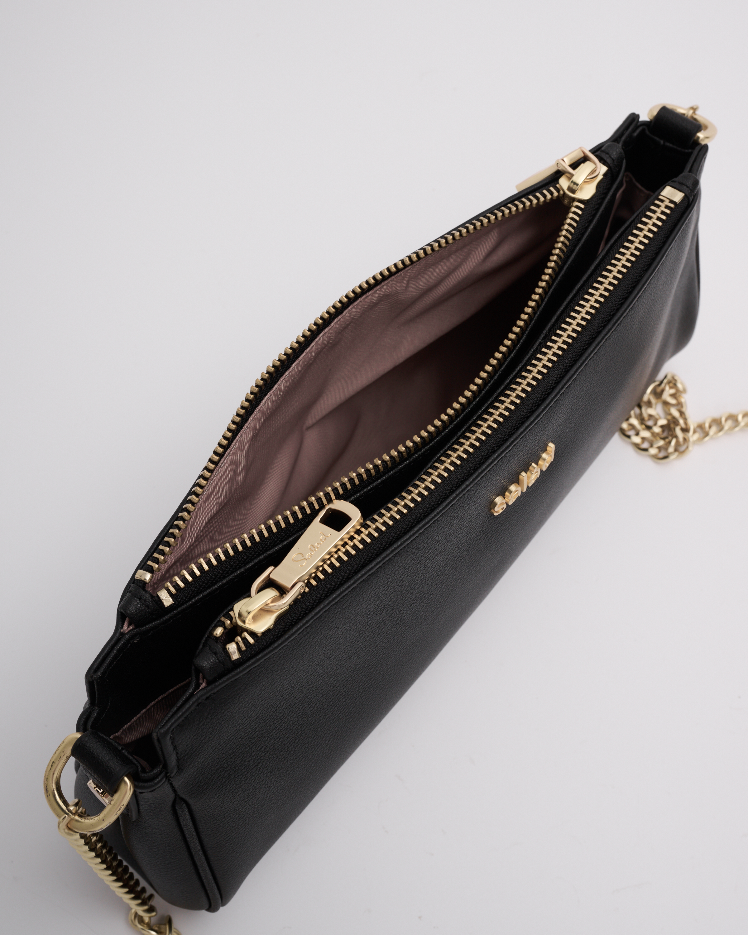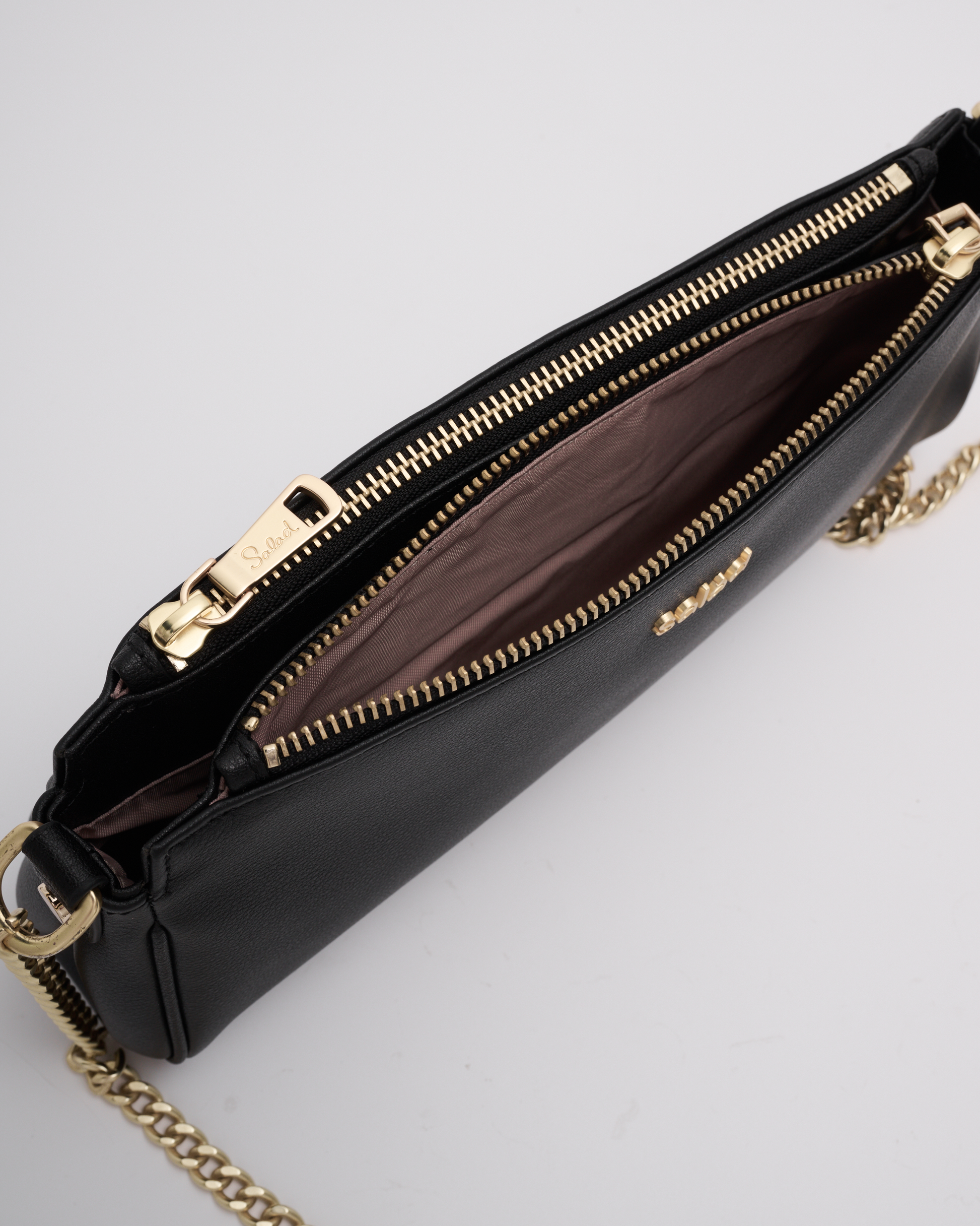 • Features a chain-embellished leather shoulder strap: adding a touch of style and comfort.