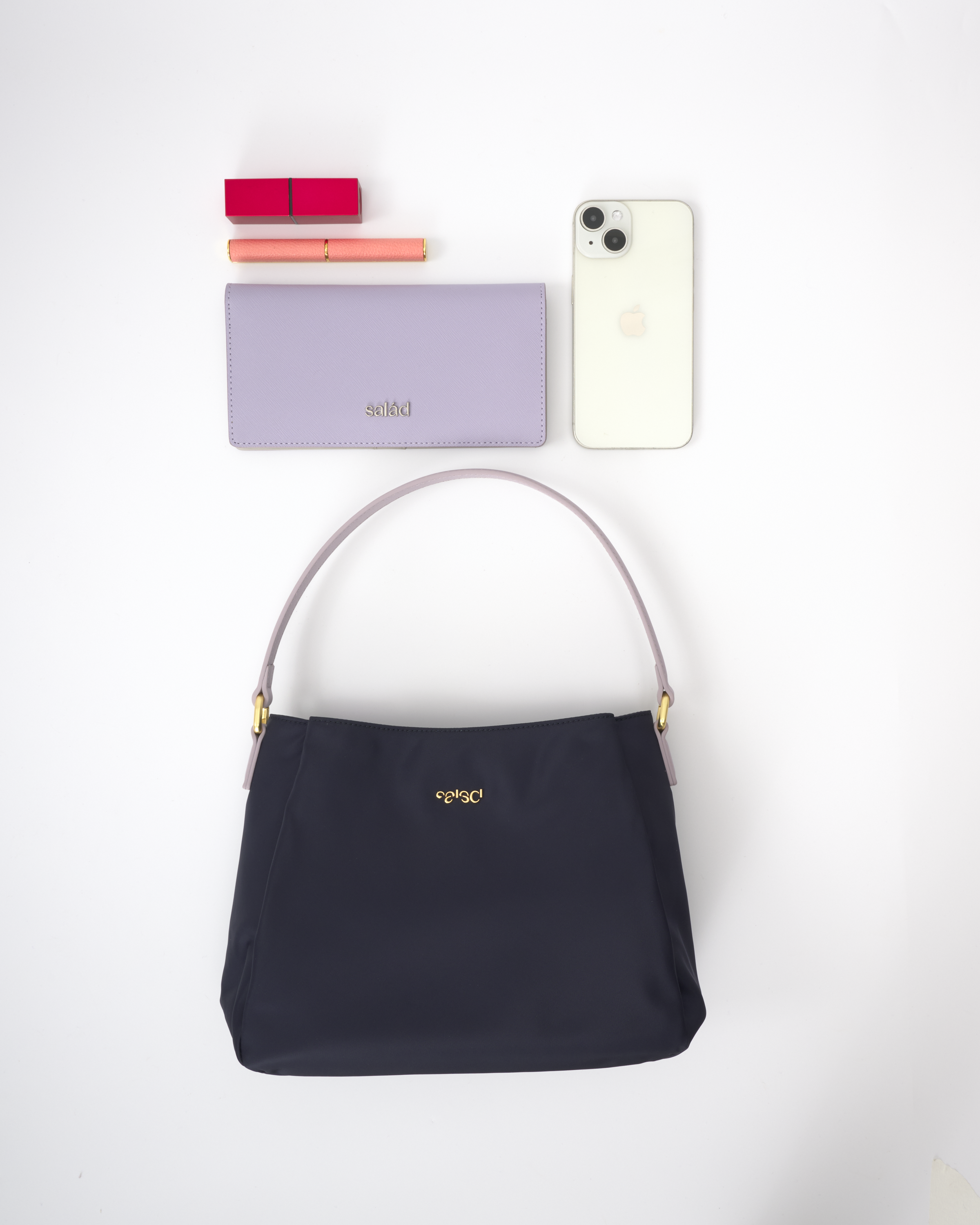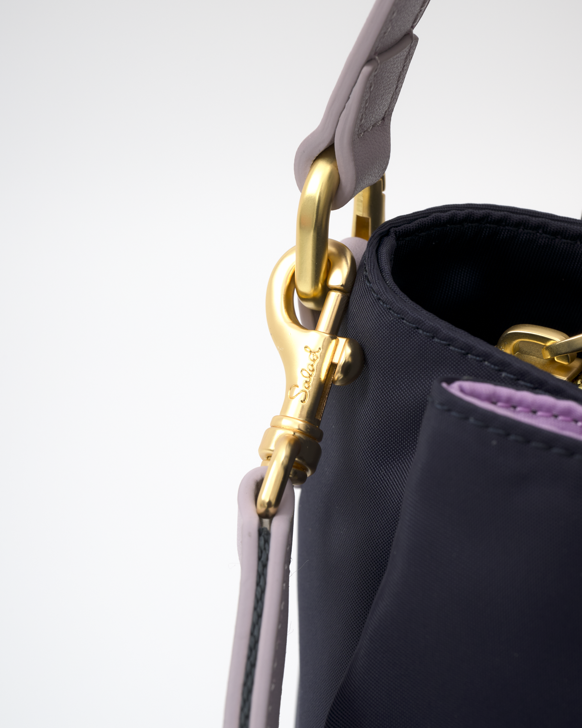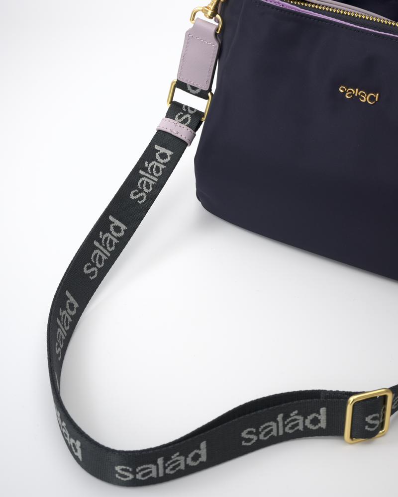 • Comes with a top handle and an adjustable long shoulder strap. The webbing is embroidered with the Salad logo and is also detachable.