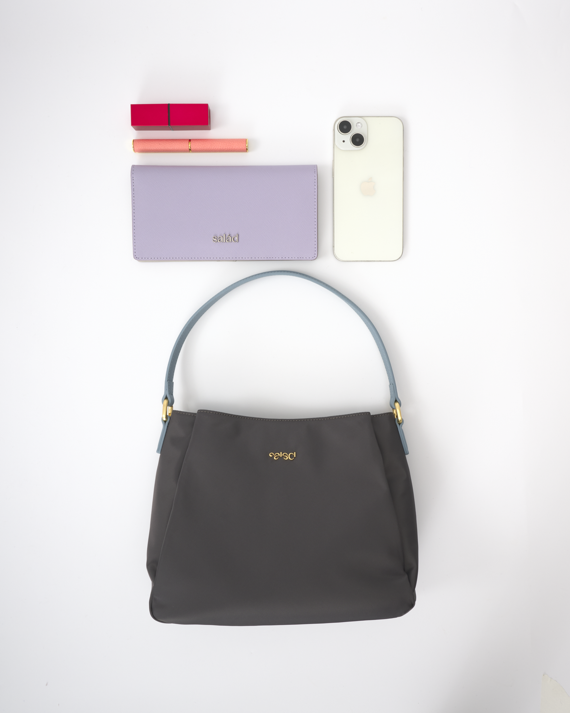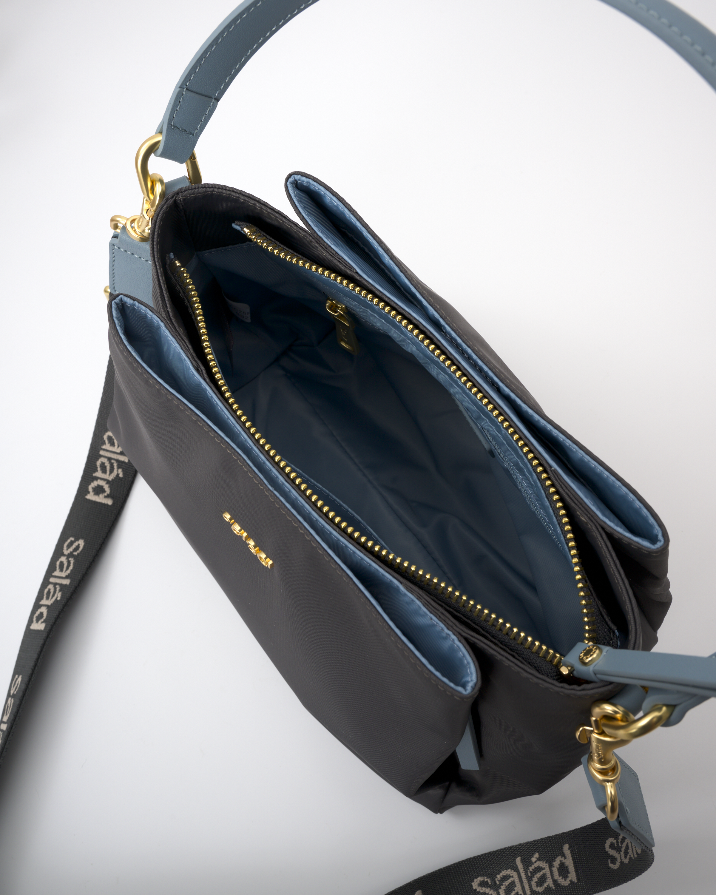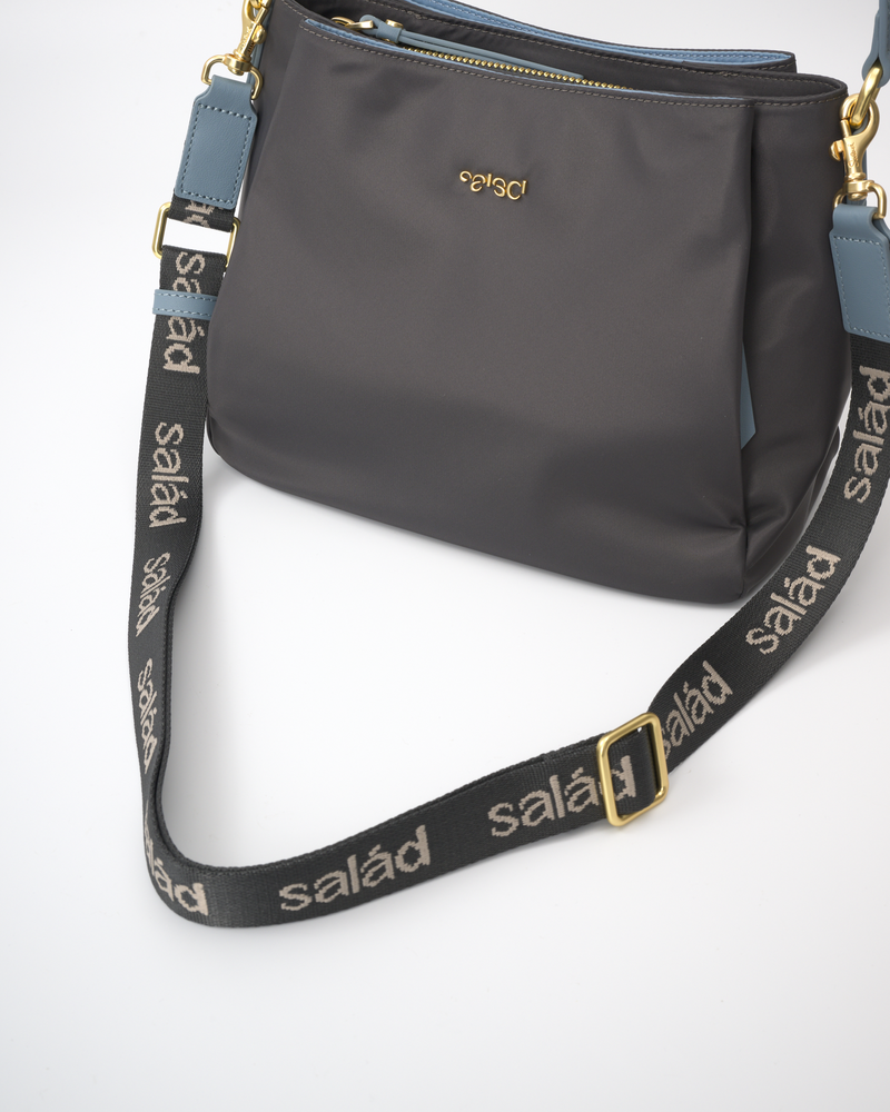• Comes with a top handle and an adjustable long shoulder strap. The webbing is embroidered with the Salad logo and is also detachable.