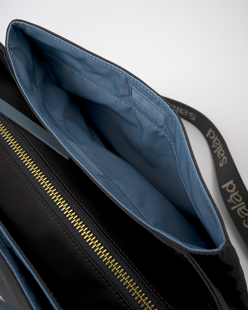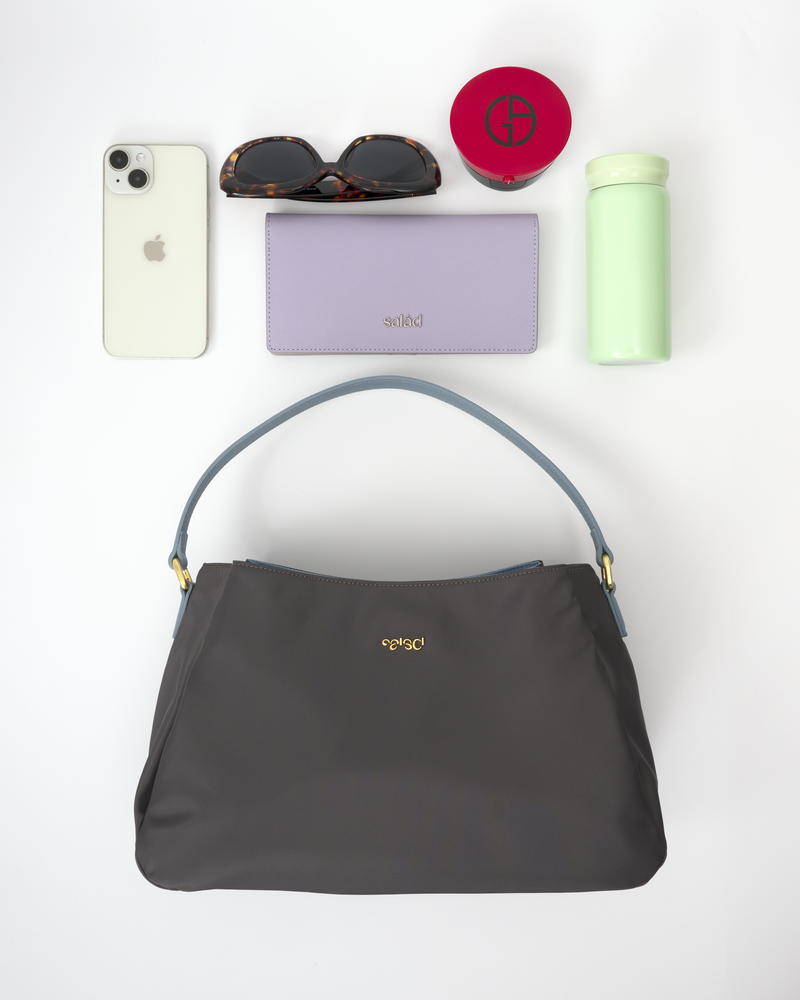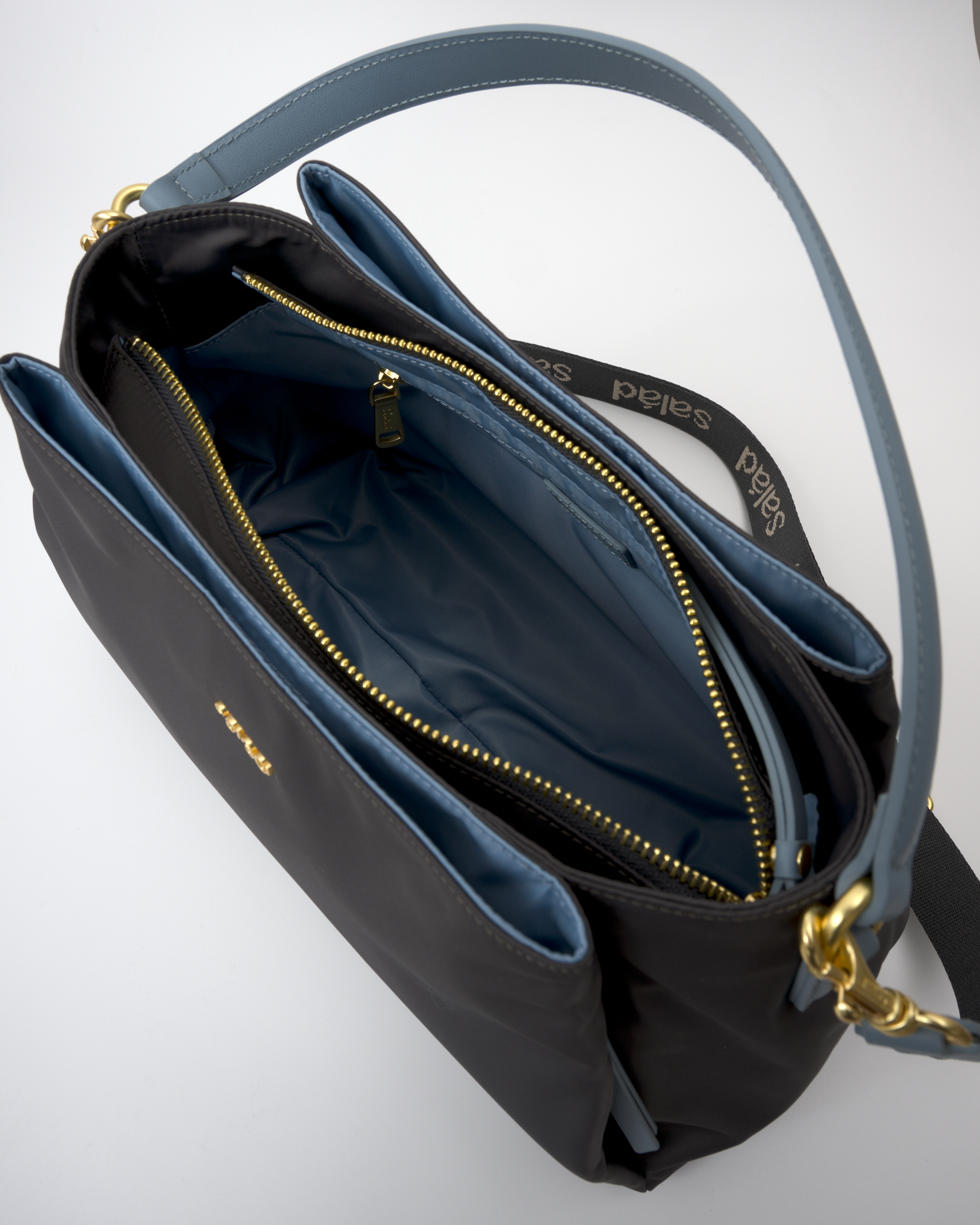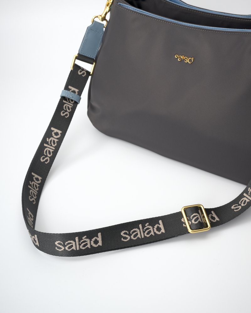 • Comes with a top handle and an adjustable long shoulder strap. The webbing is embroidered with the Salad logo and is also detachable.