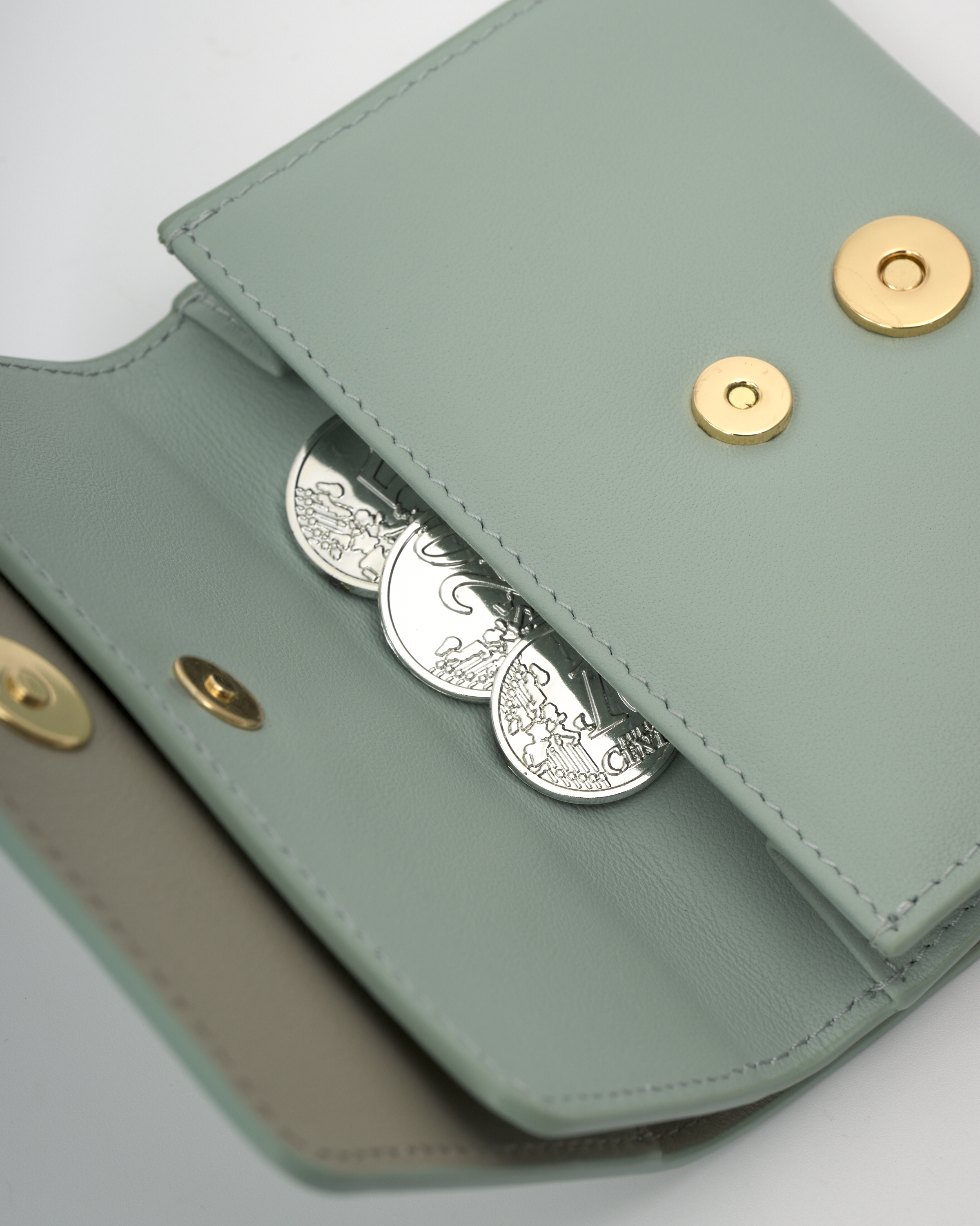 • It contains a small flap pocket with a magnetic closure, which can be used to store coins.