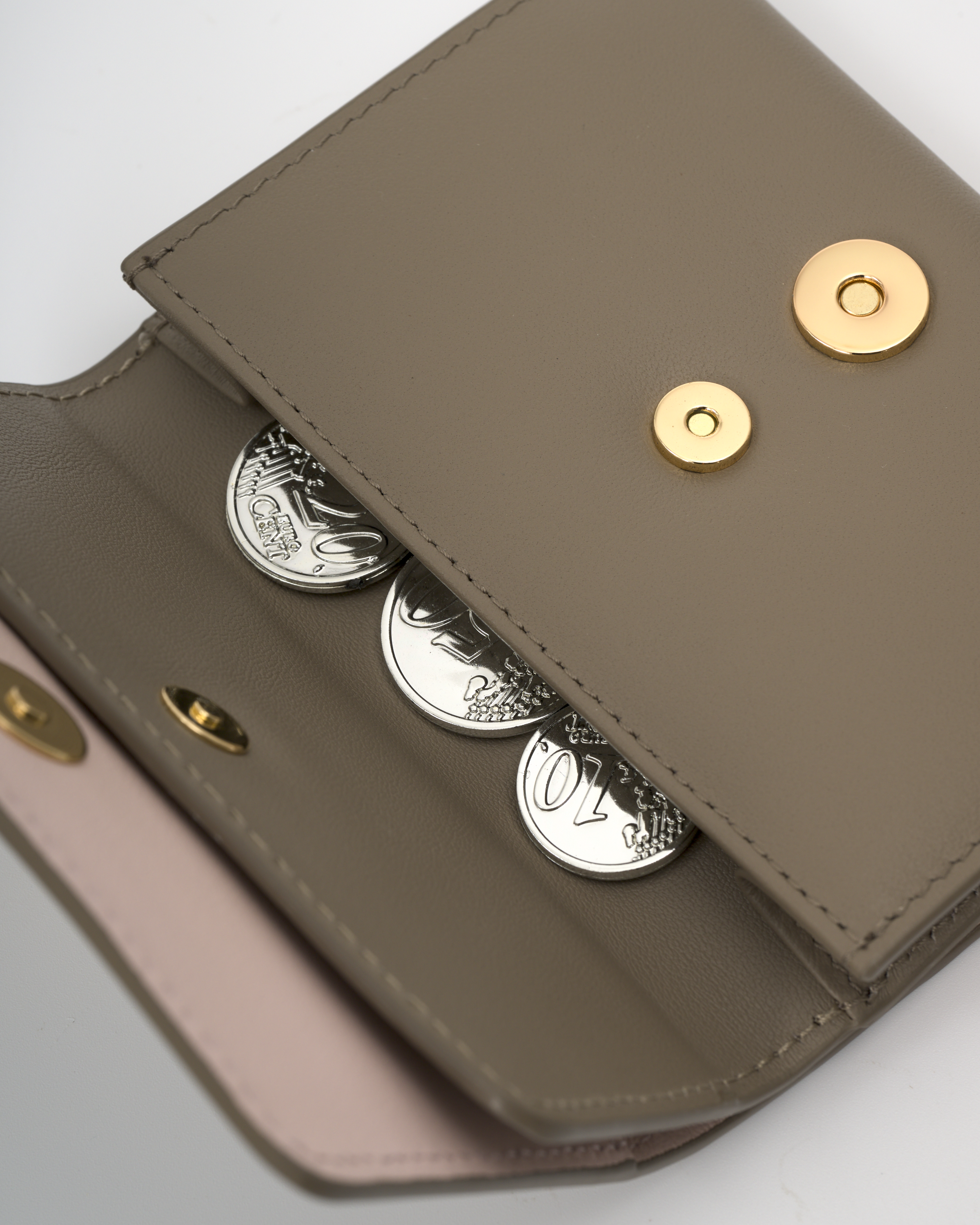 • It contains a small flap pocket with a magnetic closure, which can be used to store coins.