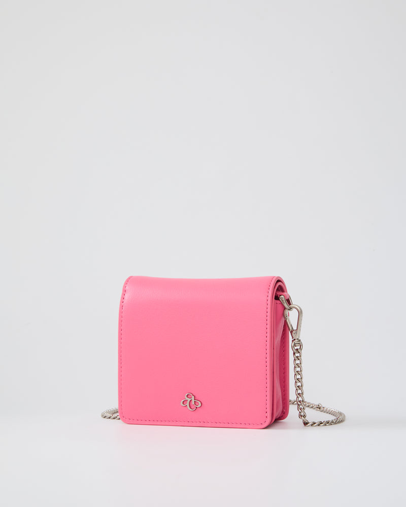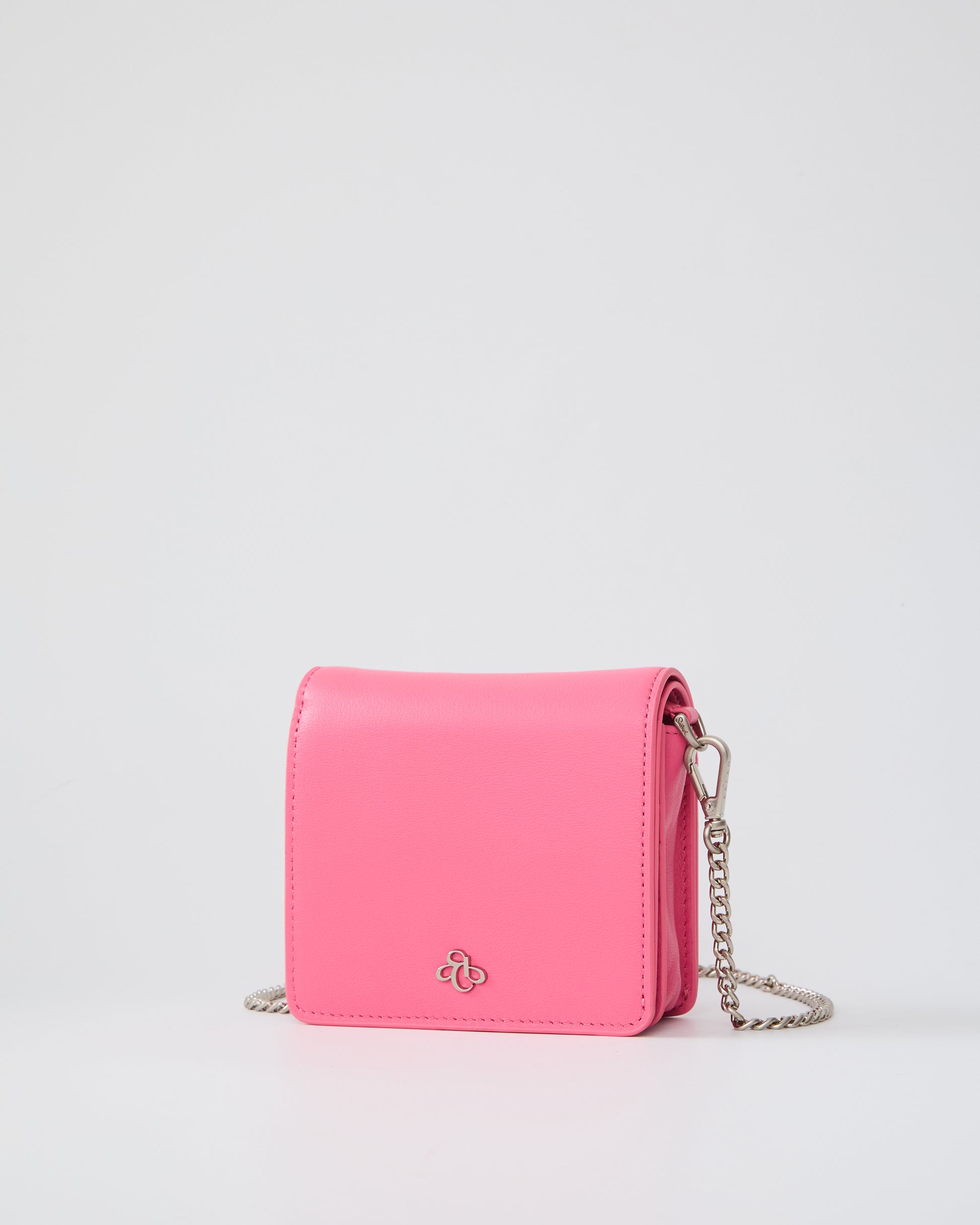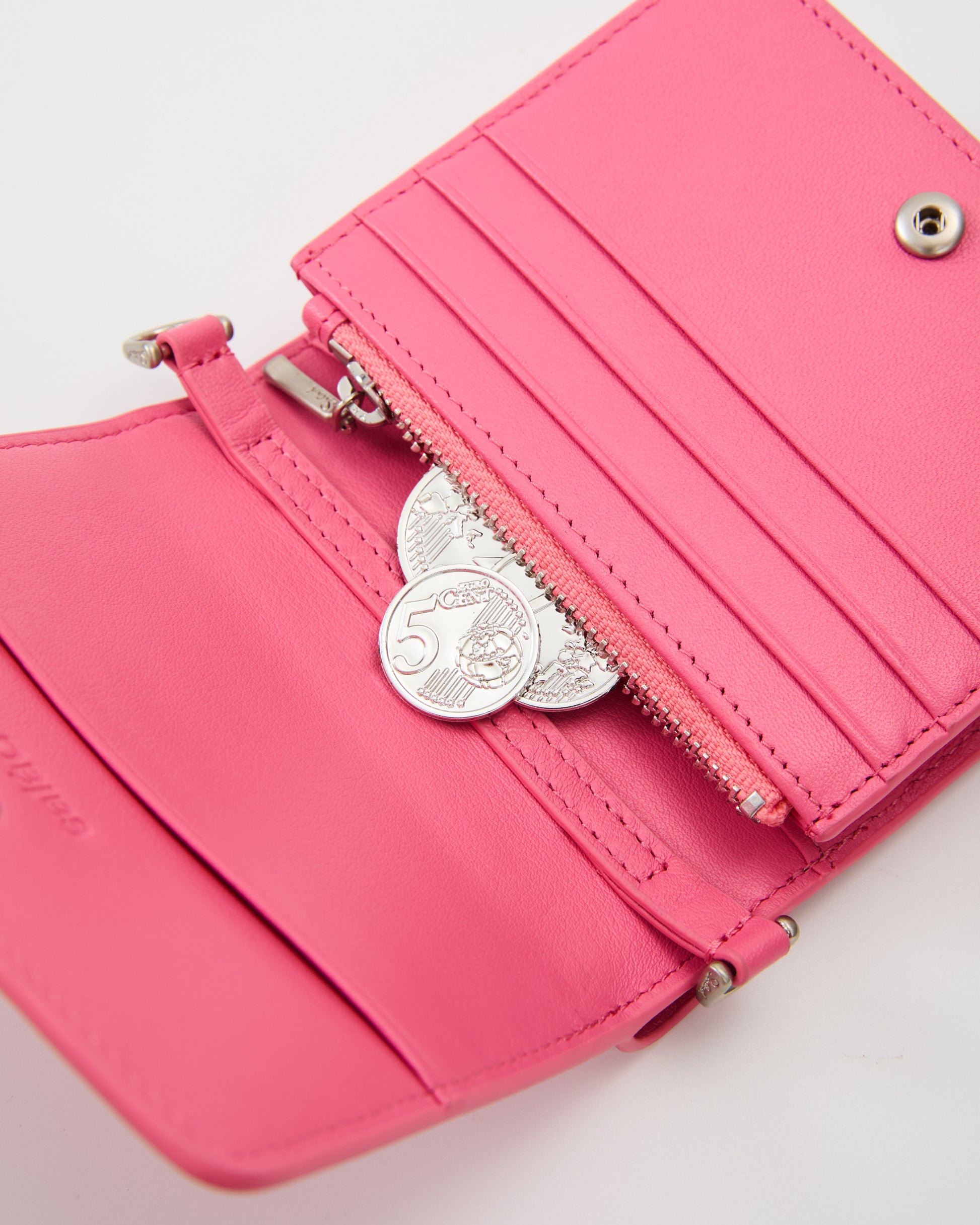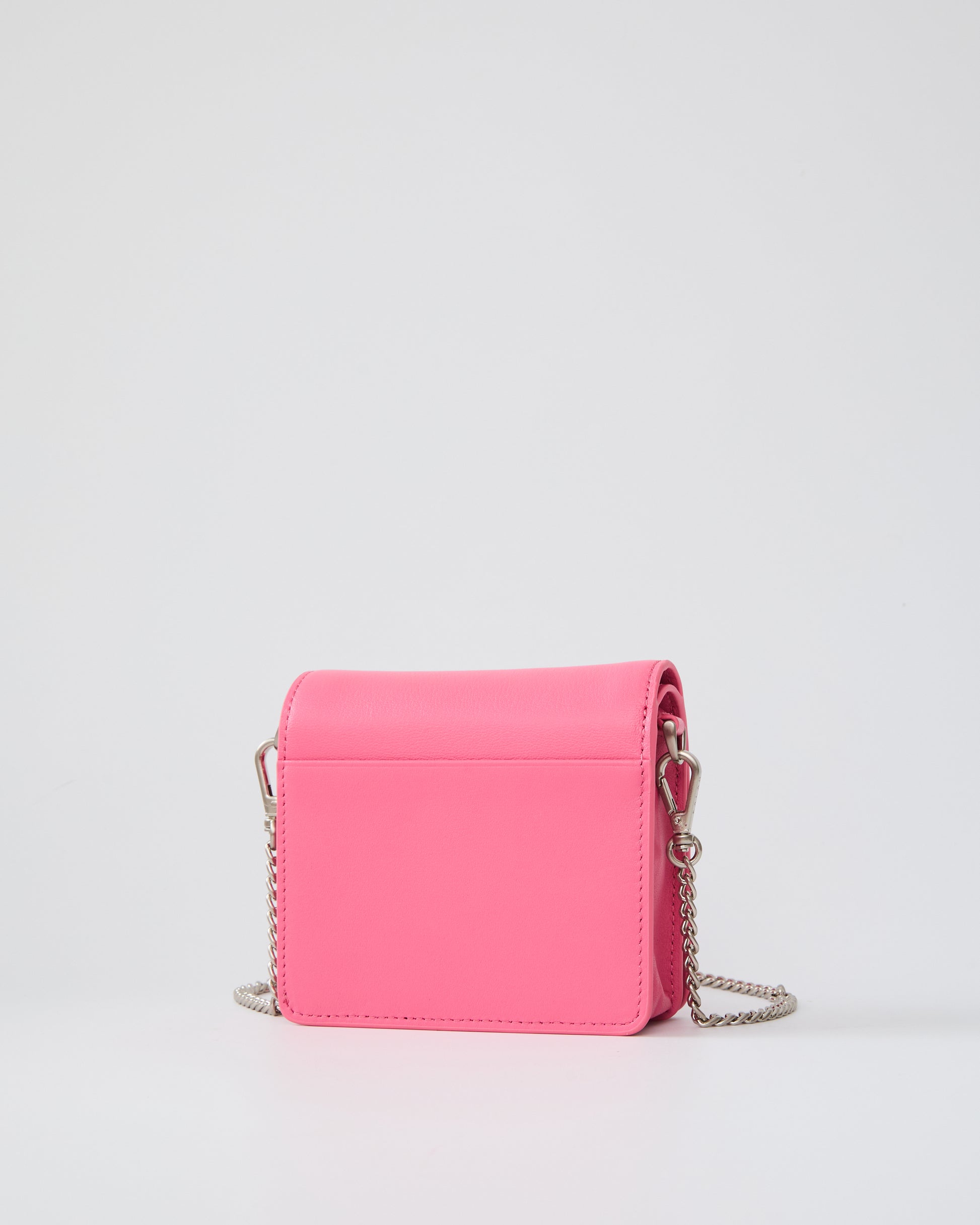•Slip pocket and bill compartment on the back and right side respectively •Interior contains 3 credit card holders and coin zipper pocket •Active metal chain can be removed and used as an independent wallet •Sophisticated structure with small brand logo, showing low-key elegance