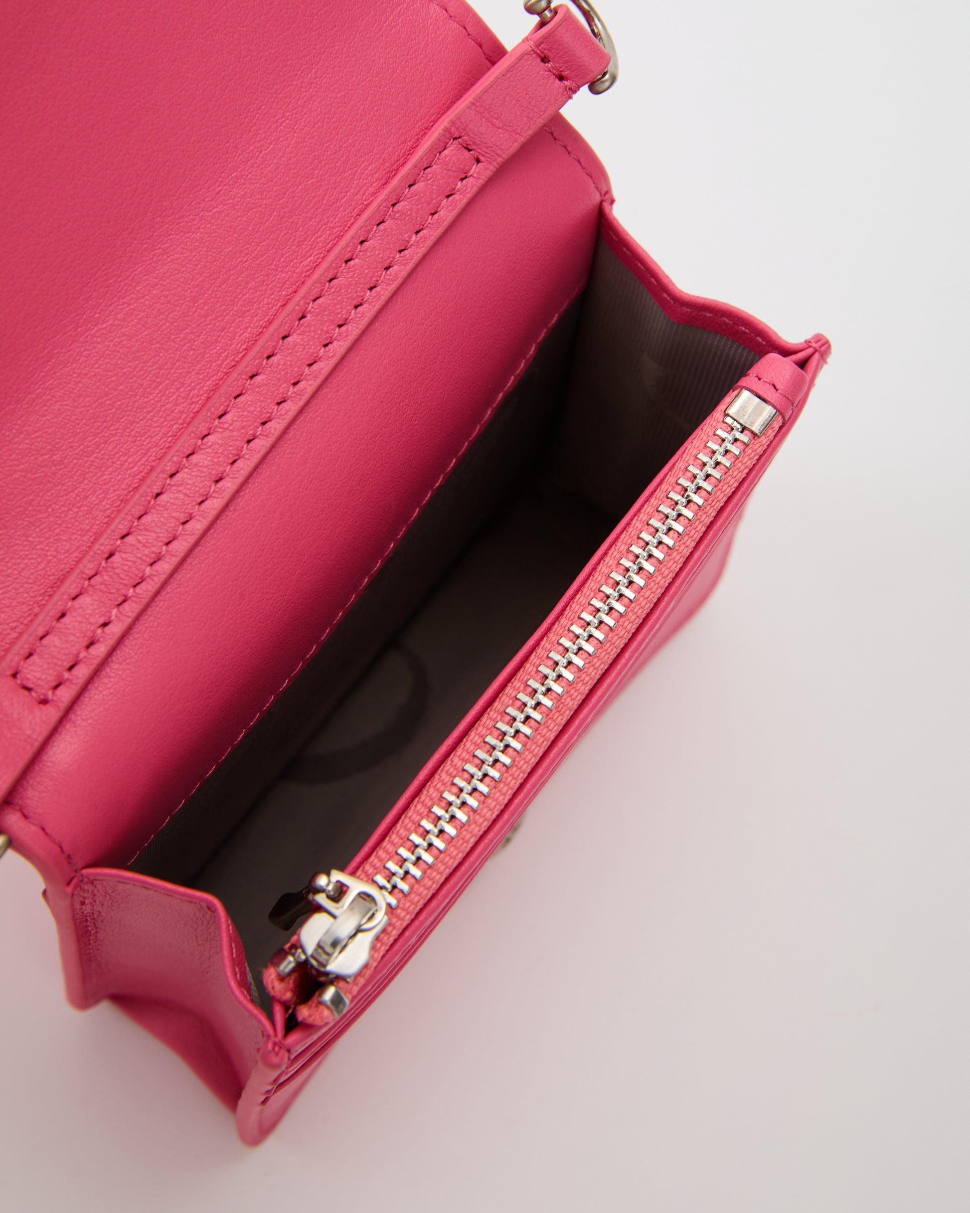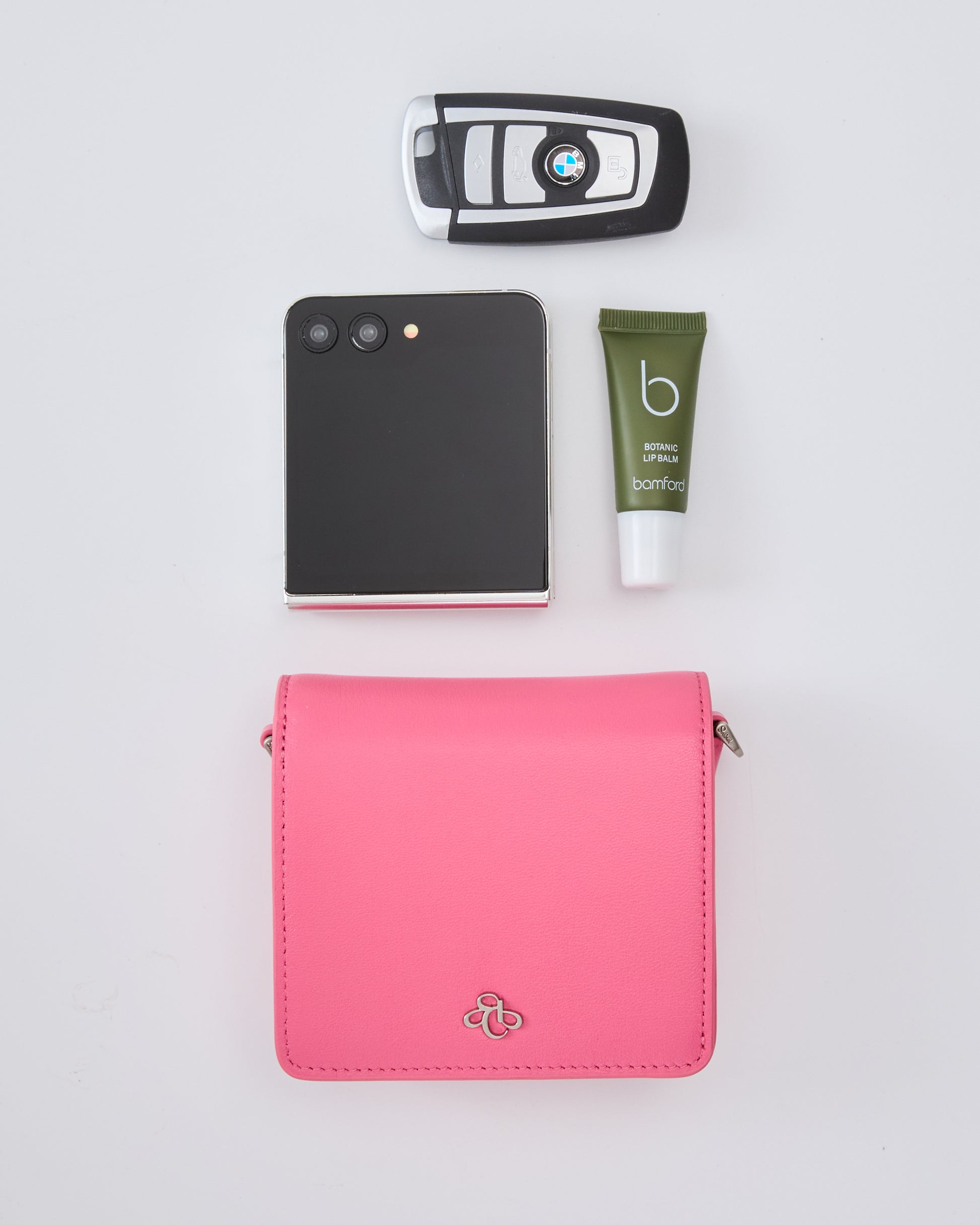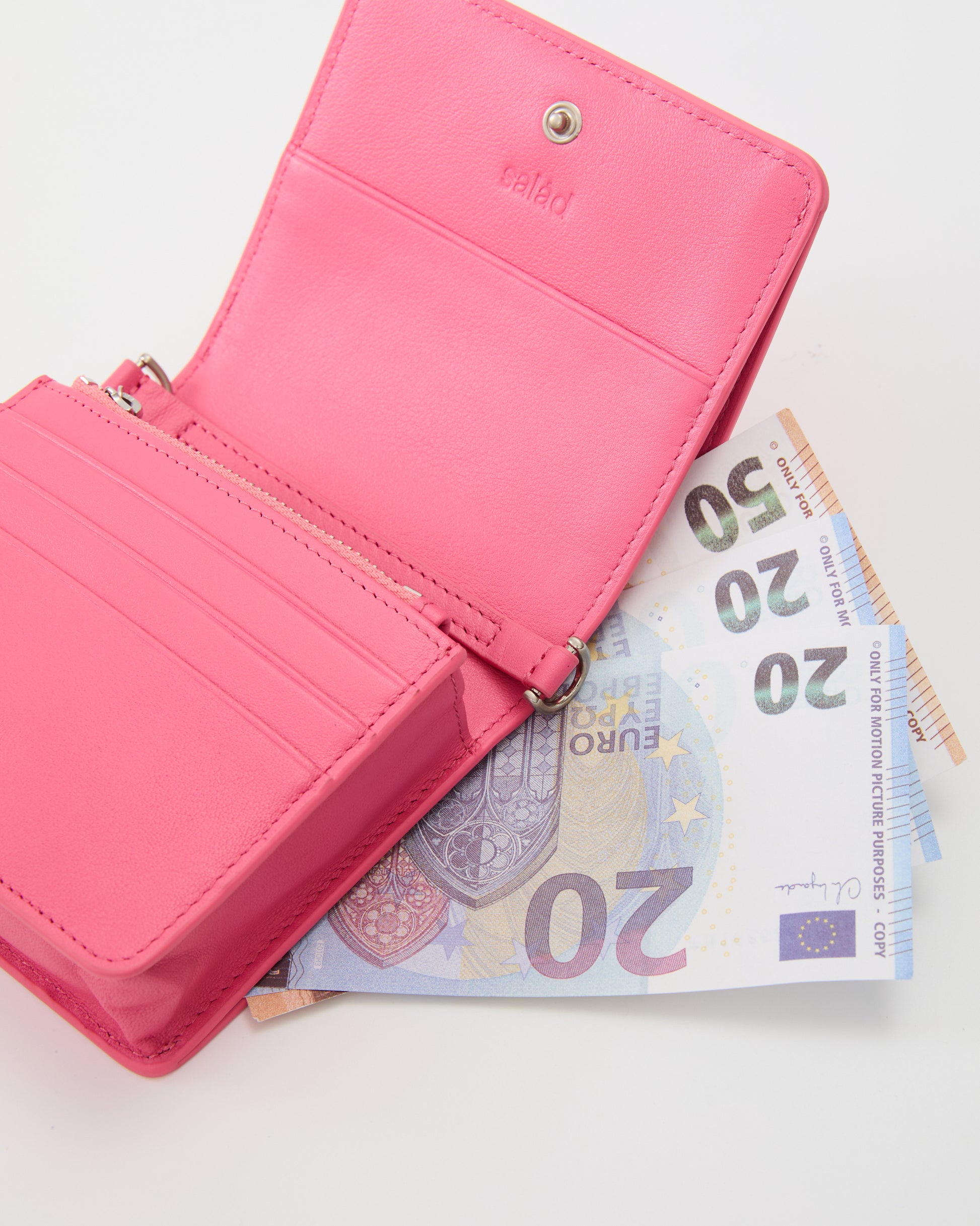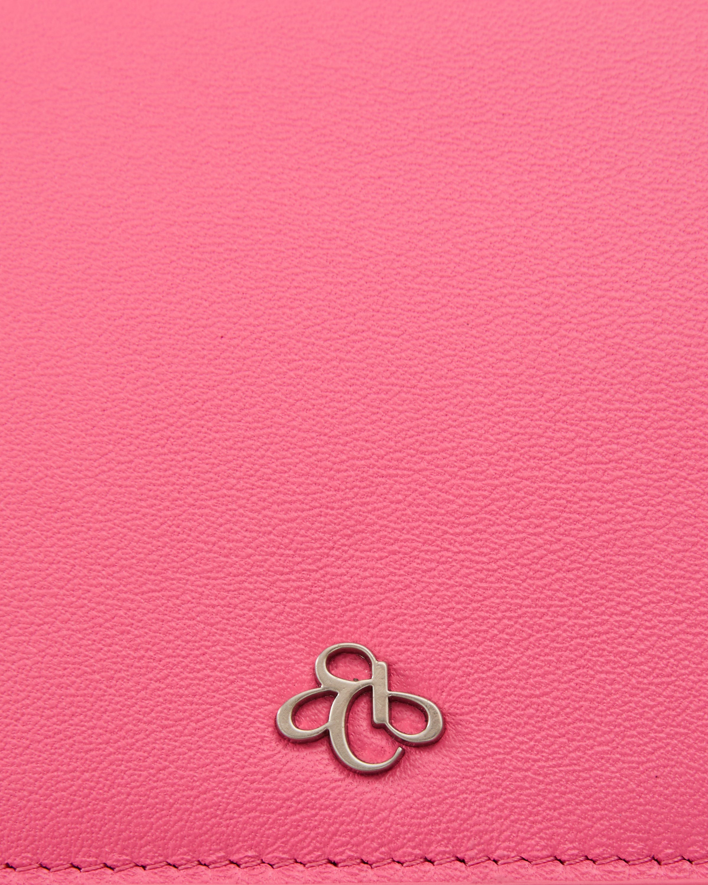 •Slip pocket and bill compartment on the back and right side respectively •Interior contains 3 credit card holders and coin zipper pocket •Active metal chain can be removed and used as an independent wallet •Sophisticated structure with small brand logo, showing low-key elegance