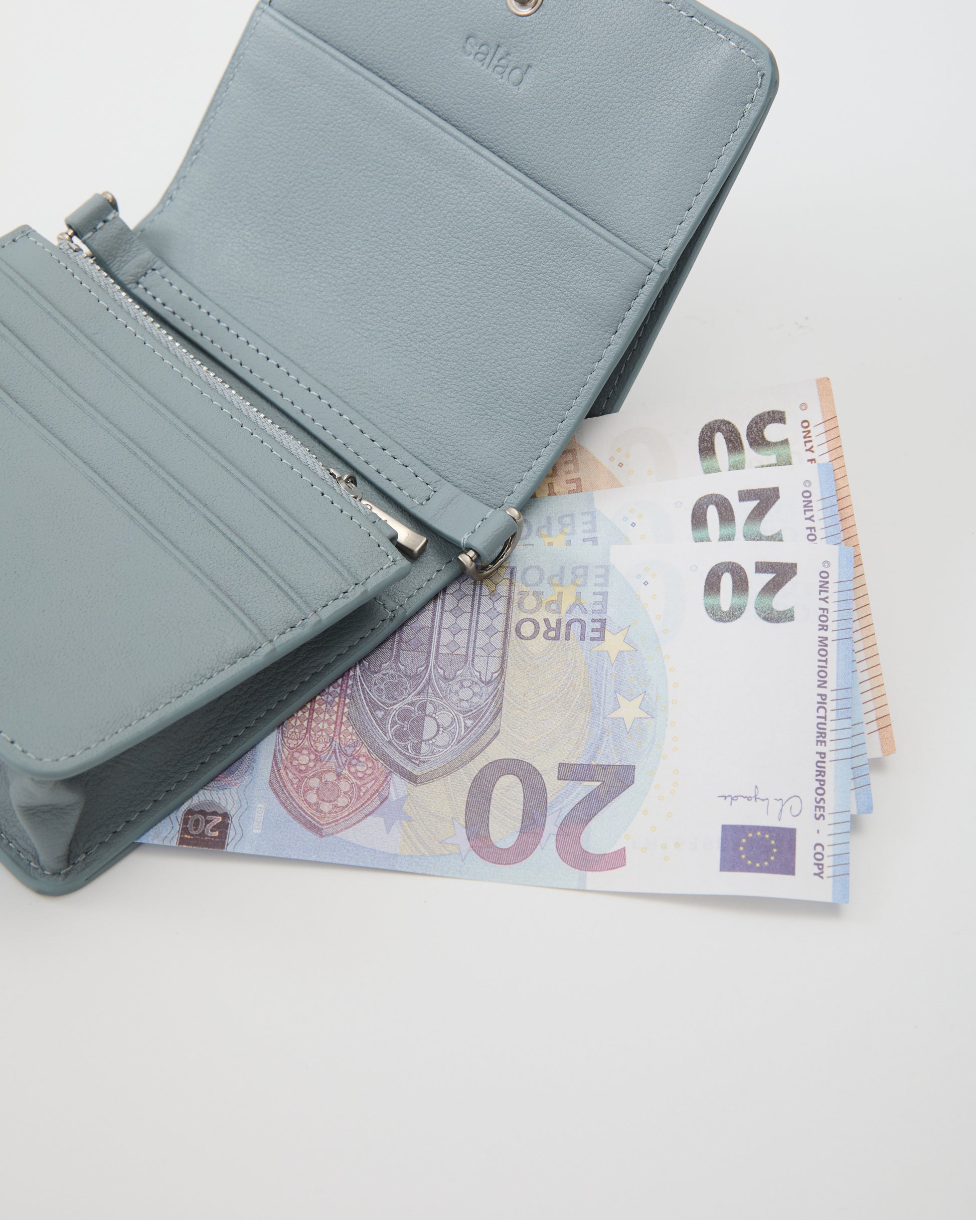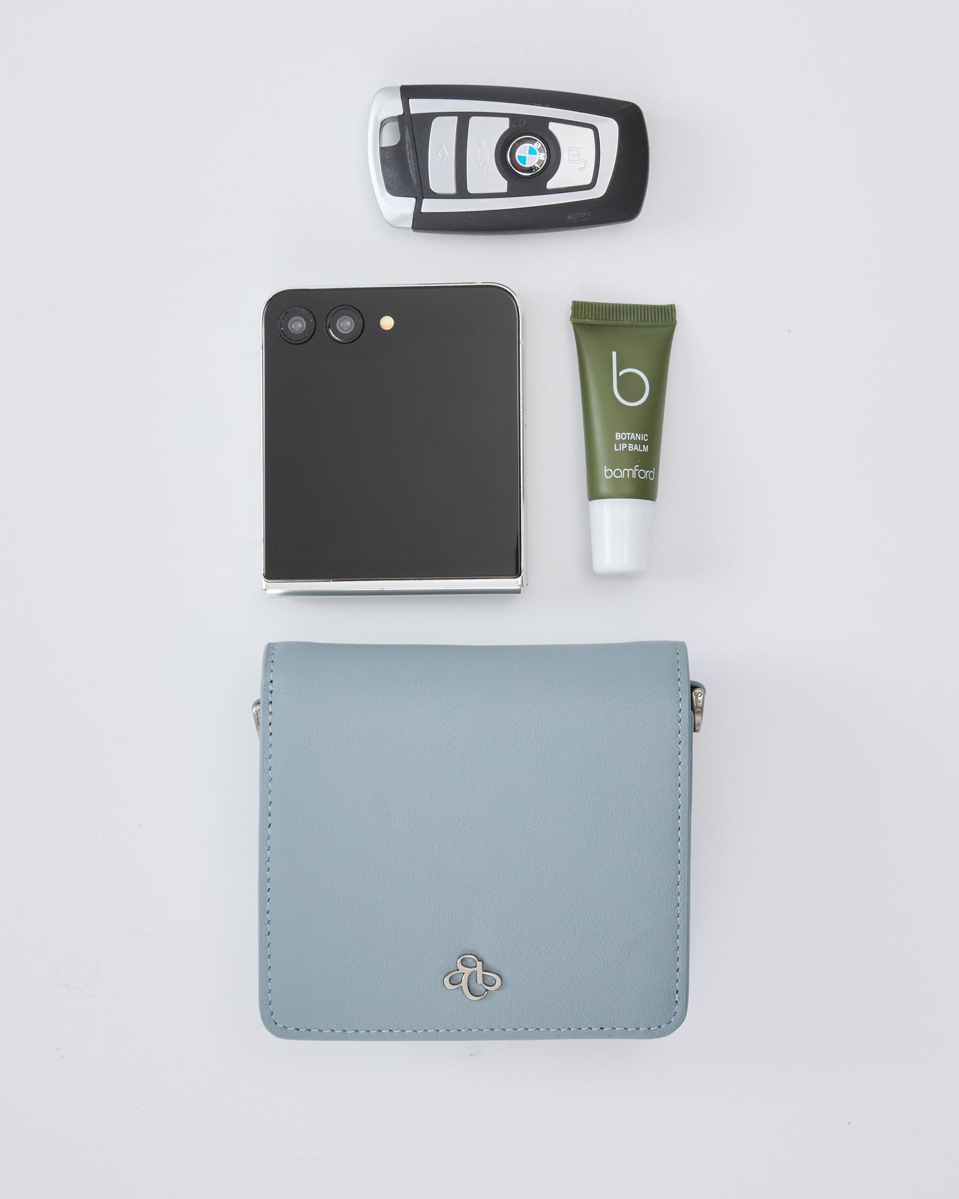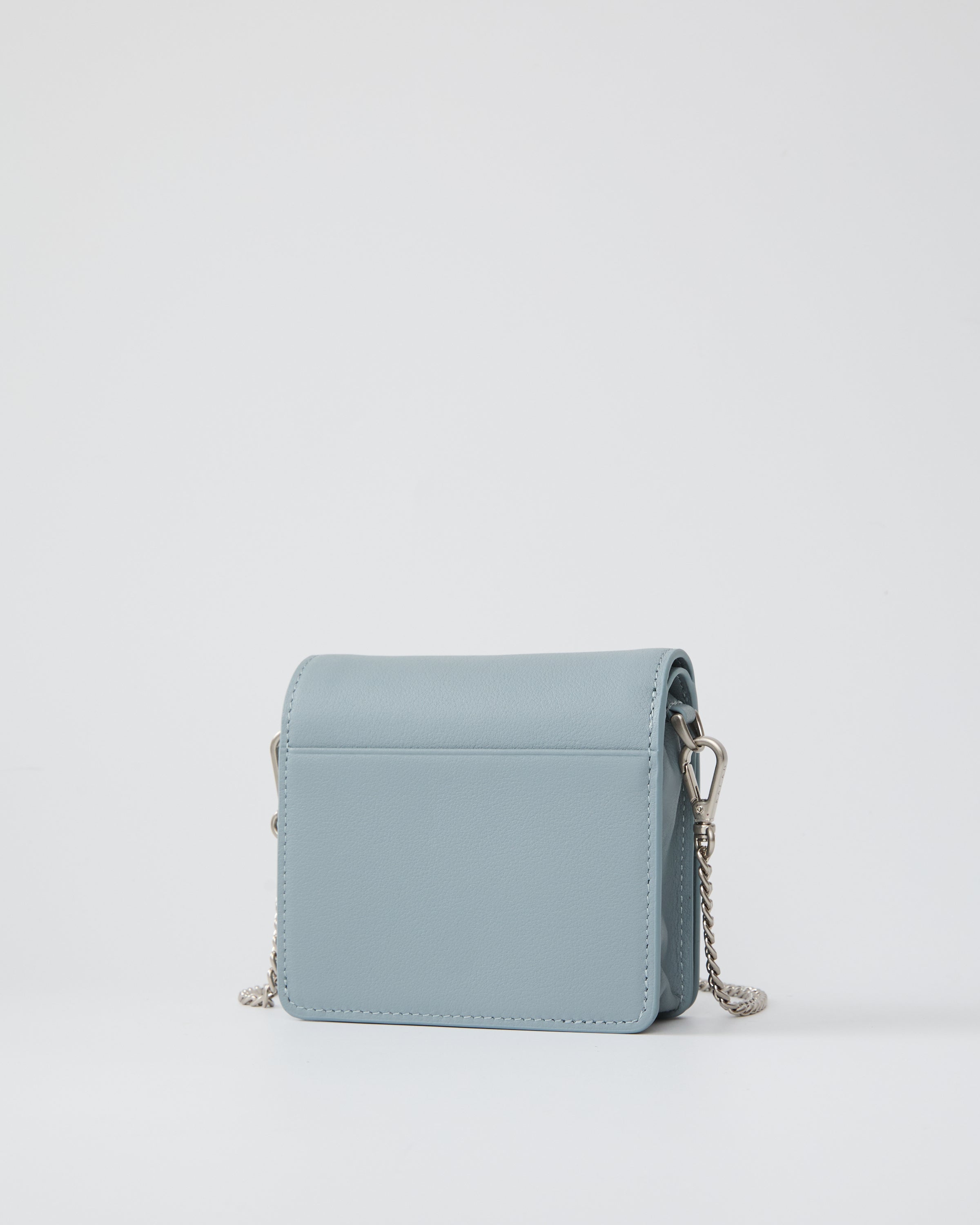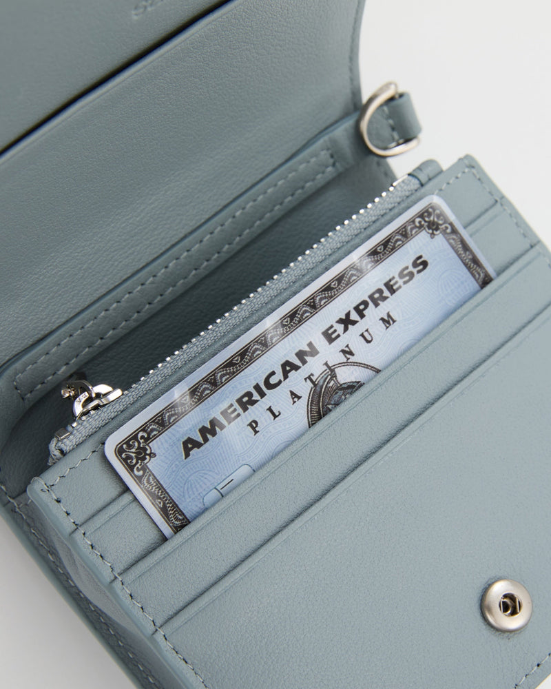 •Slip pocket and bill compartment on the back and right side respectively •Interior contains 3 credit card holders and coin zipper pocket •Active metal chain can be removed and used as an independent wallet •Sophisticated structure with small brand logo, showing low-key elegance