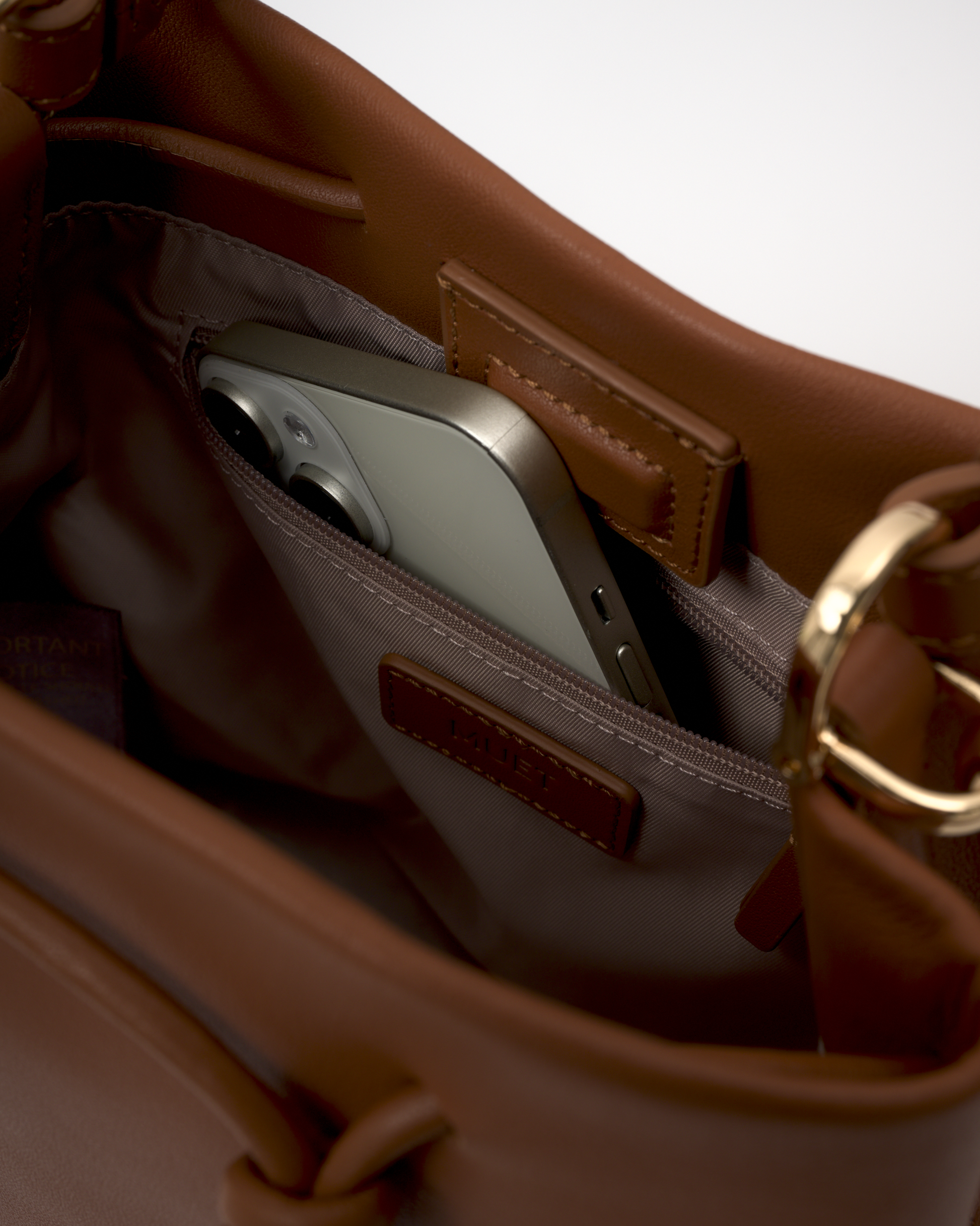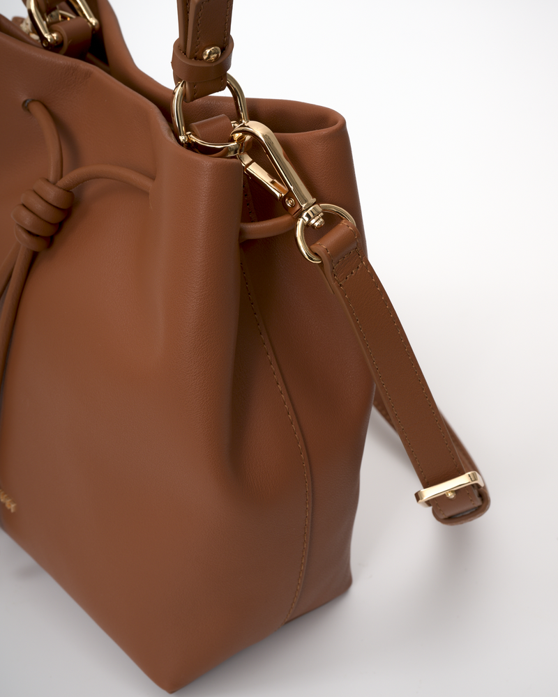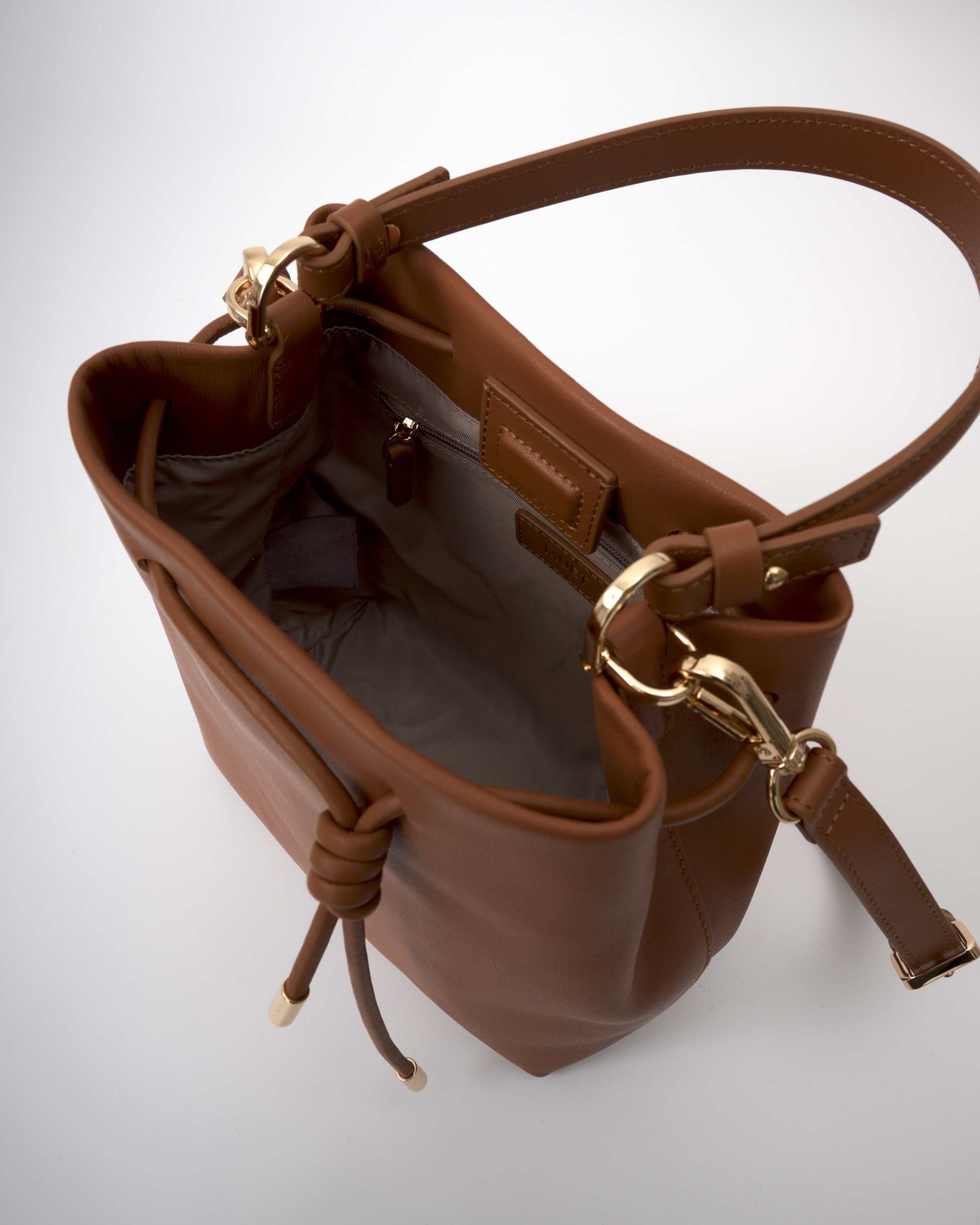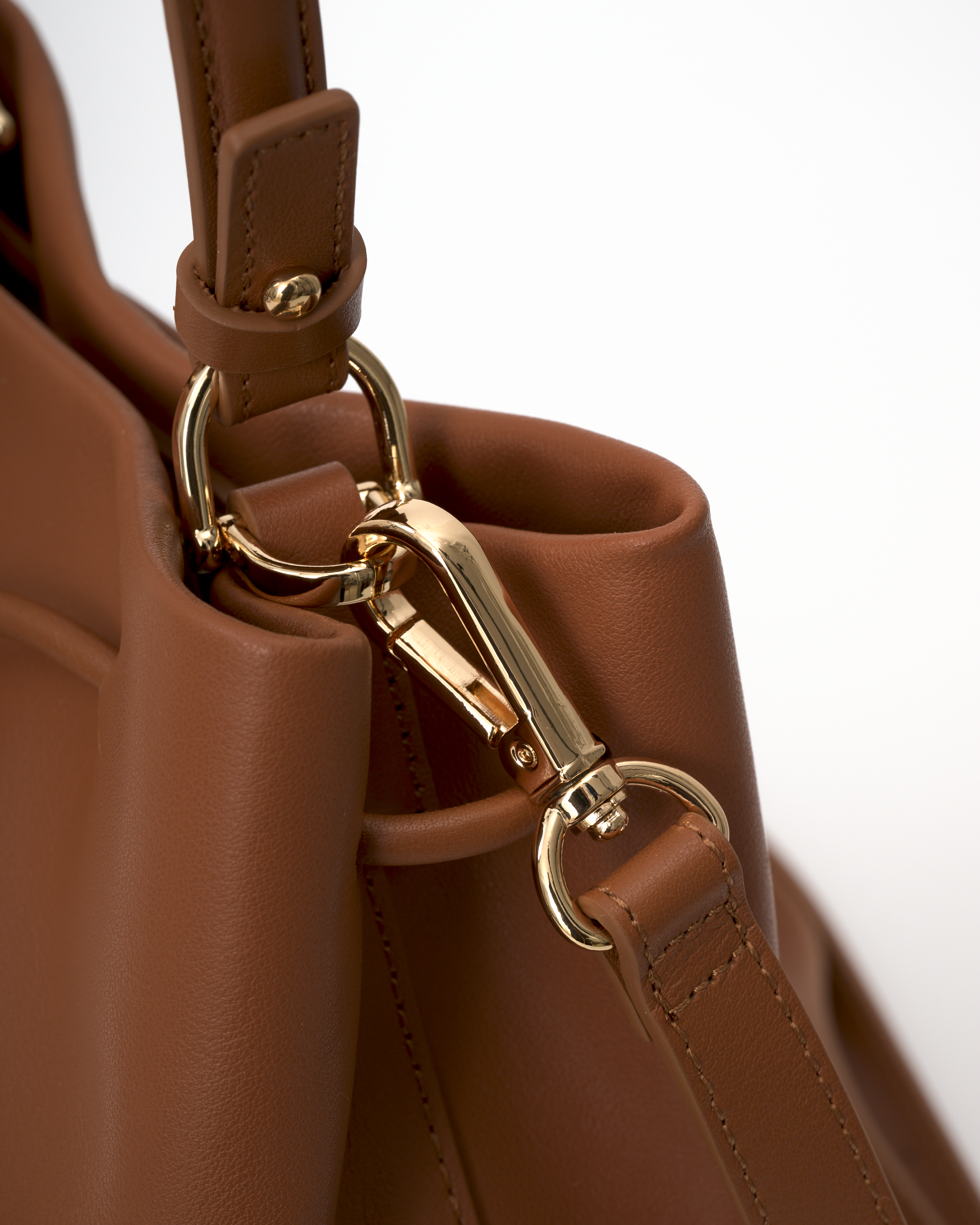 • Comes with a long leather shoulder strap with a chain detail, which can also be removed for later use.
