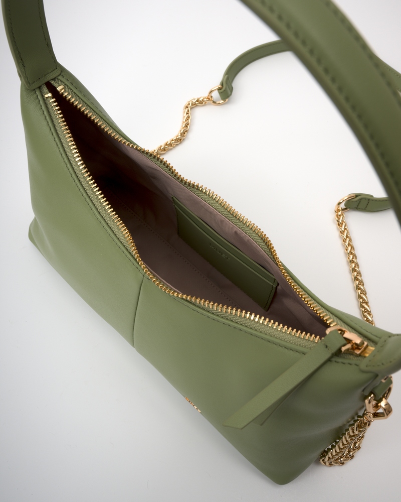 • The adjustable leather shoulder strap is also removable and can be used as a spare.