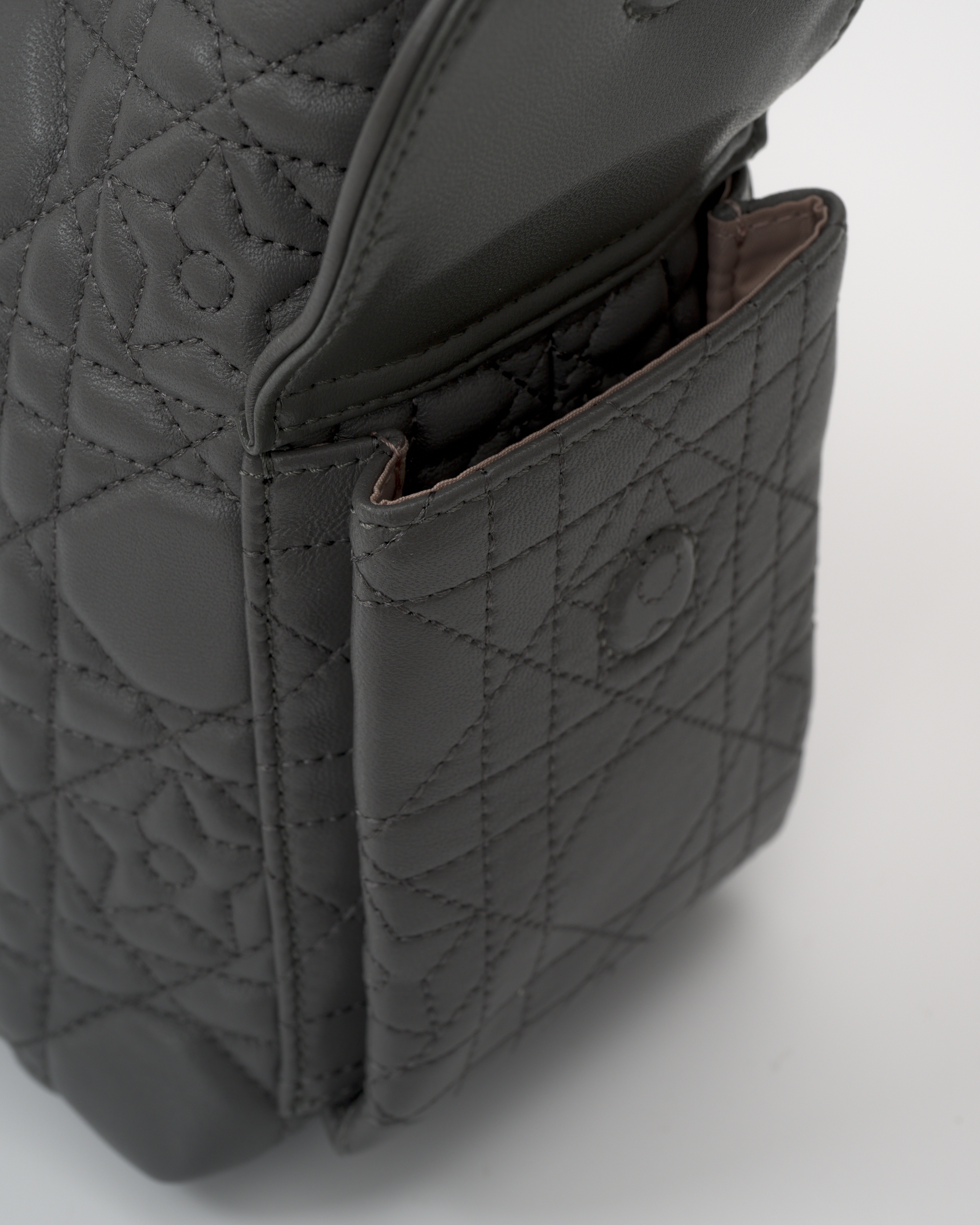 • The bag contains an inner slip pocket and a zippered pocket.