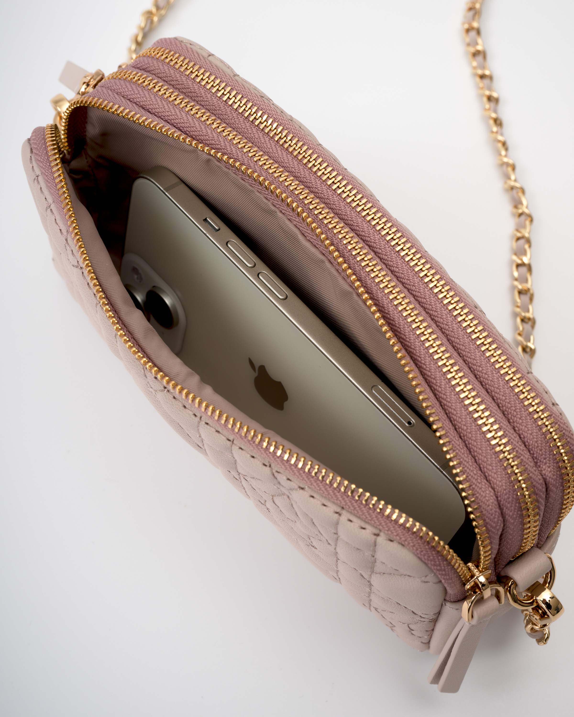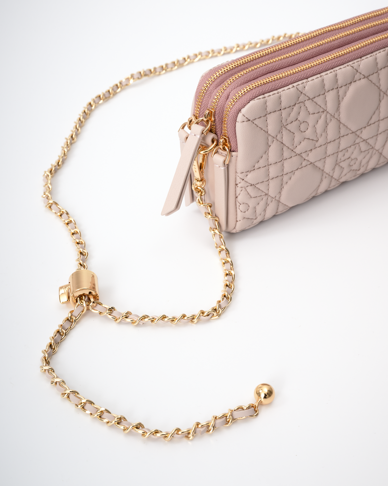 Comes with a chain shoulder strap, which can also be removed and reused.