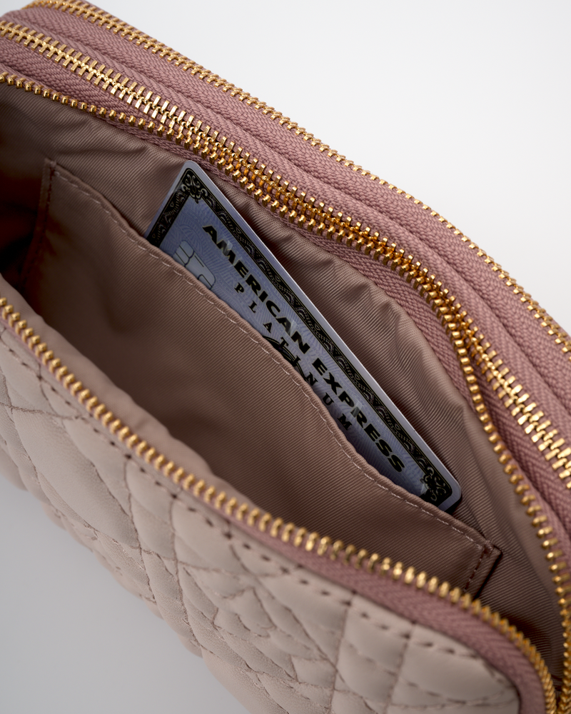 • The main compartment has three zipper layers: front, middle, and back.