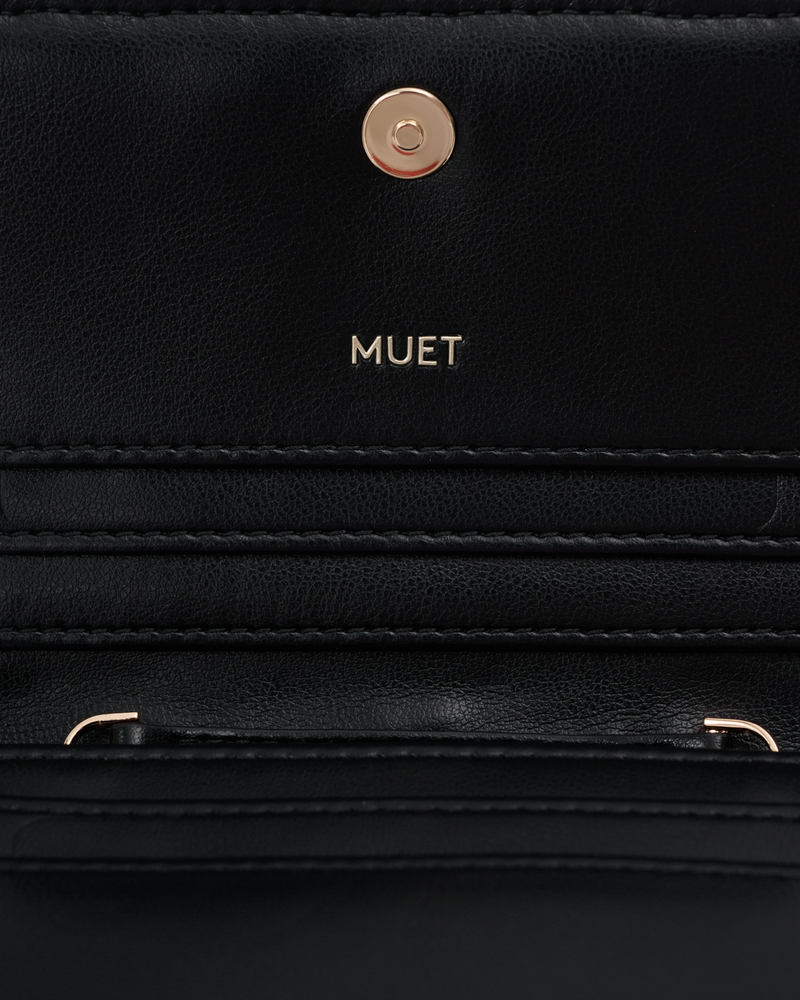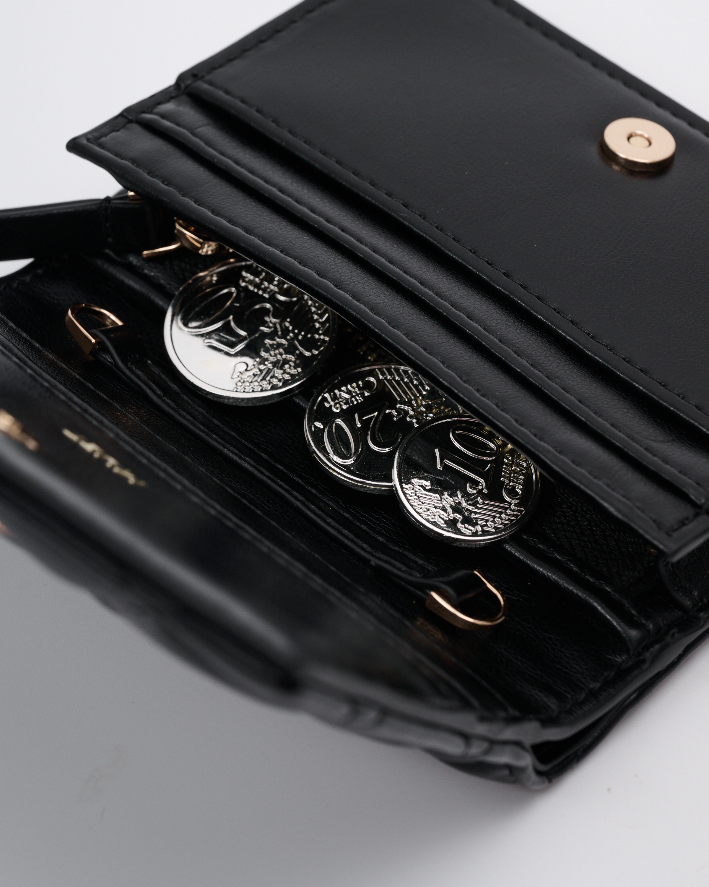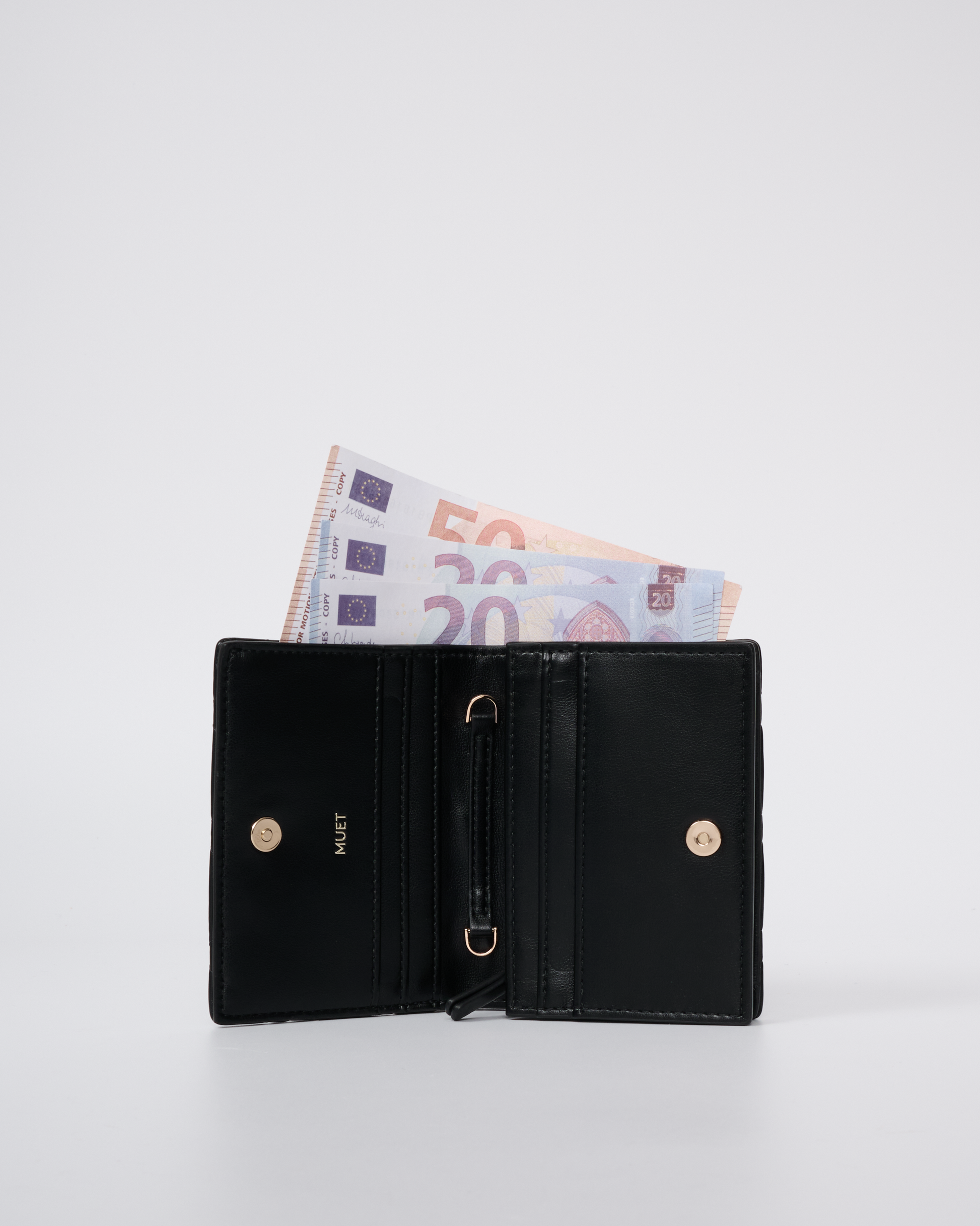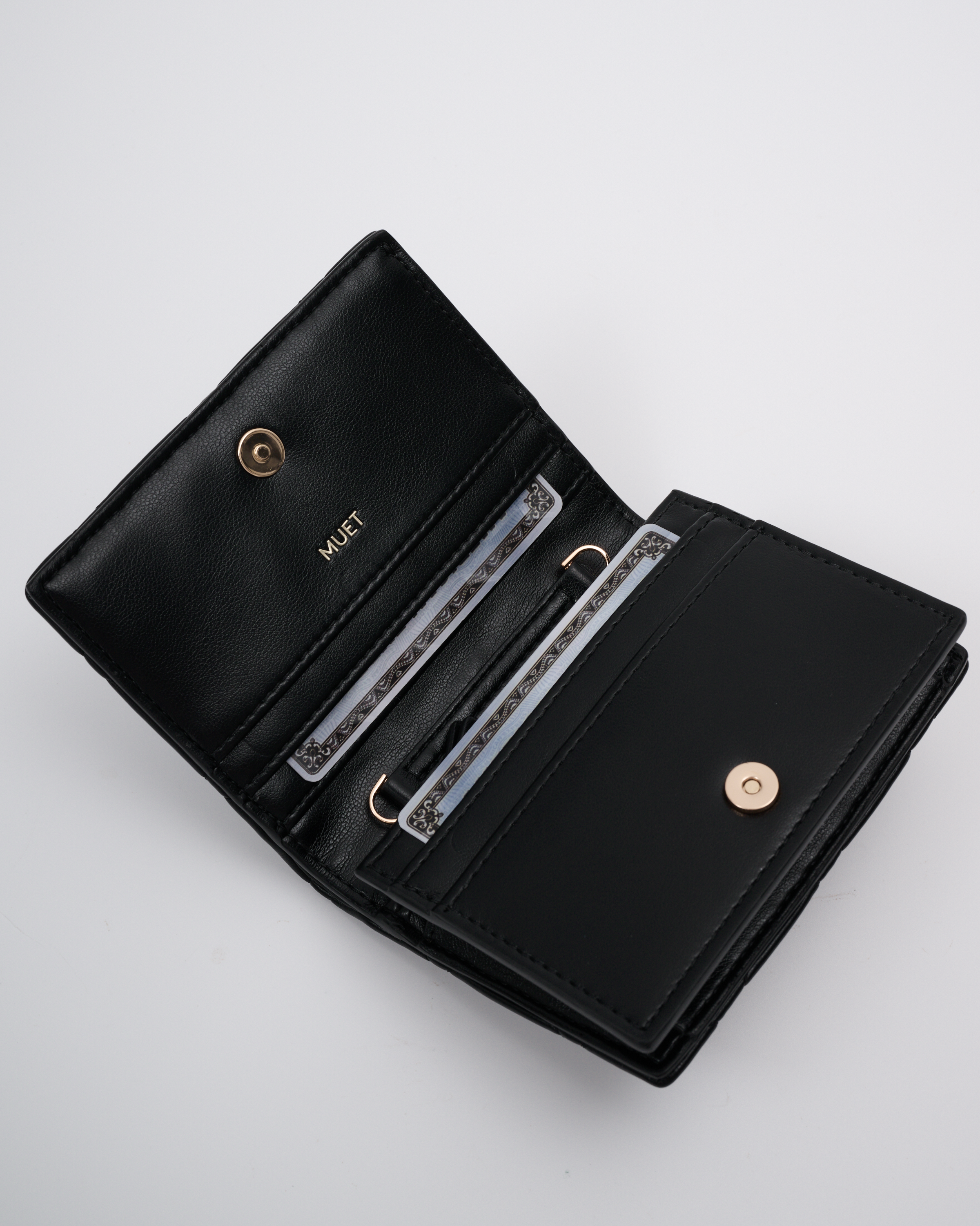 • Main wallet structure: Features a banknote compartment with five card slots for easy access to various cards.