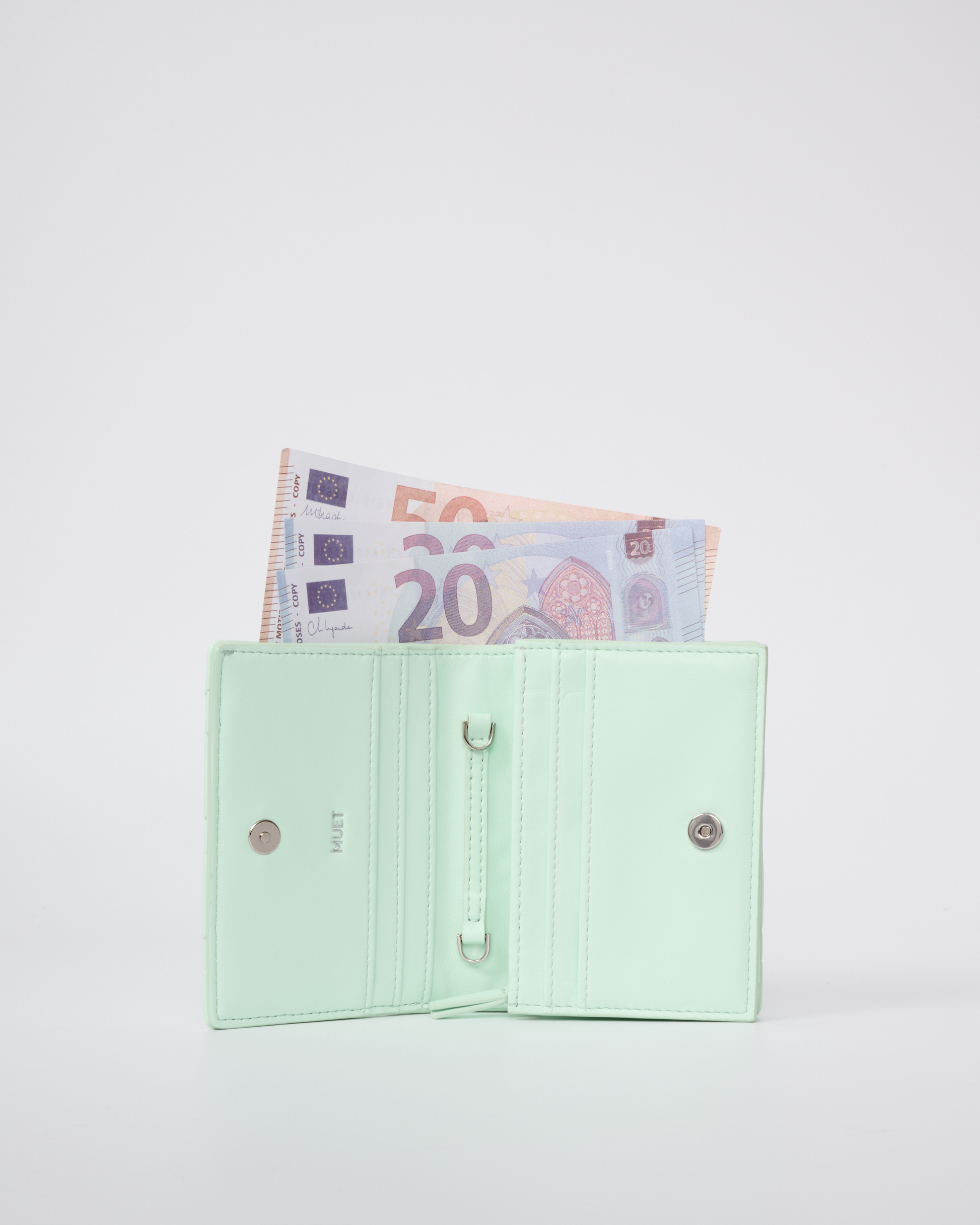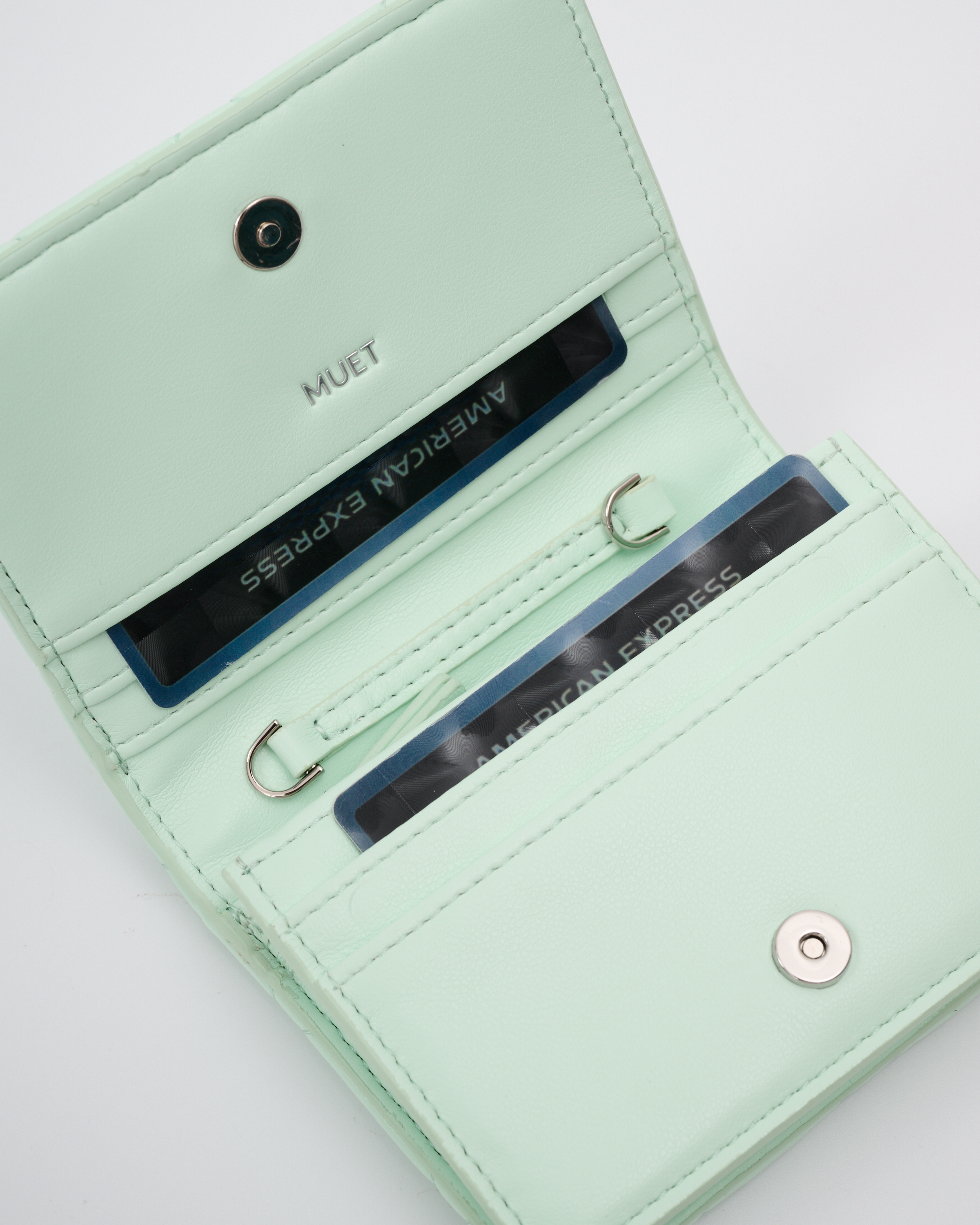 • Main wallet structure: Features a banknote compartment with five card slots for easy access to various cards.