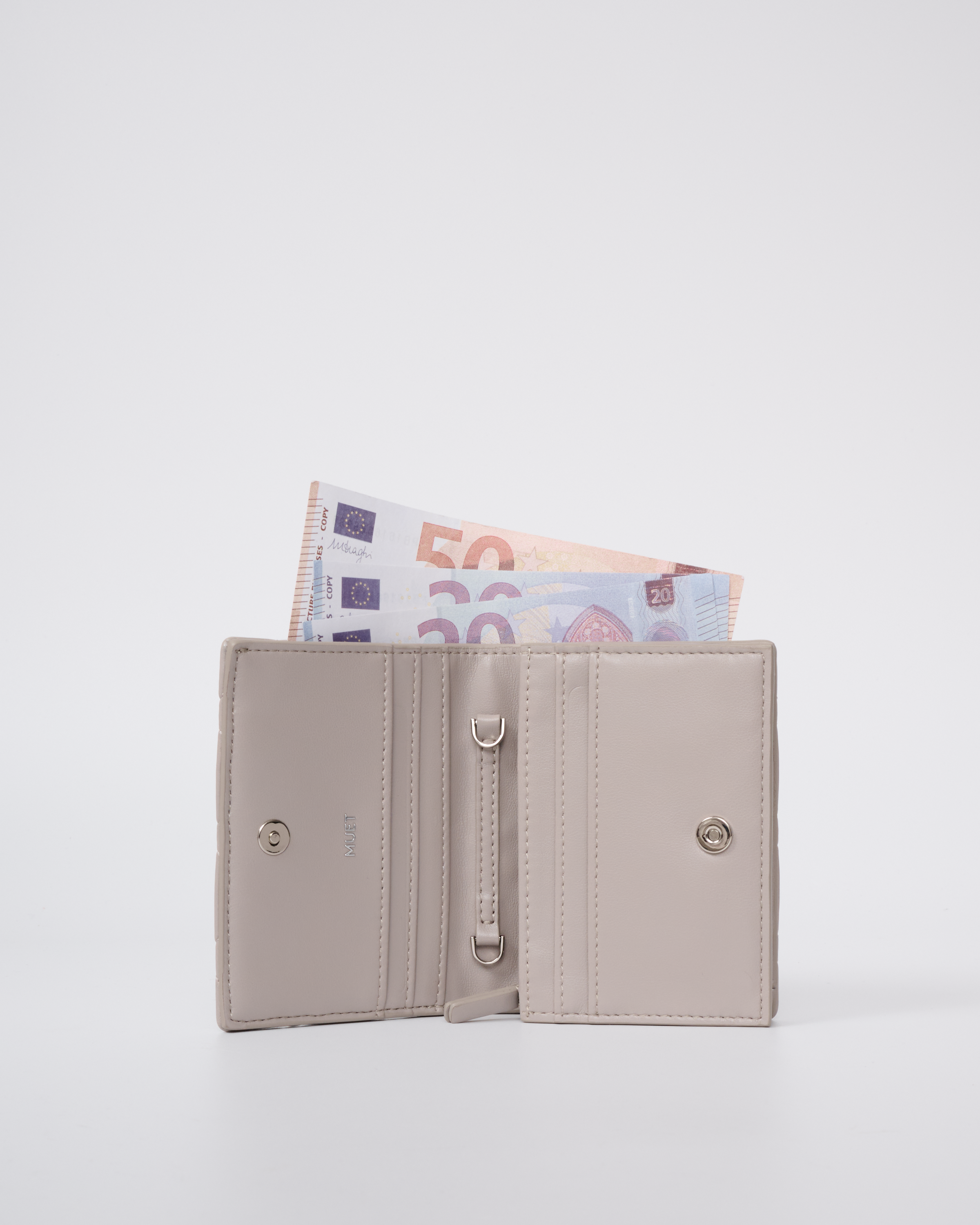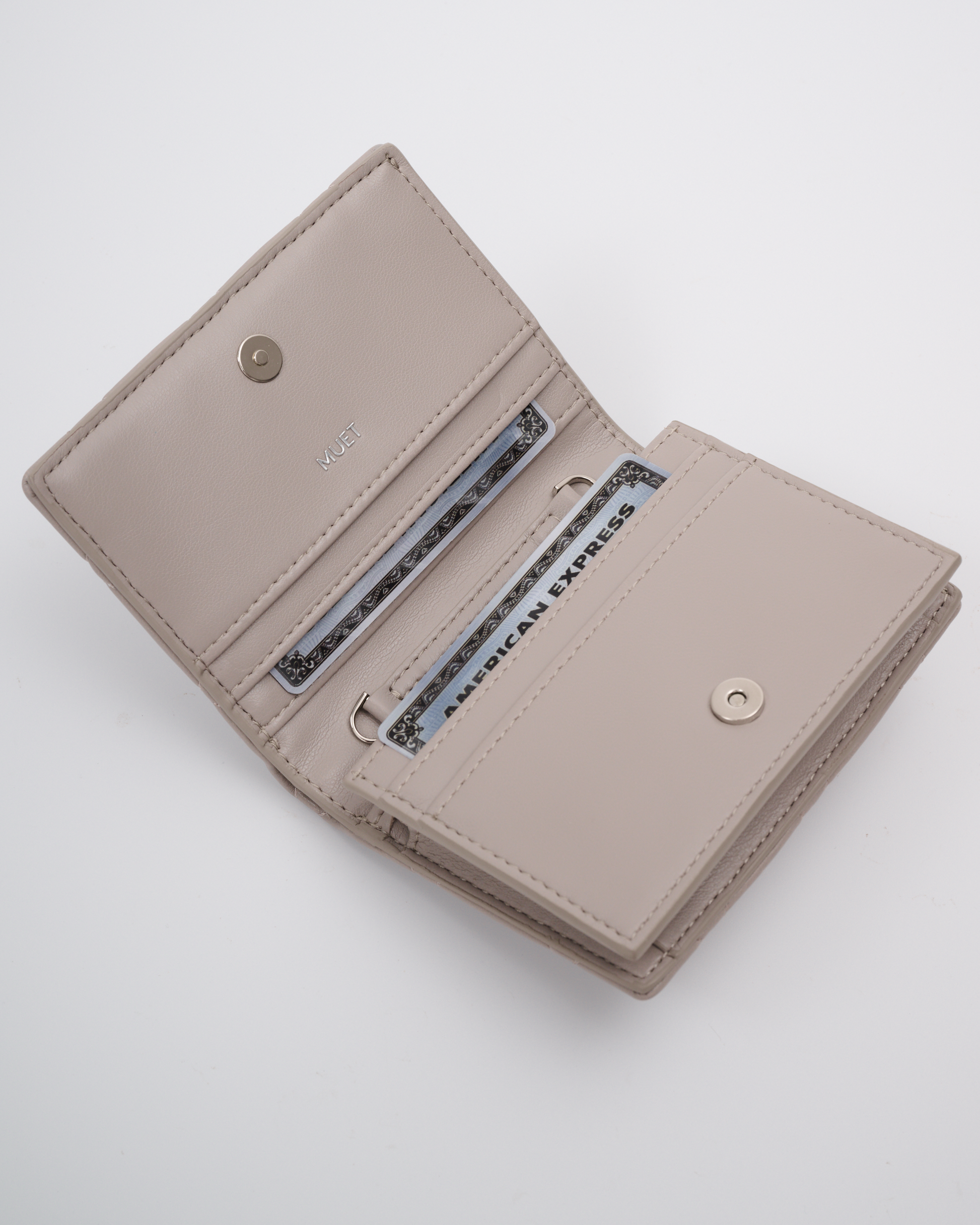 Main wallet structure: Features a banknote compartment with five card slots for easy access to various cards.