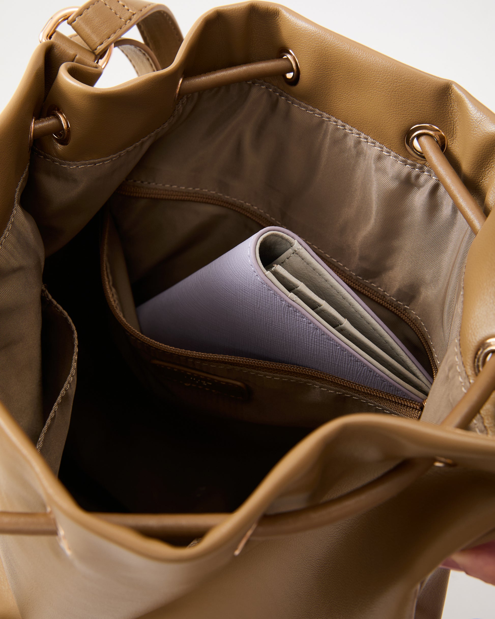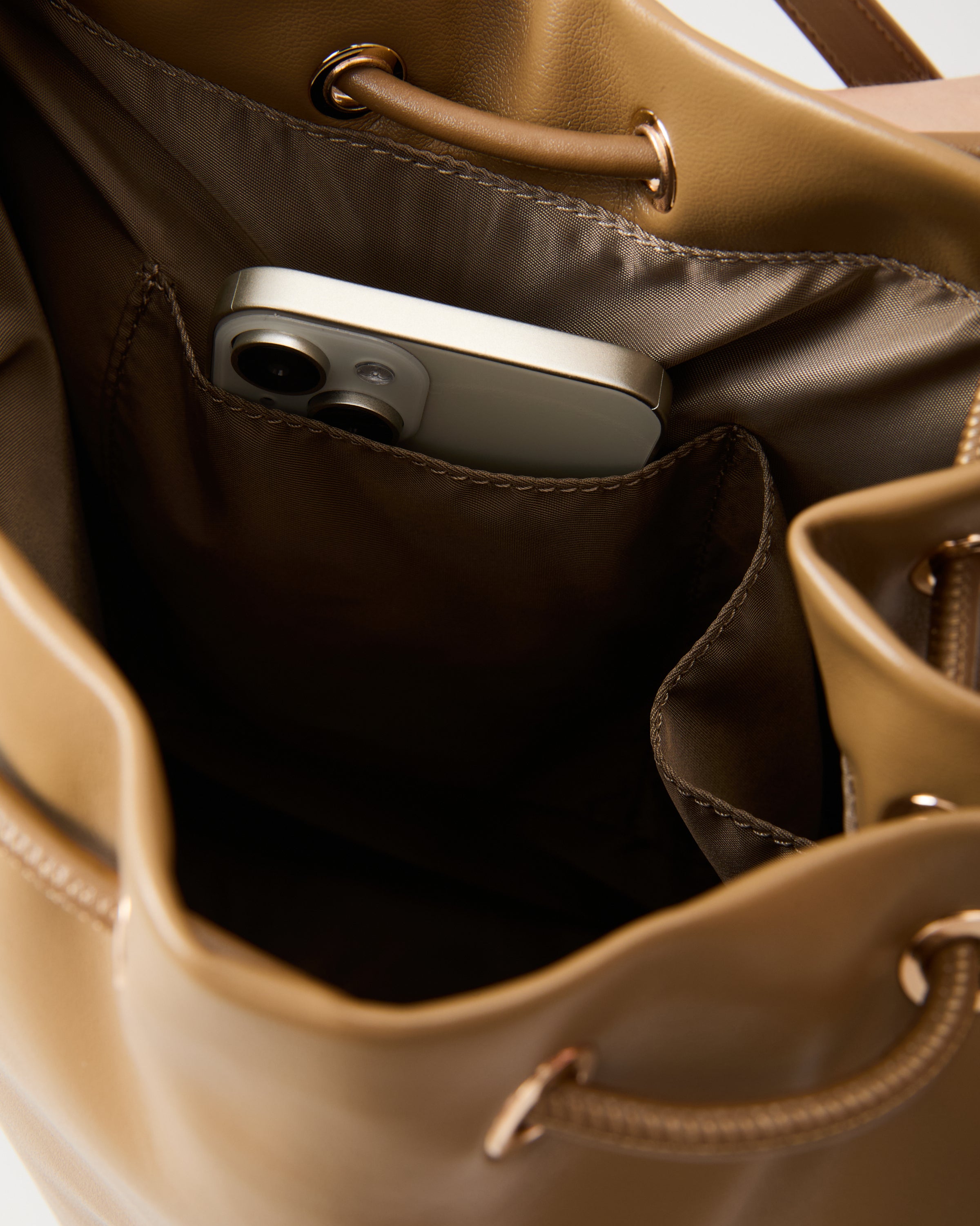 •Adjustable drawstring design, the bag shape and capacity can be freely changed through the top drawstring •Large capacity space, easily store daily necessities or weekend travel equipment, suitable for workplace commuting document storage and daily shopping •The interior is equipped with a zipper pocket and double insert pockets, items are classified in an orderly manner.