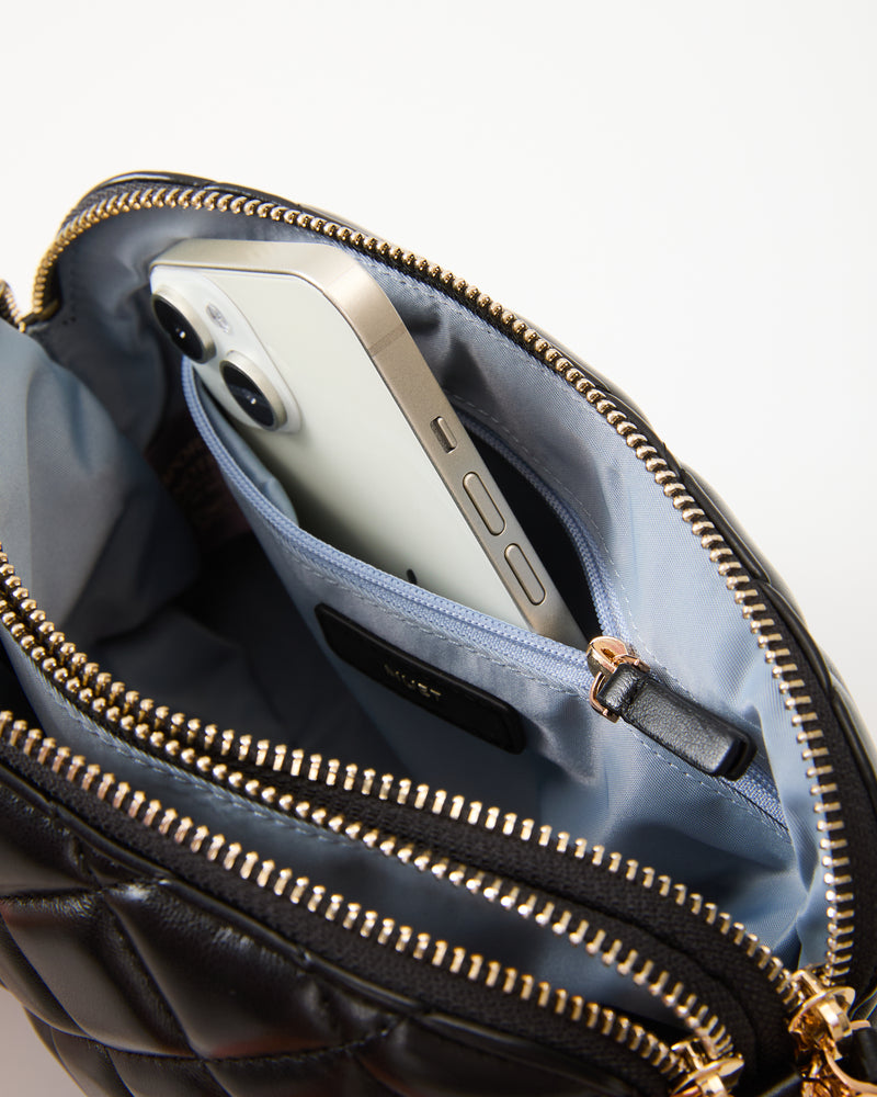 •The minimalist design without logo is suitable for modern women who pursue quality and practicality. •It adopts classic diamond pattern design and is made of ultra-soft PU leather with delicate touch. •The main compartment is equipped with double zipper closure, and the interior is equipped with front and back inner compartments, zipper pockets and slip pockets for orderly storage. •The 125cm adjustable chain shoulder strap combines hardware and leather materials, embellished with small golden balls to show exquisite details.