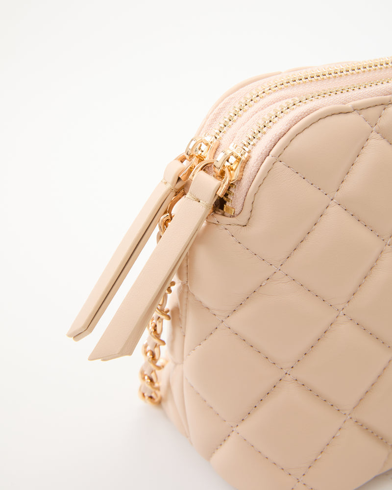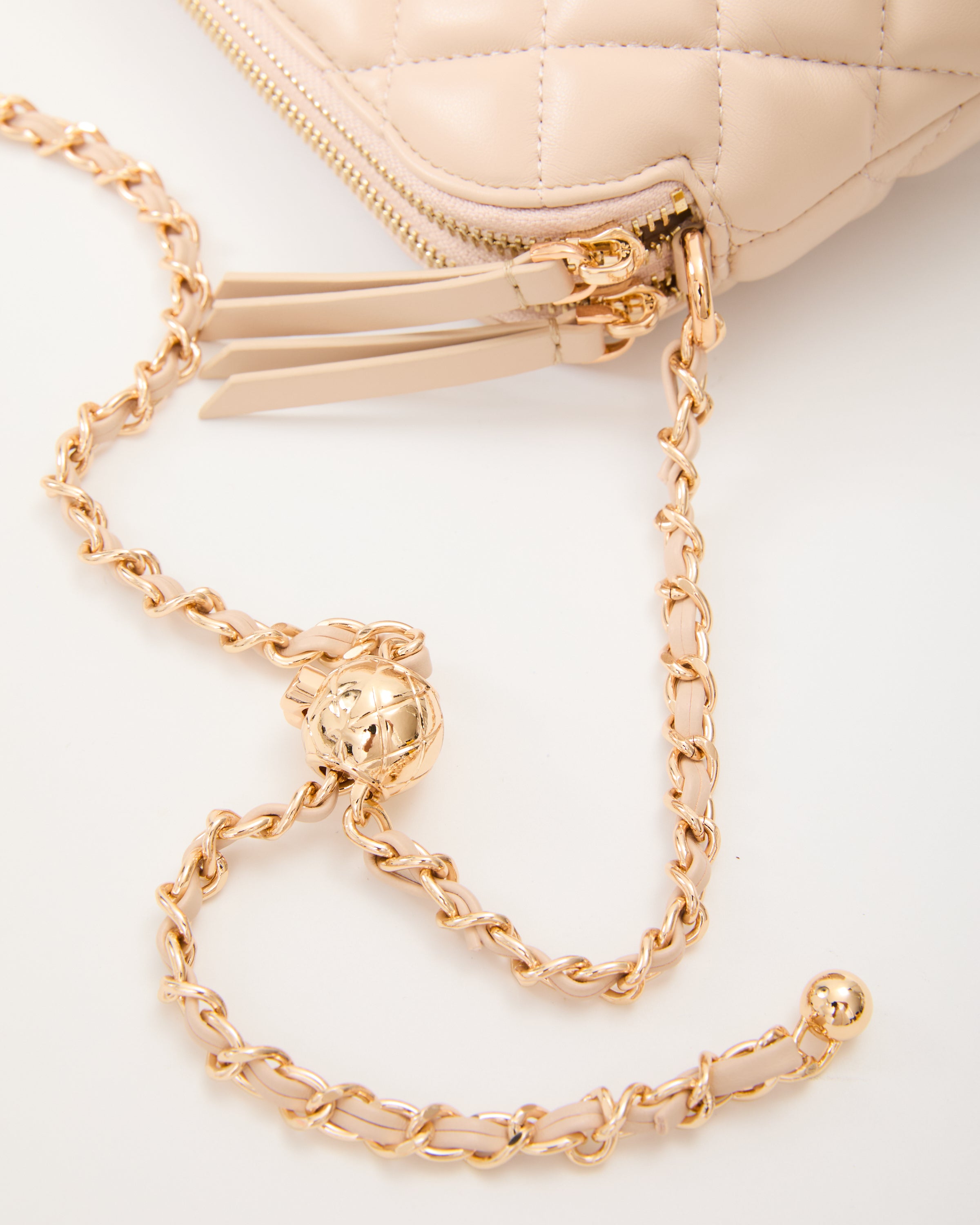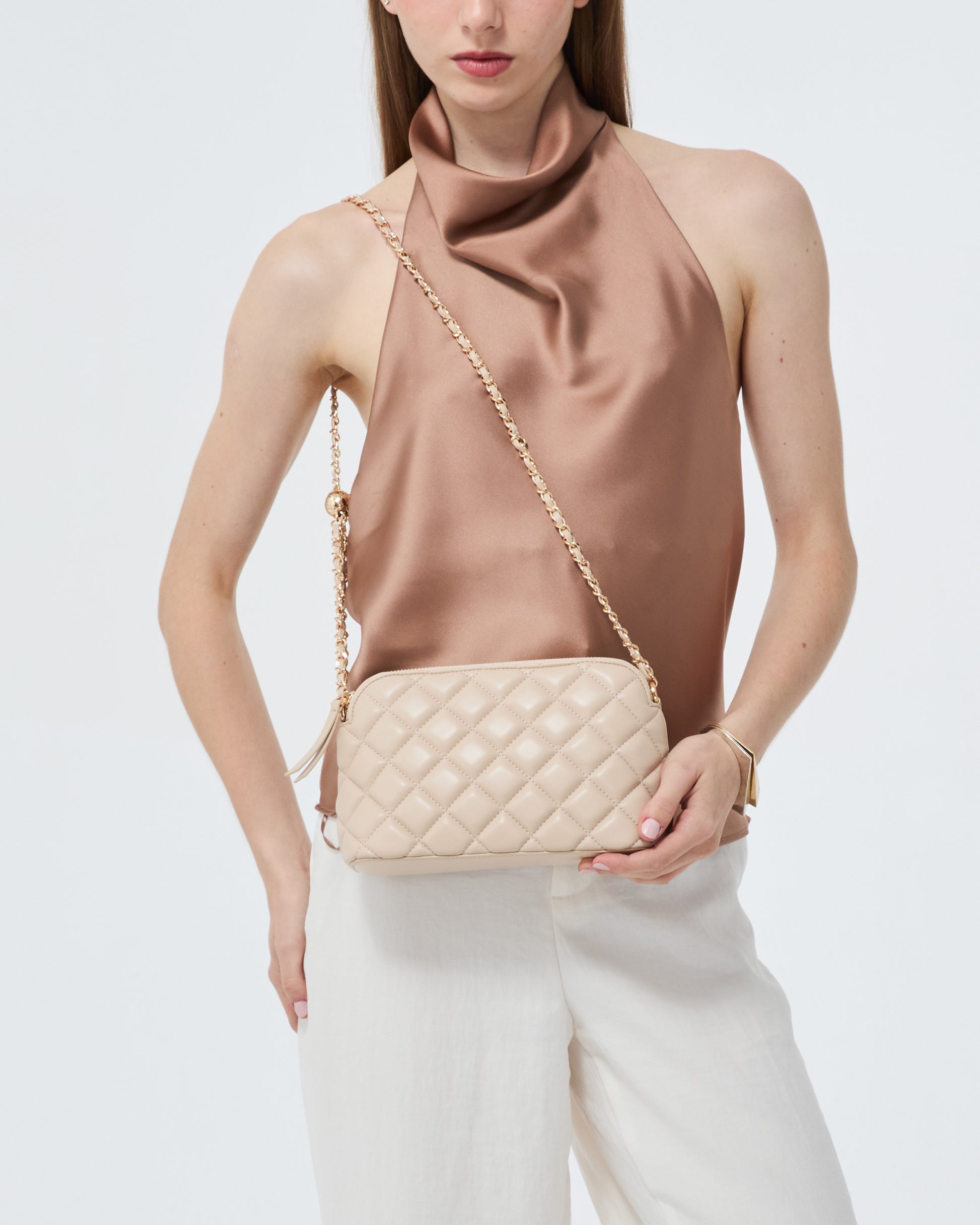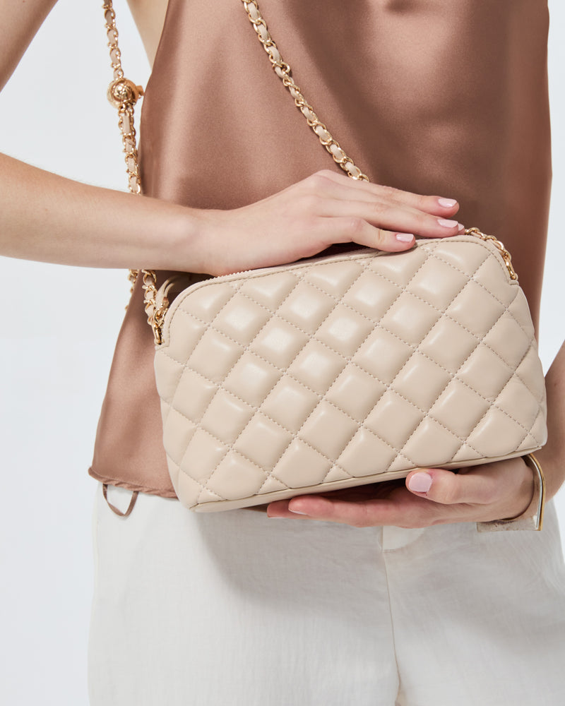 •The minimalist design without logo is suitable for modern women who pursue quality and practicality. •It adopts classic diamond pattern design and is made of ultra-soft PU leather with delicate touch. •The main compartment is equipped with double zipper closure, and the interior is equipped with front and back inner compartments, zipper pockets and slip pockets for orderly storage. •The 125cm adjustable chain shoulder strap combines hardware and leather materials, embellished with small golden balls to show exquisite details.