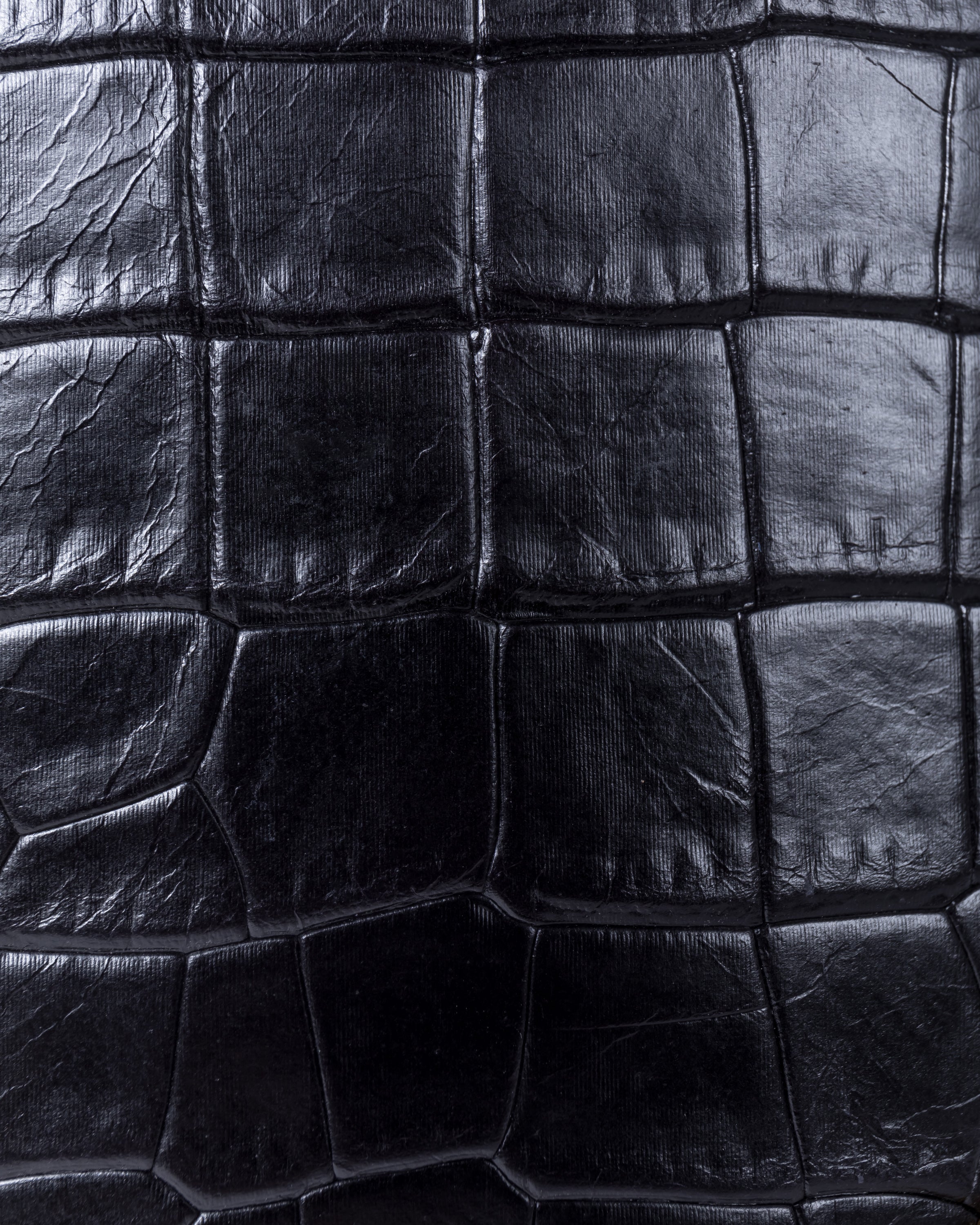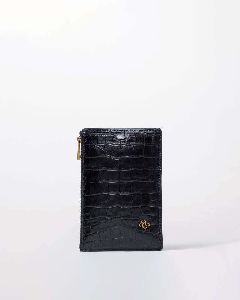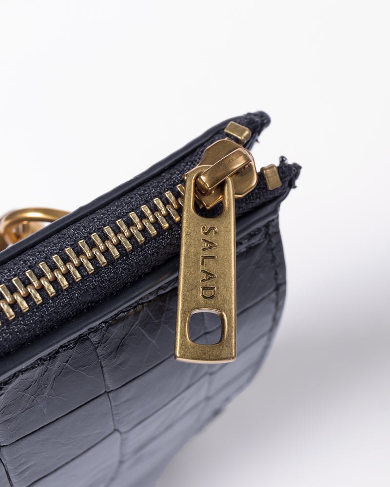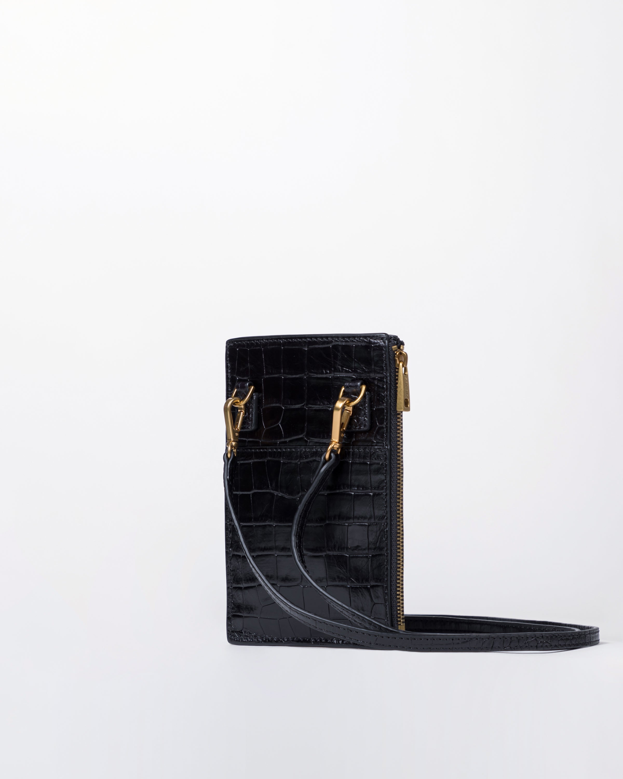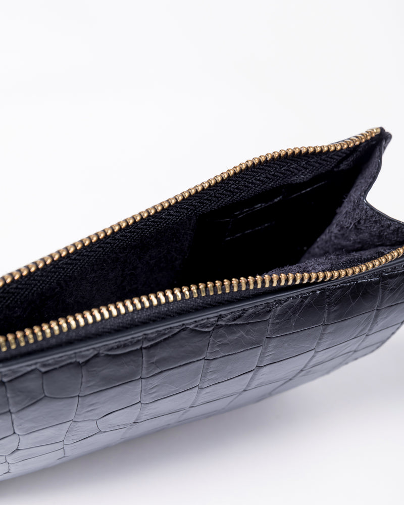 • Front slip pocket for mobile phone • Side zipper pocket for small items or cards • Back slip compartment • Detachable and adjustable long shoulder strap • Italian embossed crocodile leather, soft to the touch and lightweight