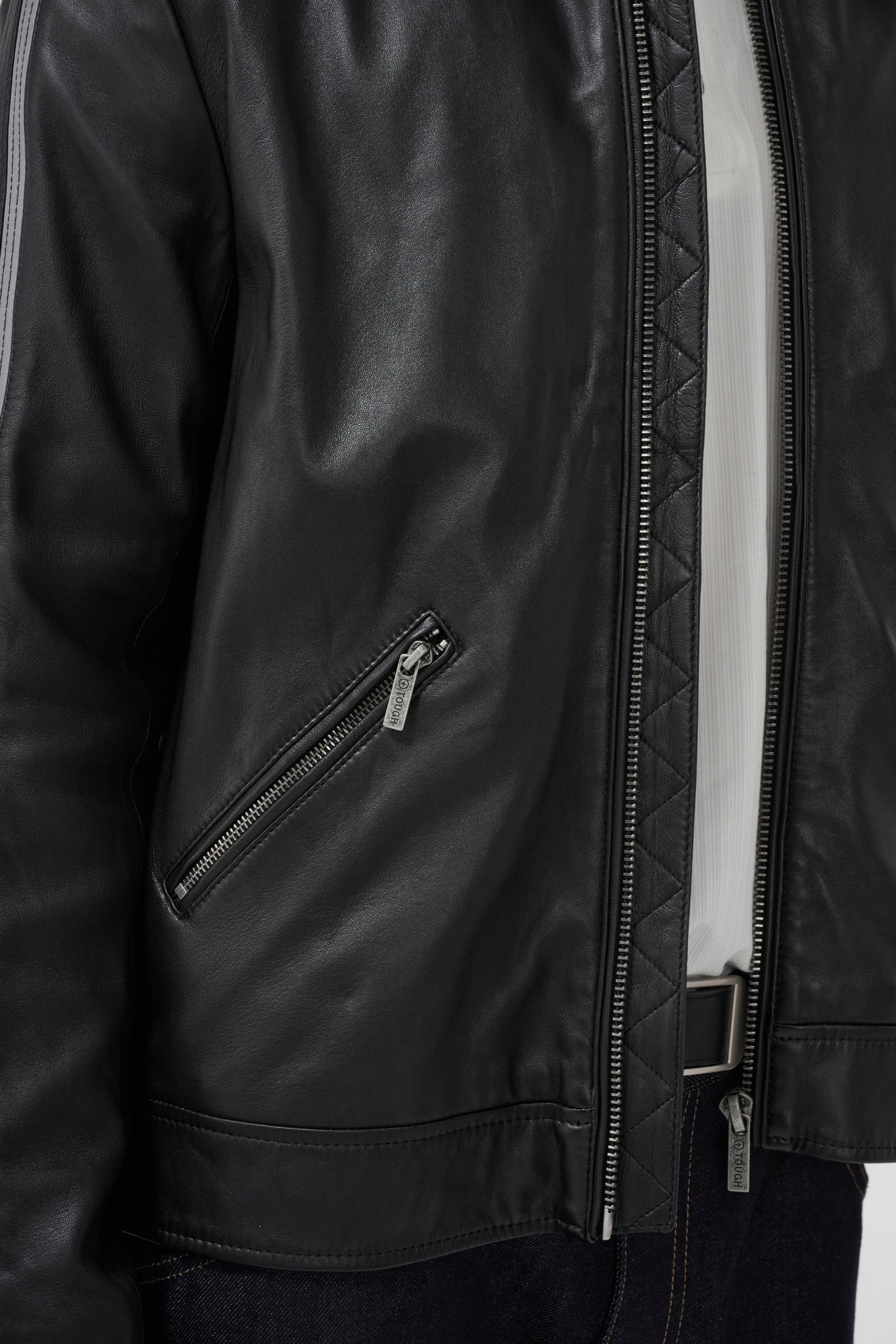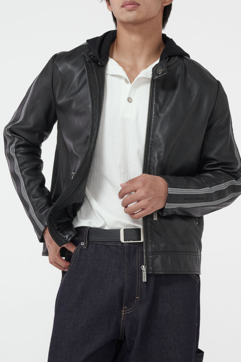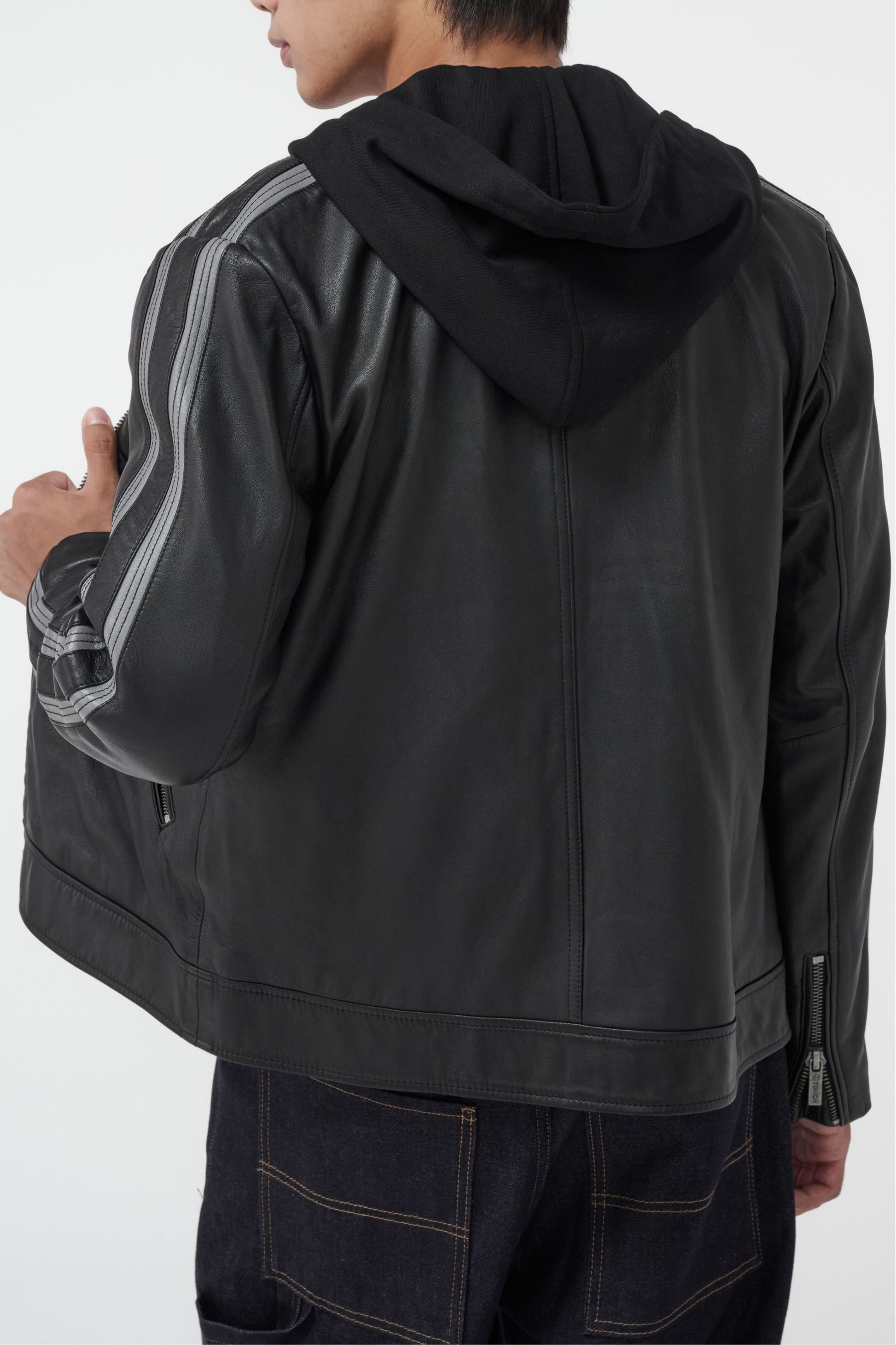 TOUGH JEANSMITH 黑色可拆卸連帽皮革夾克