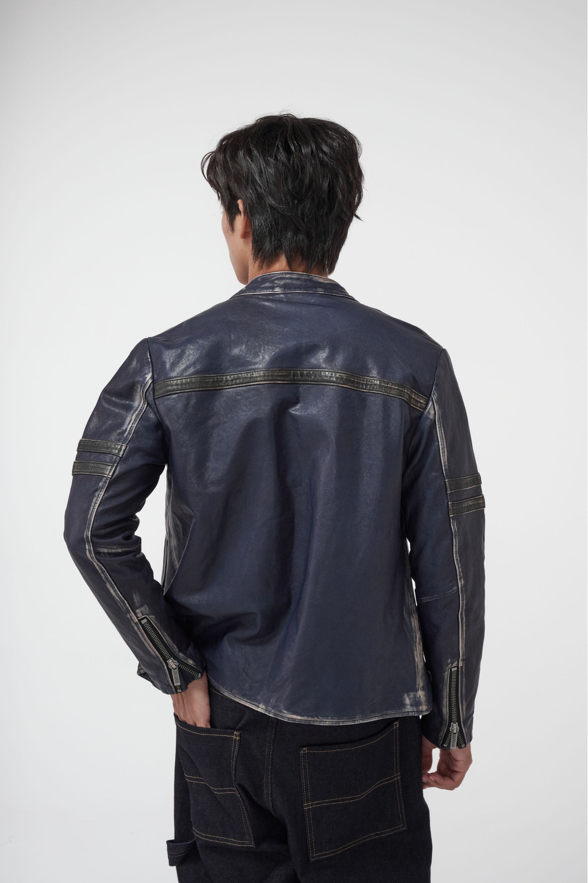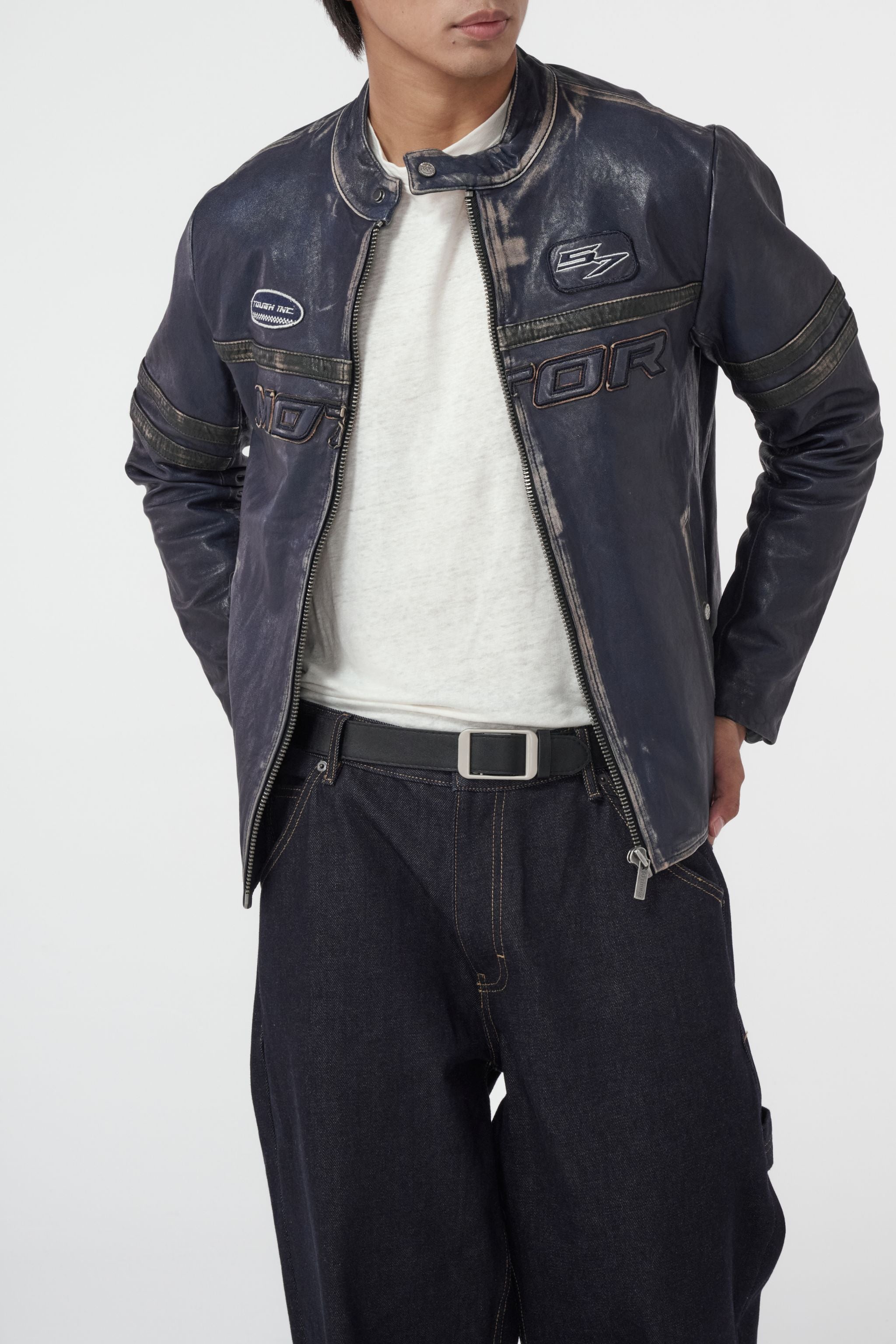 TOUGH JEANSMITH 洗水藍色賽車皮革夾克